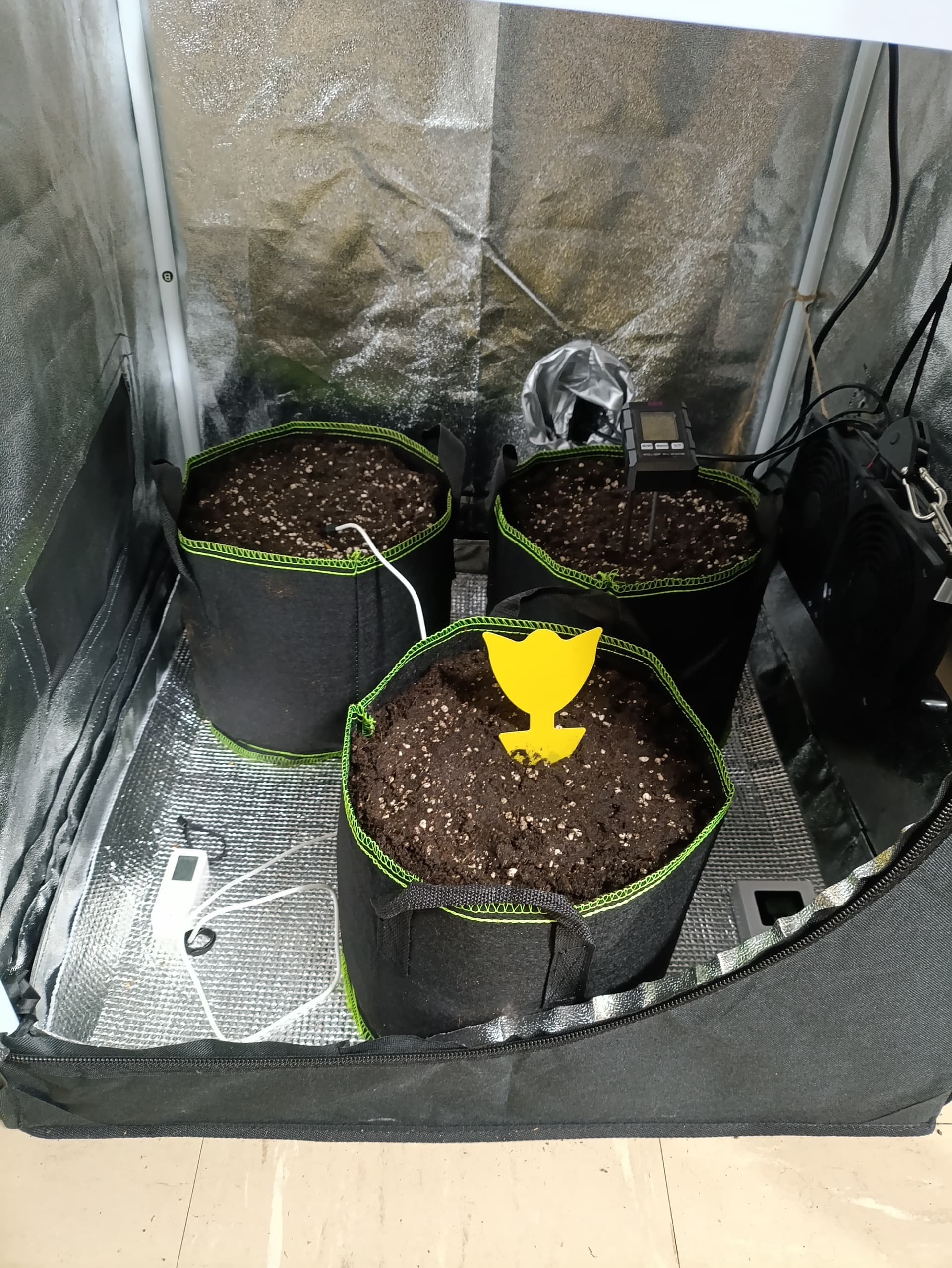 3 RQS Epsilon F1 ins 11l Stoffsäcke 1,5cm in die Erde gesteckt.