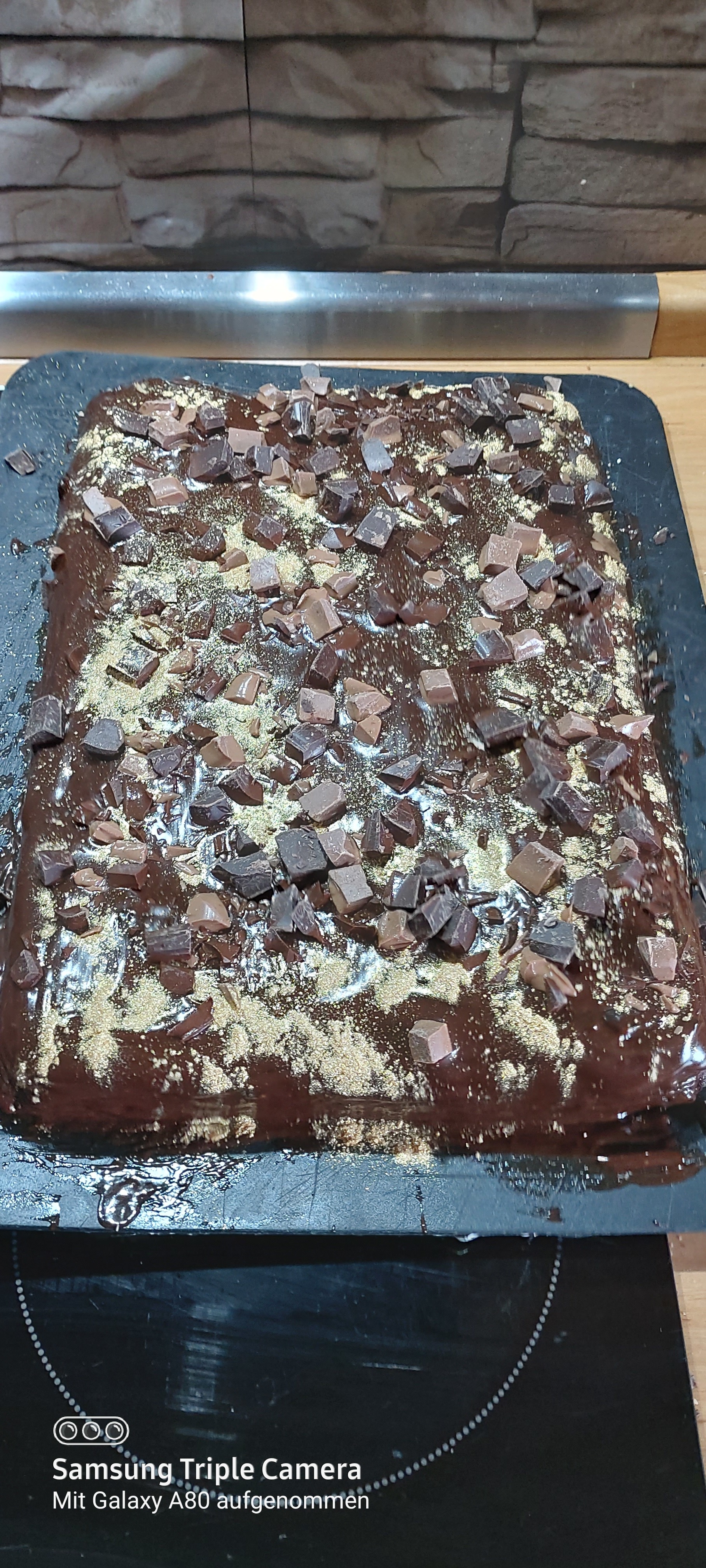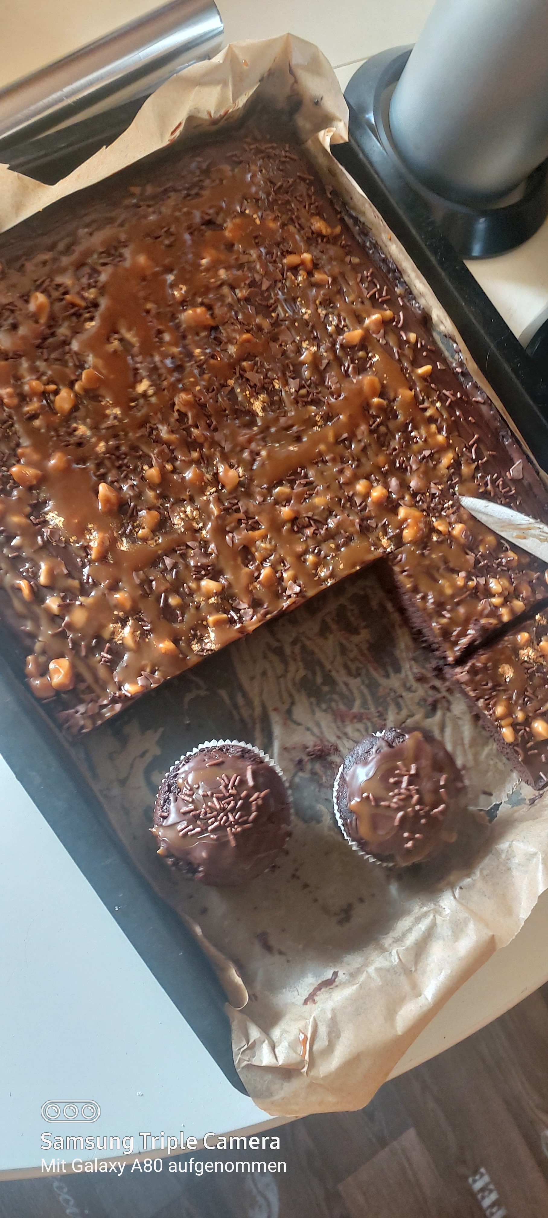 Die Glasur gebt ihr dann auf die abgekühlten Brownies und lasst sie ca. 1 ½ Std. fest werden. Danach ist sie schnittfest und die Brownies können vernascht werden , man kann sie natürlich auch einfrieren für später .
