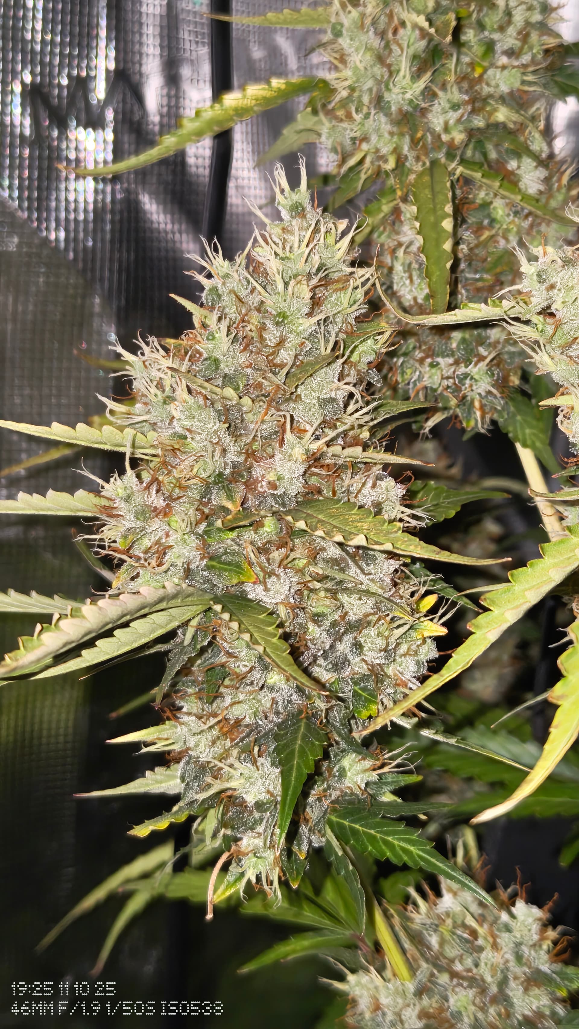 In einer Woche ist Erntetag! Zumindest für eine der Ladies. Wird aber auch Zeit denn die dünnen Äste biegen sich schon nach unten wegen den schweren Blüten. Manche Äste musste ich schon stützen weil sie kurz vorm Abknicken waren