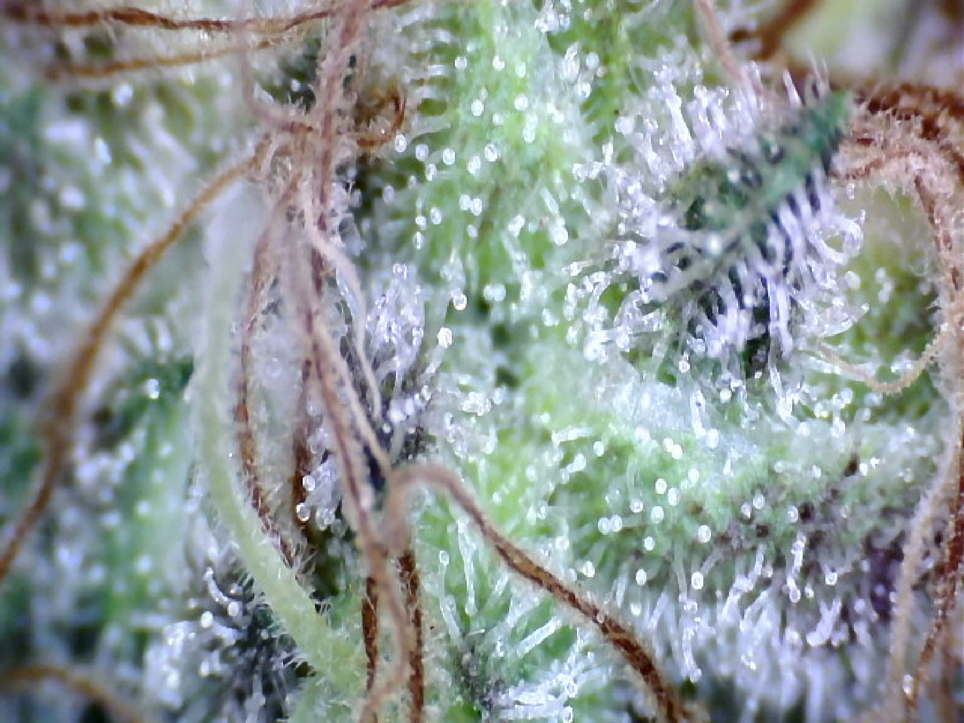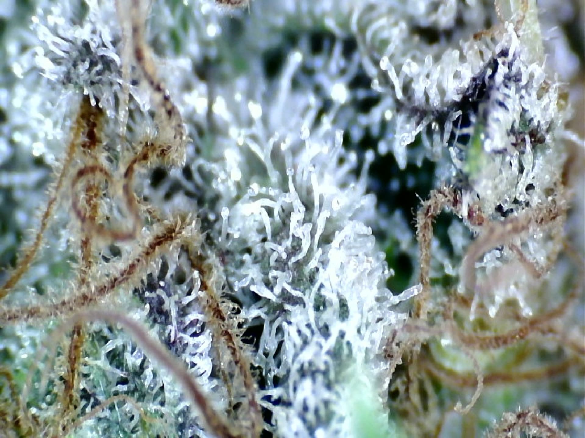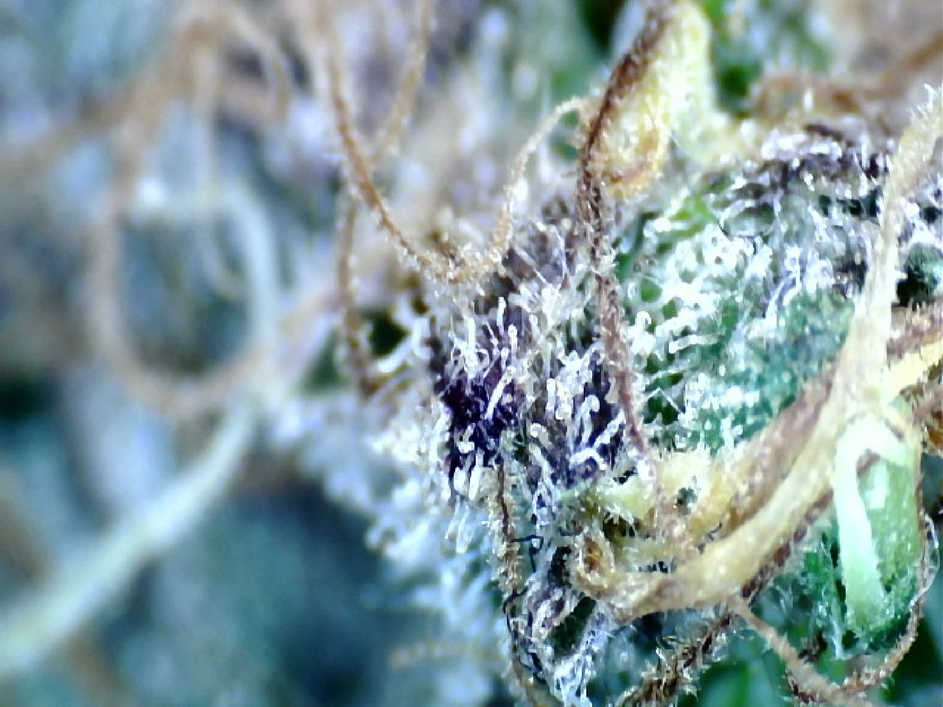Das UV zeigt seine wirkung trichome sprießen und die fäden bzw. die buds bekommen eine sanfte Bräunung. Die blätter oben werden langsam knusprig, ich denke wenn sie dann brechen, werde ich sie rausschibbeln und mal drauf achten ob die buds austrocknen von wegen schimmelgefahr… sollte dem so sein, habe ich mir überlegt den haupttrieb zu ernten und den rest noch stehen zu lassen.