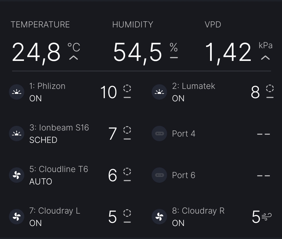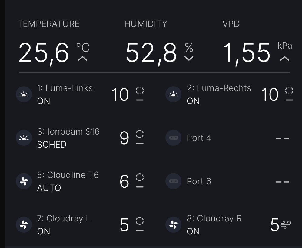 Solange läuft die Phlizon mit am AC Kontroller, halt nur mit 50% Leistung, d.h. 800ppfd rum an den Spitzen grade.