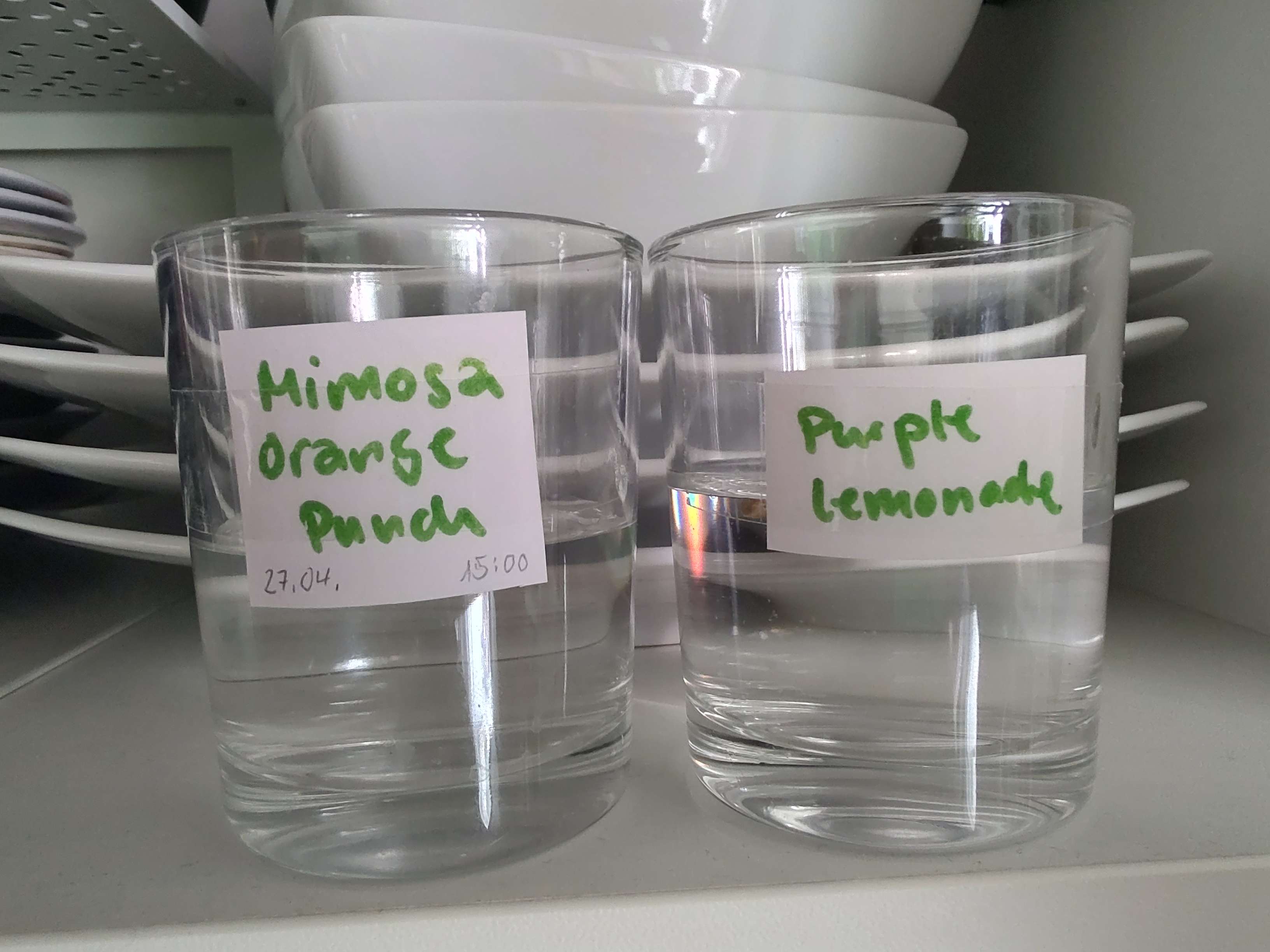 Ertränkung notiert mit genauer Zeit – nach zwei Stunden schwimmen sie noch an der Oberfläche. Mal sehen, wie viele Stunden sie brauchen zum Durchbrechen.