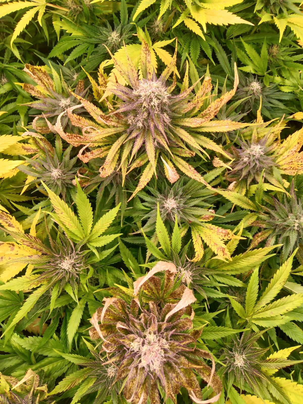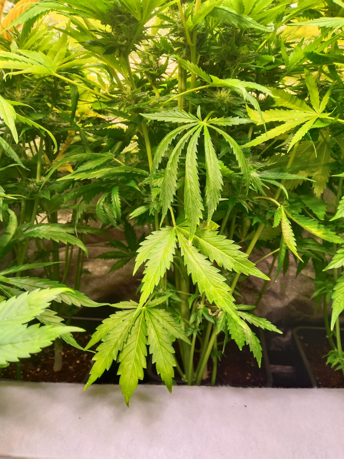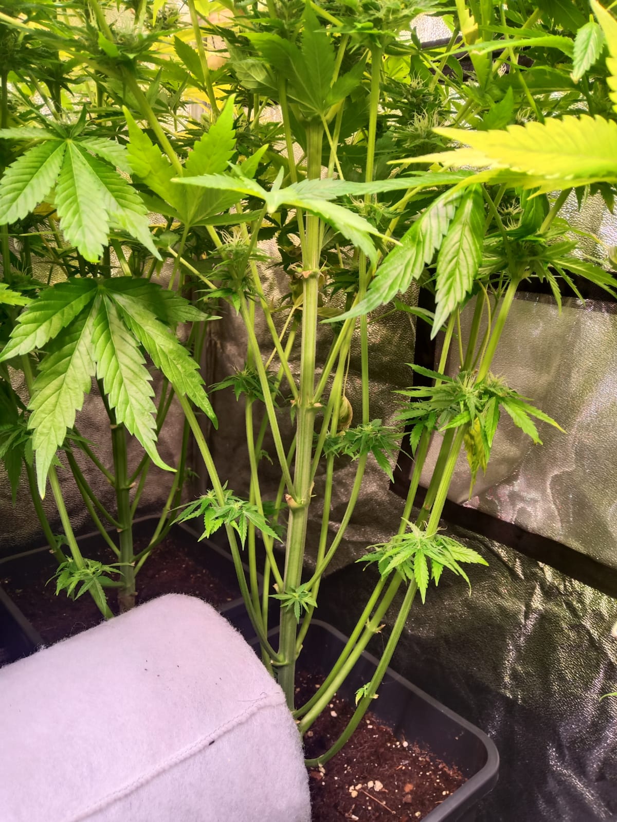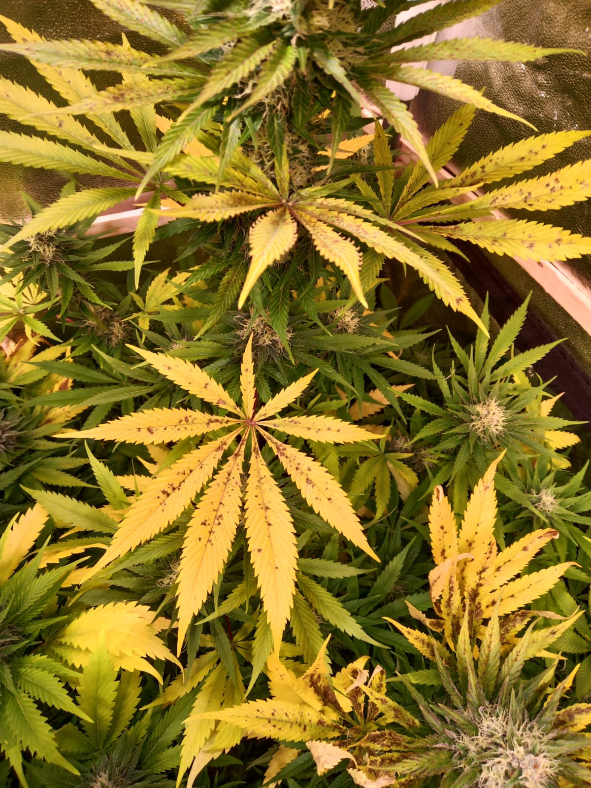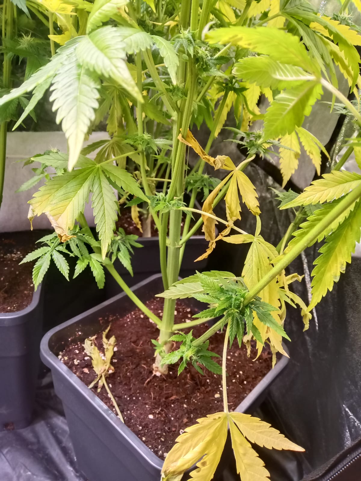Setz dich mal vor die Ladies und schau ob sie untenrum fit sind, das könnte helfen zu entscheiden. Wenn sie unten rum fit sind ist es wahrscheinlich Überdüngung oder Lichtstress. Wenn du unten rum gelbe Blätter hast die leicht abgehen und andere Mangel Symptome von mobilen Nährstoffen… ![]()