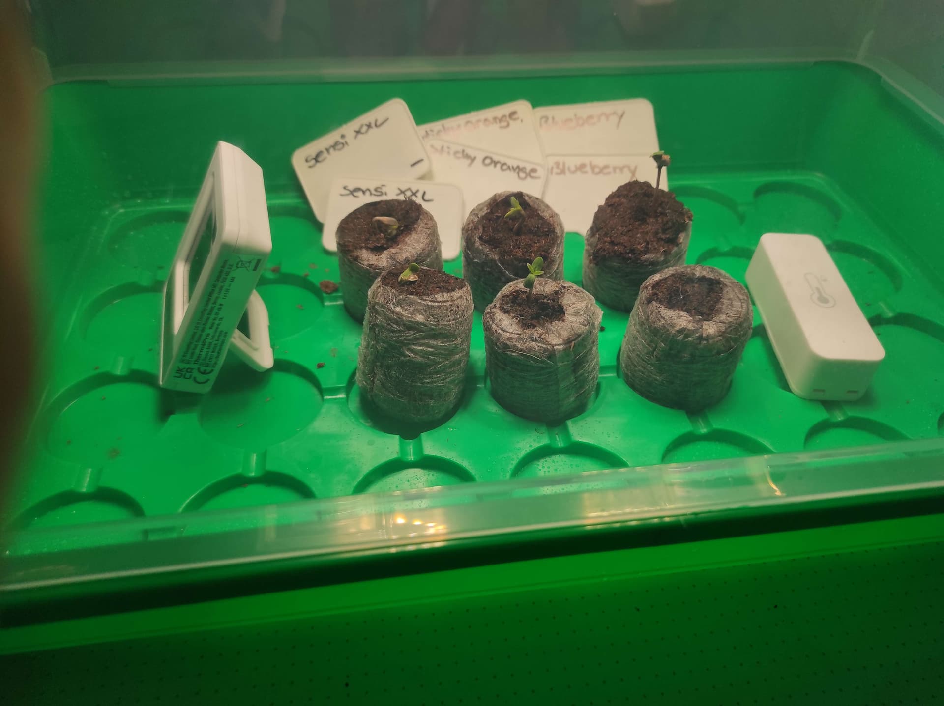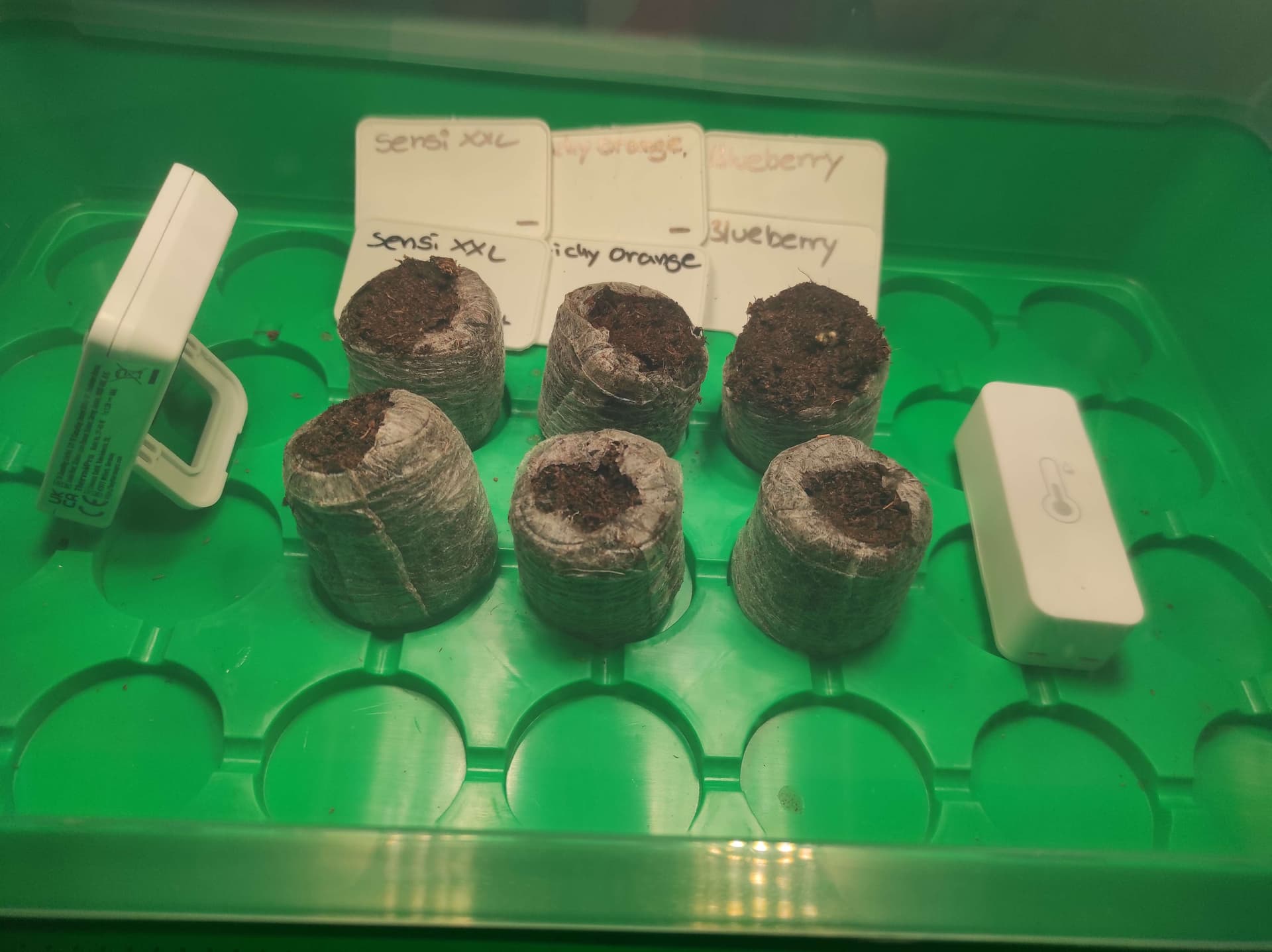 Diese sollen zuerst in einem Mini-Gewächshaus in Kokosquelltabs keimen und danach in einen 11L Gronest Stofftopf umgepflanzt werden.