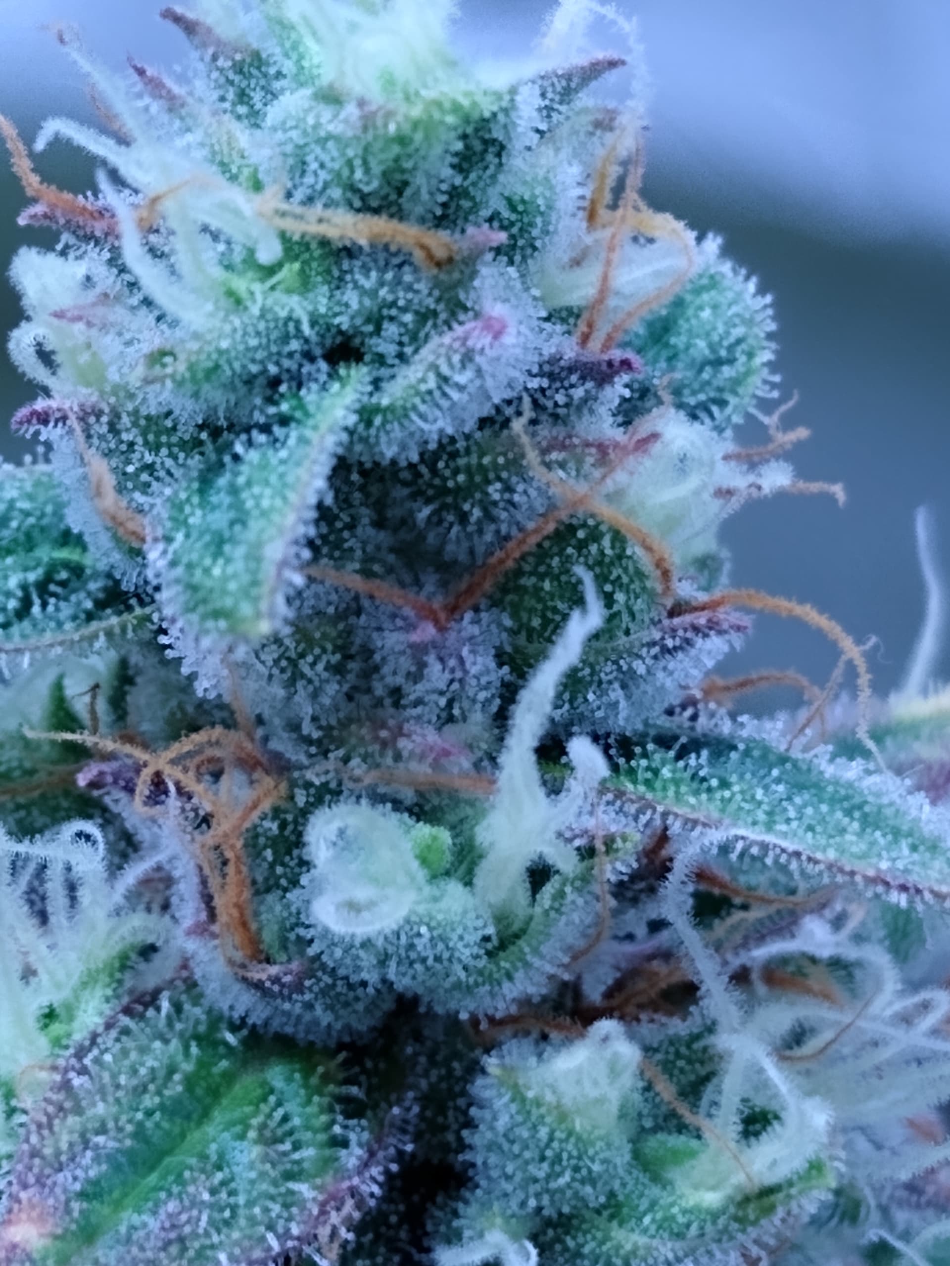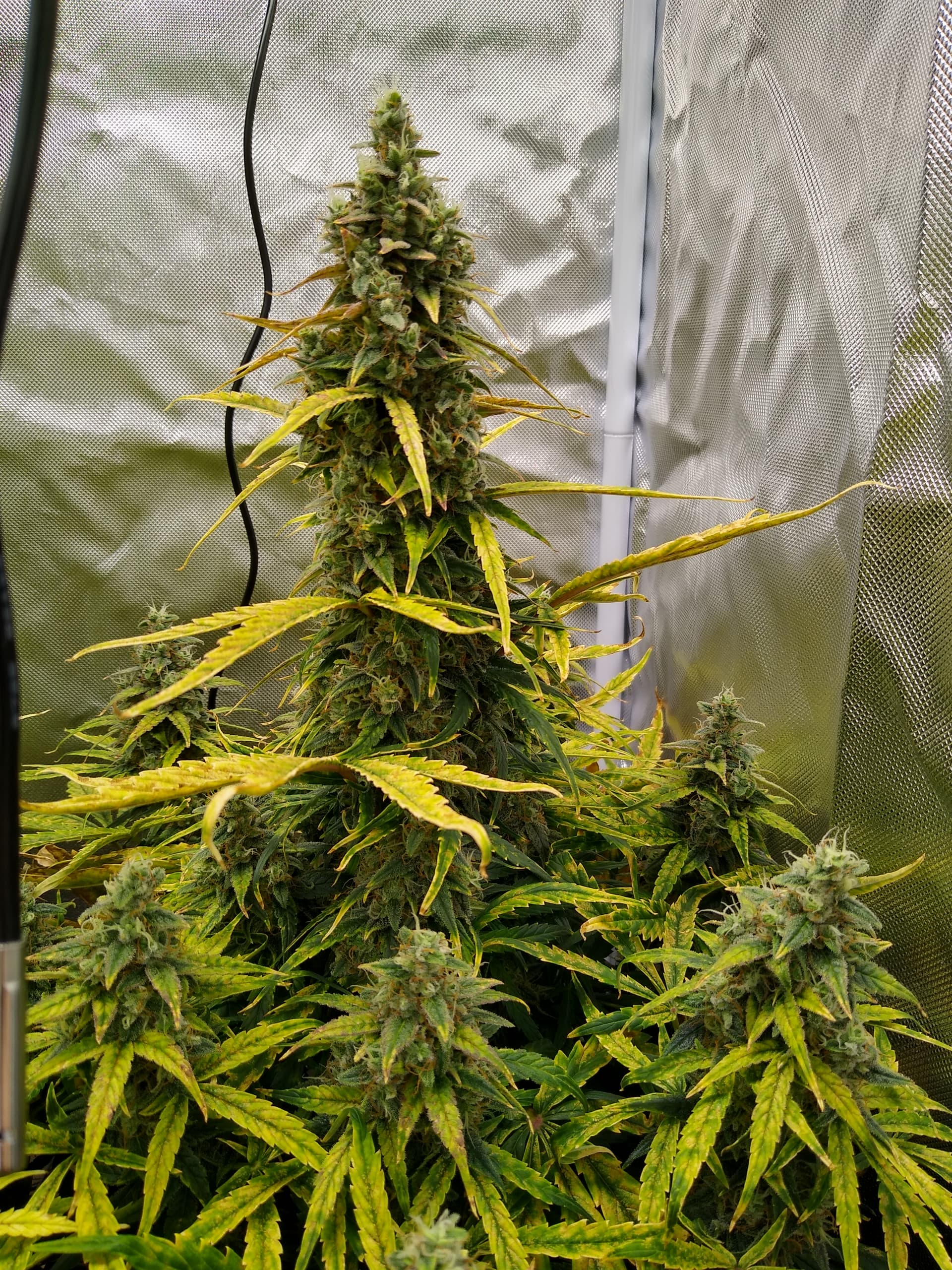 Erstmal wegen Licht. Ich weiss das in der Spätblüte die Pflanzen bis 800-1000 PPFD abhaben können aber ich denk das ist eher unter optimalen Bedingungen wenn die Pflanze alles hat was sie braucht. 500-600 PPFD ist glaub relativ am unteren Spektrum was man in der Blüte verwendet aber dadurch das es den Pflanzen nicht wirklich super geht wollt ich sie jetzt nicht auf Hochtouren laufen lassen. K.p ob das Sinn macht. Die Buds scheinen ganz ok zu wachsen, event. passts ja.