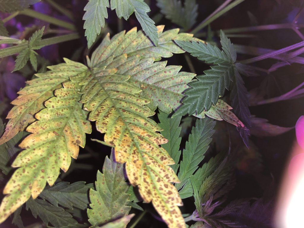 Für mich sieht das nach Kaliumüberschuss aus. Gibt’s oft bei organischen Grows weil die Dünger das alle ziemlich stark enthalten.