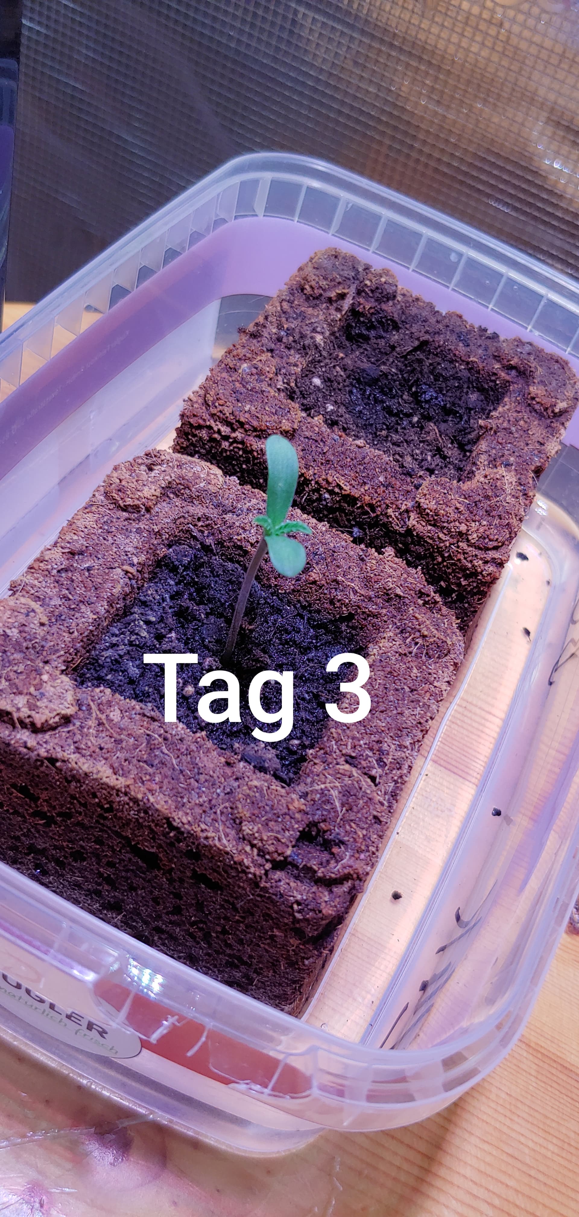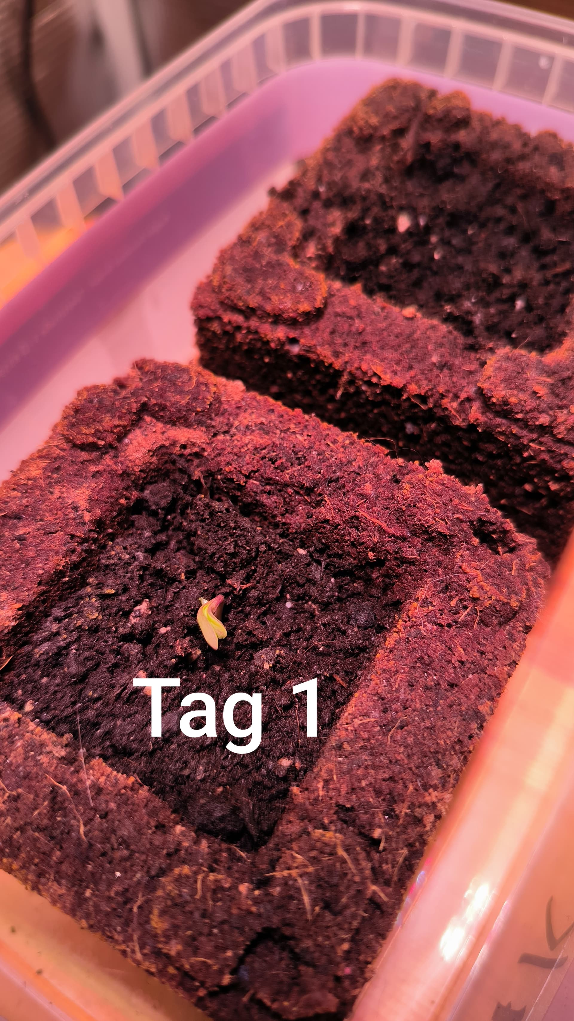 Ich ließ die Samen zwischen Wattepads vorkeimen und habe sie dann in die EB als sie offen waren und von der Wurzel schon bisschen was zu sehen war.