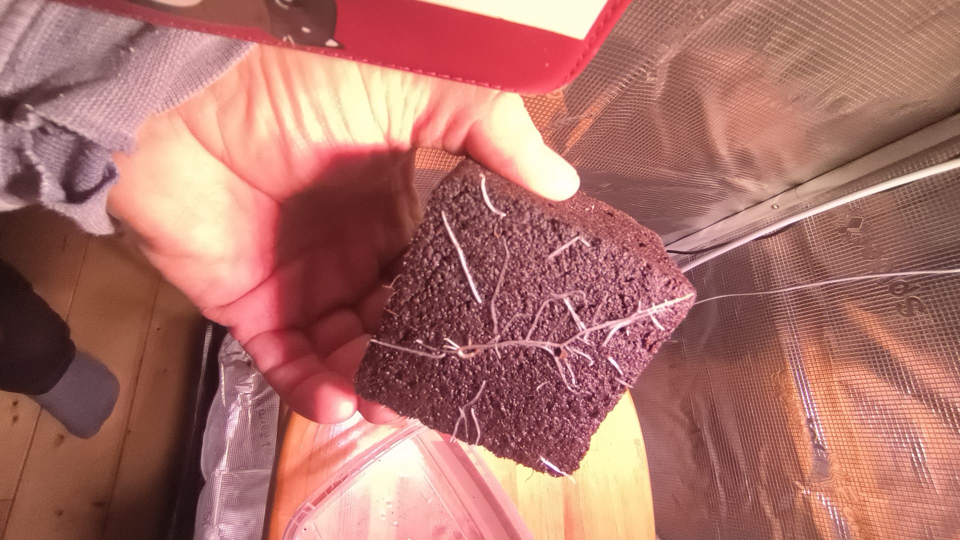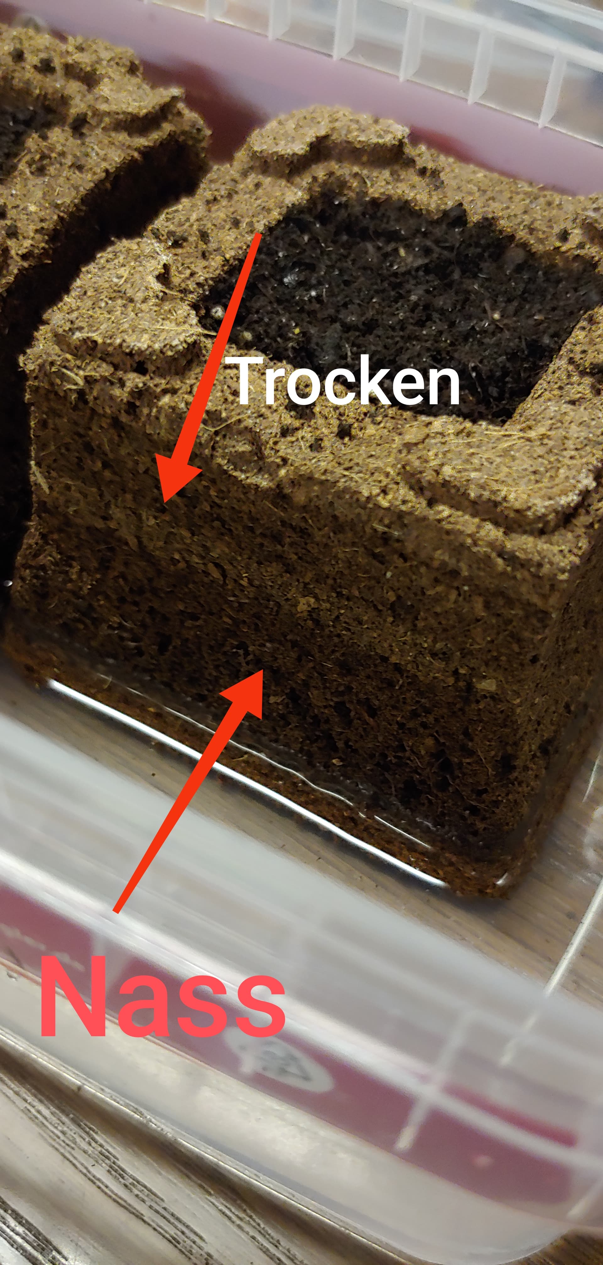 Nun hängt es von den klimatischen Bedingungen im Zelt ab wie schnell die Blocks trocken werden und man sie wieder wässern muss.