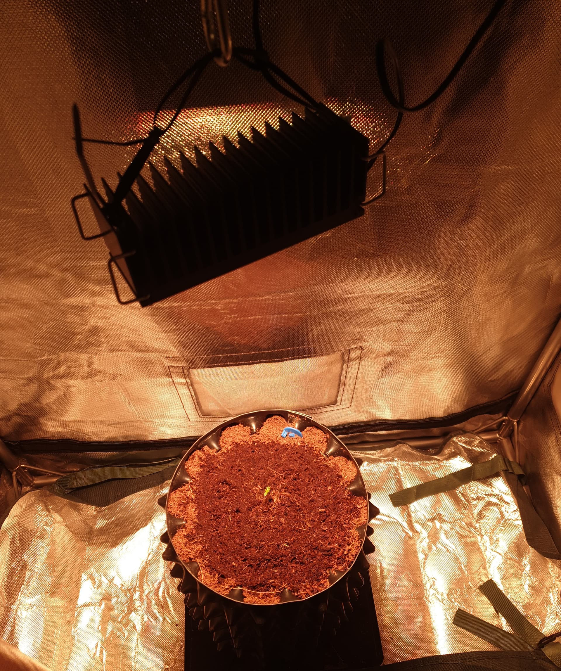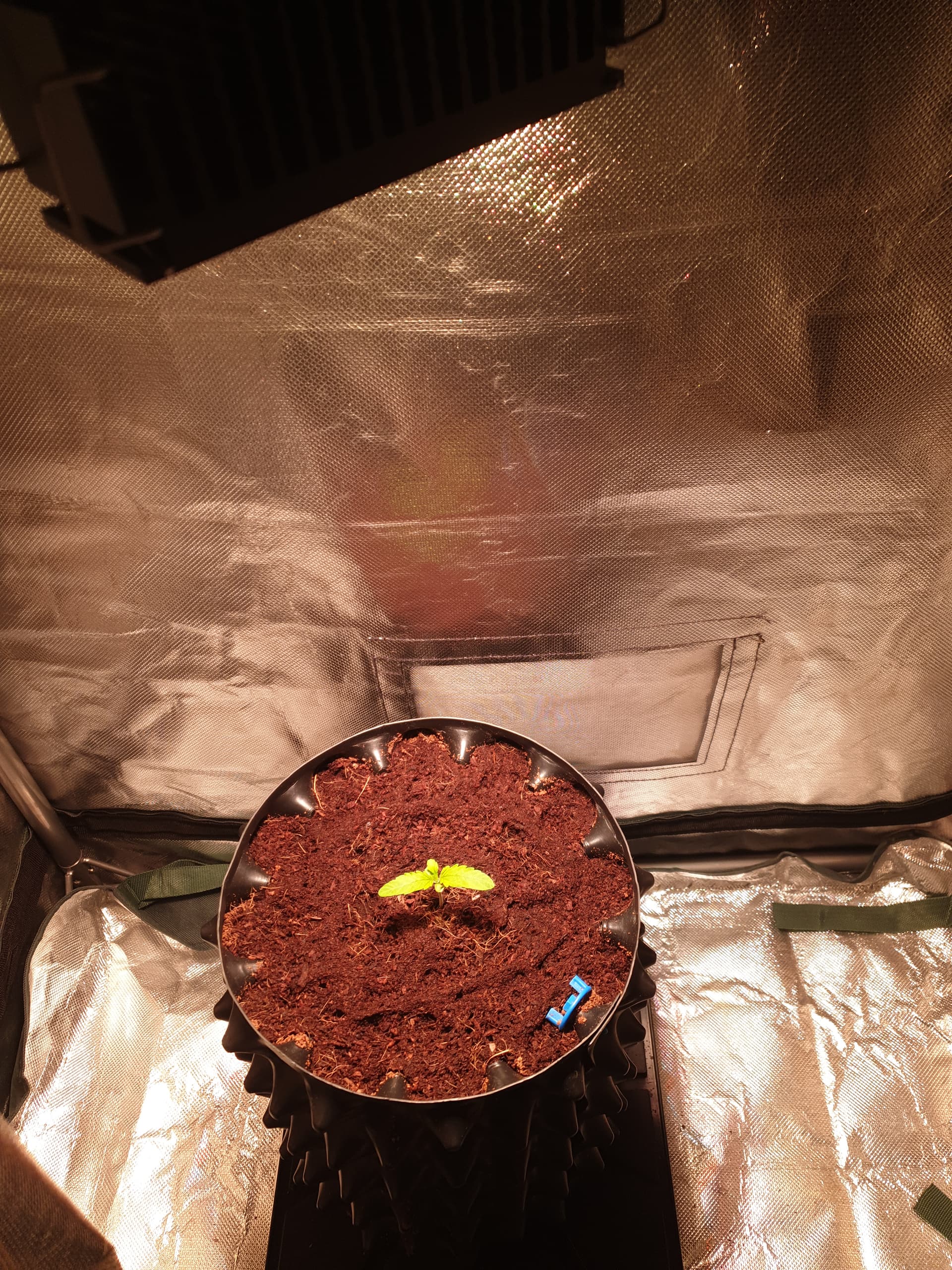 Die Pflanze ist leicht gelblich, aber woran das genau liegt, kann ich im Moment nicht sagen. Ich probiere gerade zum ersten Mal die M30 für den Start und arbeite zum ersten Mal mit Coco. Ich habe großzügig gegossen und denke, dass sich das im Laufe der Woche von selbst regeln wird. Ich bleibe wachsam!