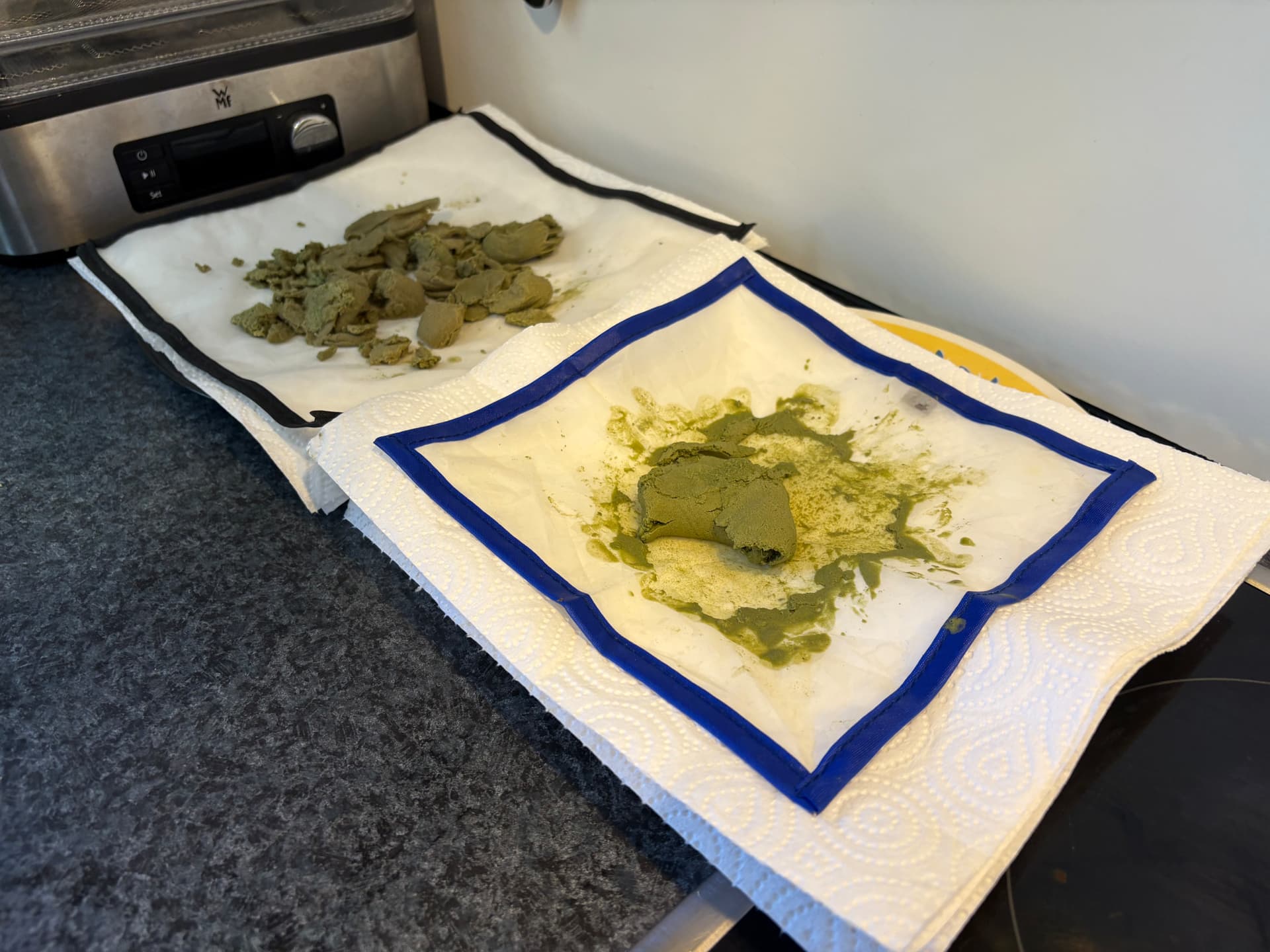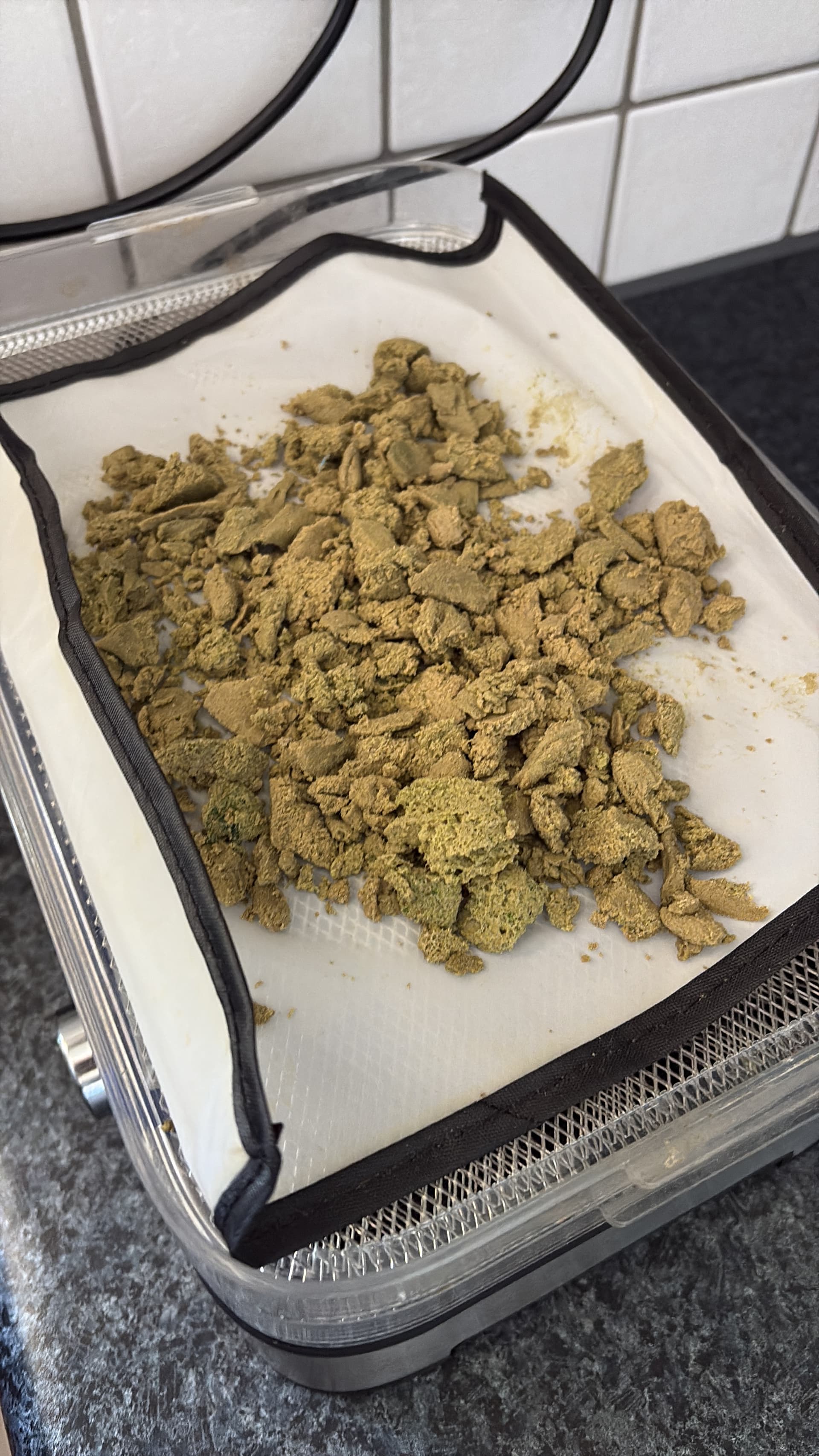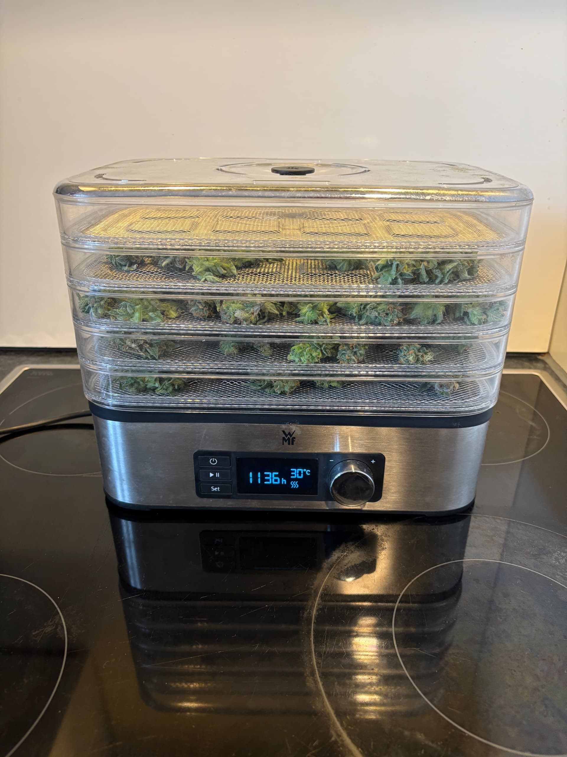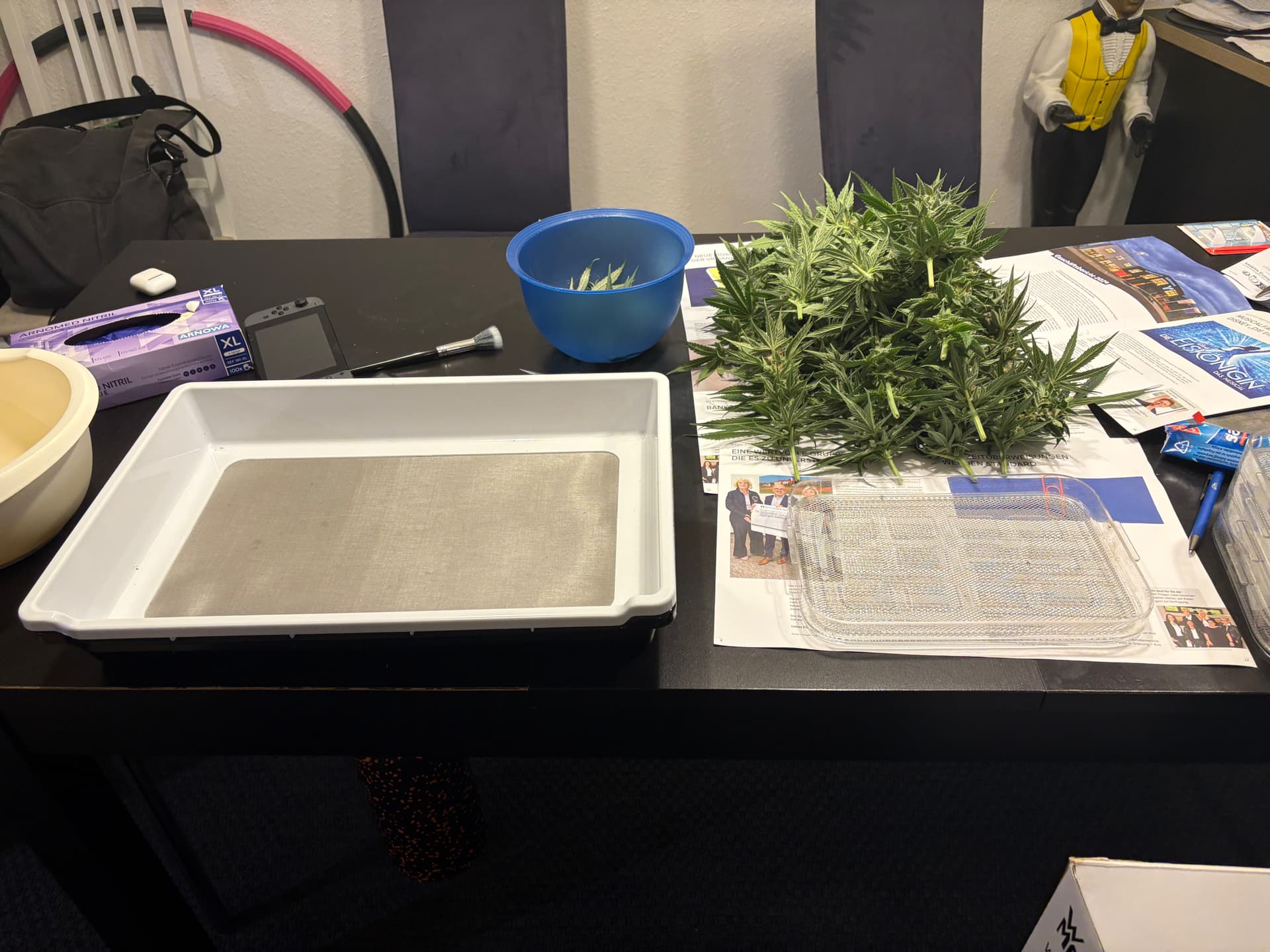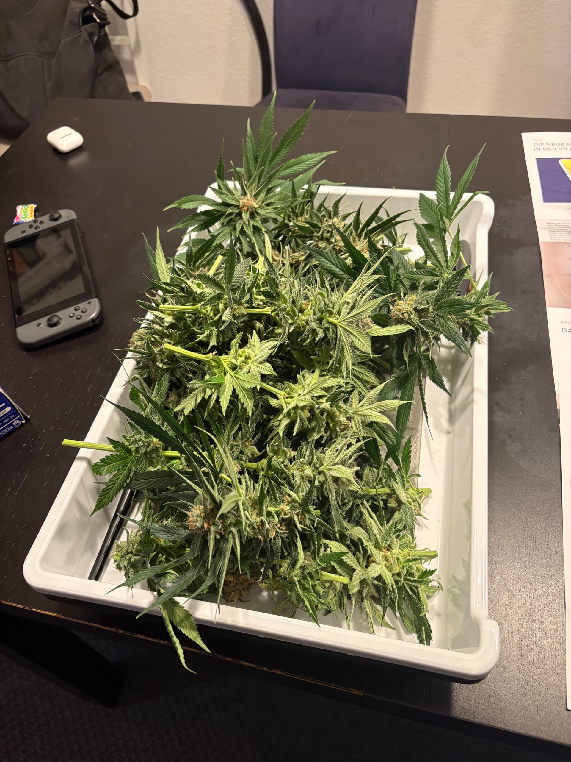 Die Mimosas im Zelt sind inzwischen geerntet. Es gab 140g trockenes, gutes Zeugs + zwei riesige Tüten für Haschisch. Ich war dann einfach zu faul um ordentlich zu ernten. Ansonsten hätte es ungefähr nochmal die selbe Menge gegeben. Aber ich muss auch aufpassen, dass ich nicht zu viel daheim liegen habe.