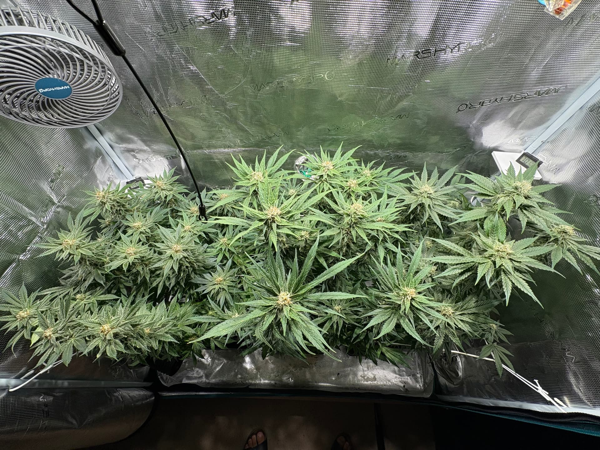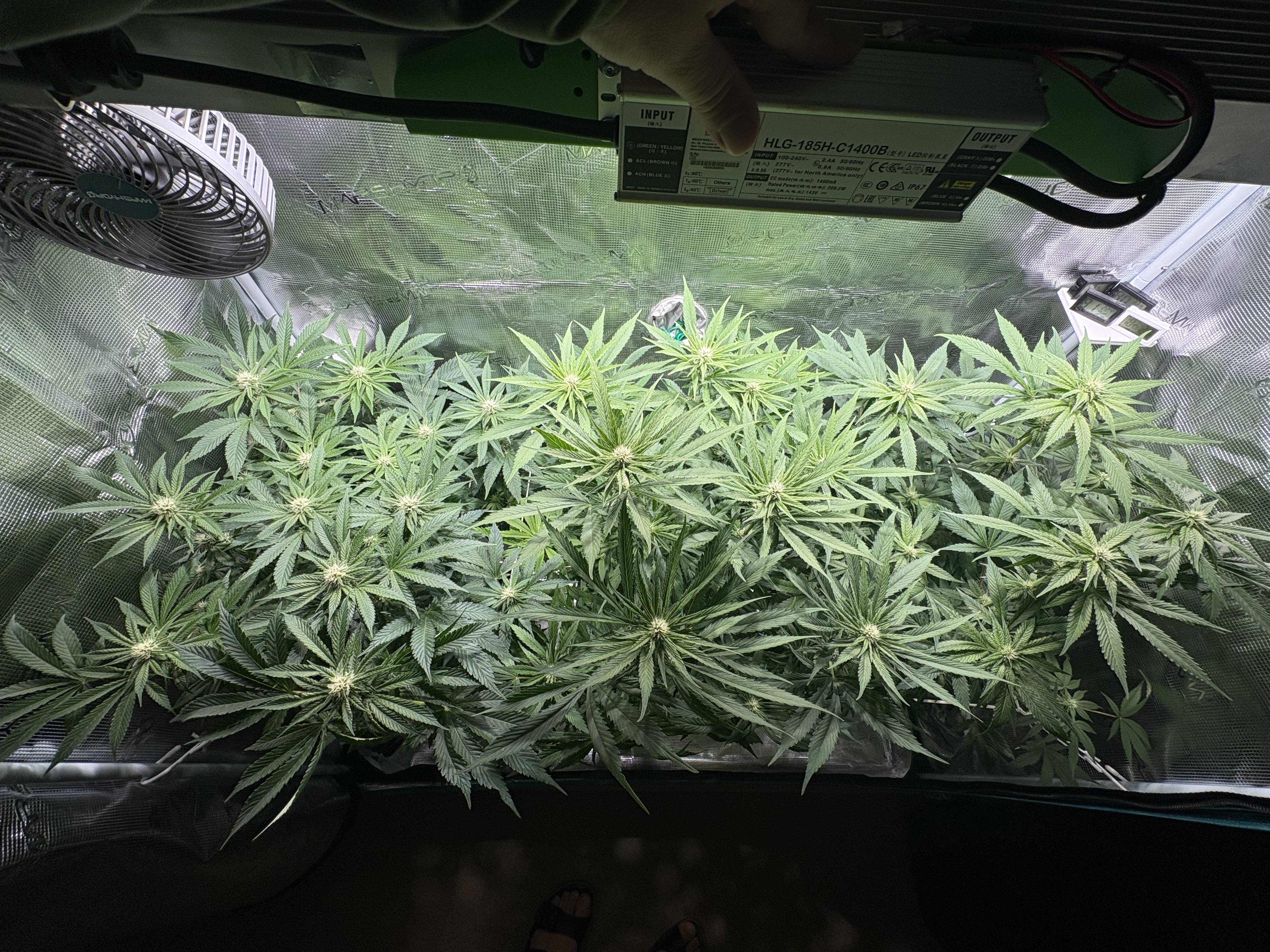 Die Autos sind jetzt in der sechsten Blütewoche. Schimmel. Aber es hält sich in Grenzen. Sie werden - Stand jetzt - komplett zu Haschisch verarbeitet.