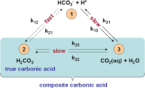 where H2CO3 represents carbonic acid, which is formed as an intermediate product of the reaction.