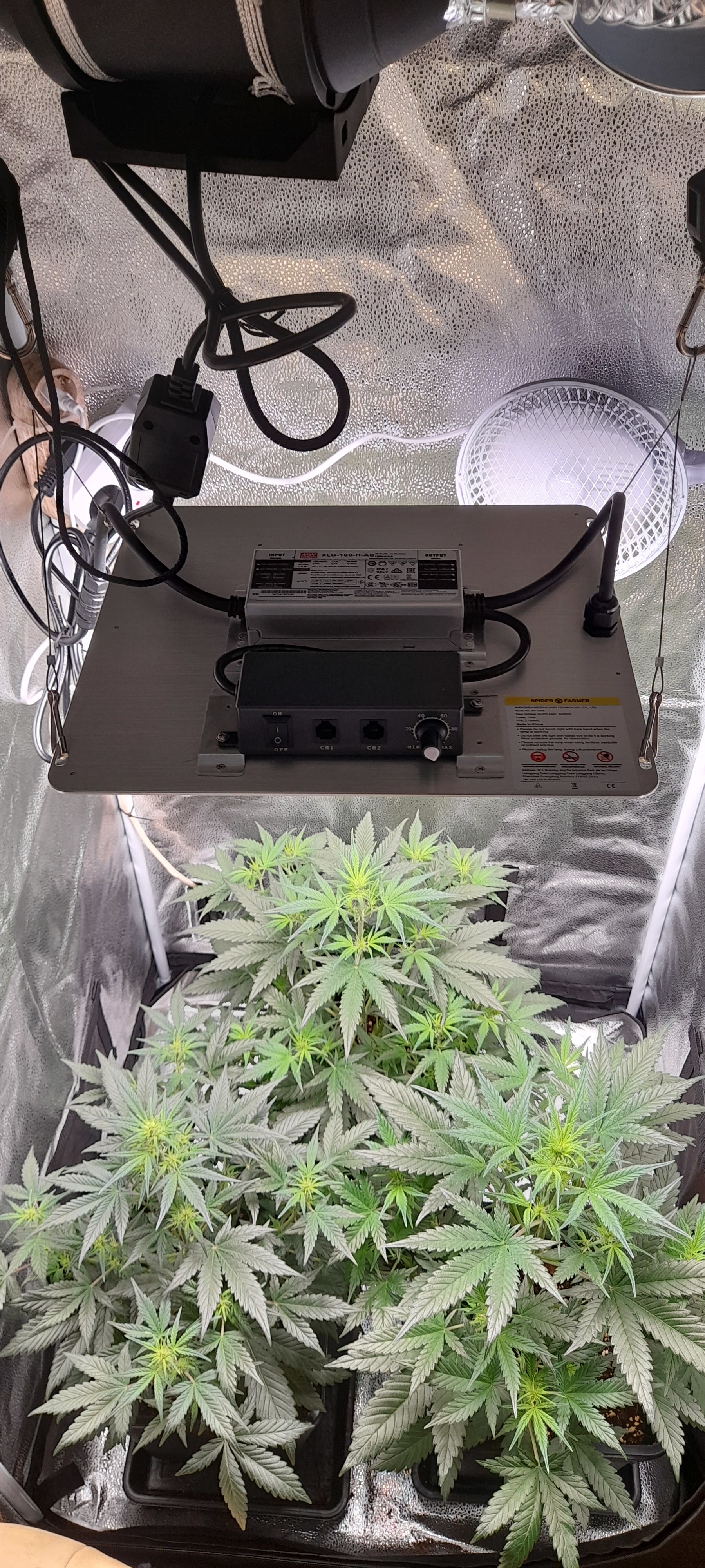 Der Lampenabstand zur Pflanzenspitze beträgt im moment 41cm. Ich stelle die Lampe fast täglich um 5 „clicks“ höher, versuche also im Moment einen Lampenabstand von 40-43cm beizubehalten.