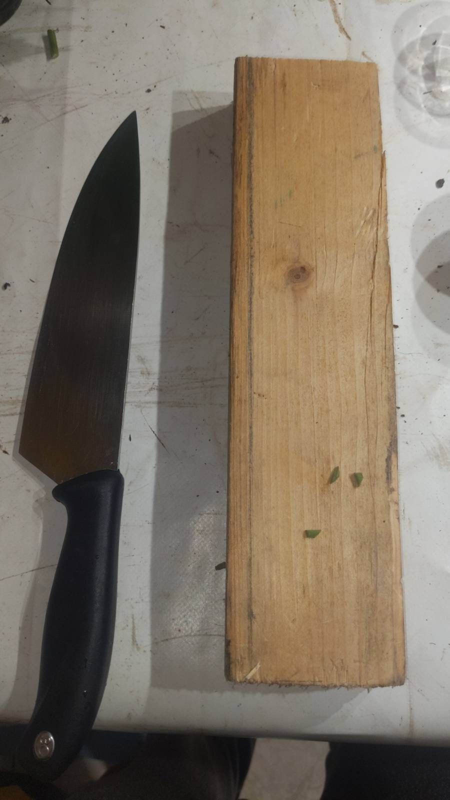 Bilder: Schneidebrett mit rasiermesserscharfer Klinge, Steckis im Glas und weiteres Arbeitswerkzeug ![]()