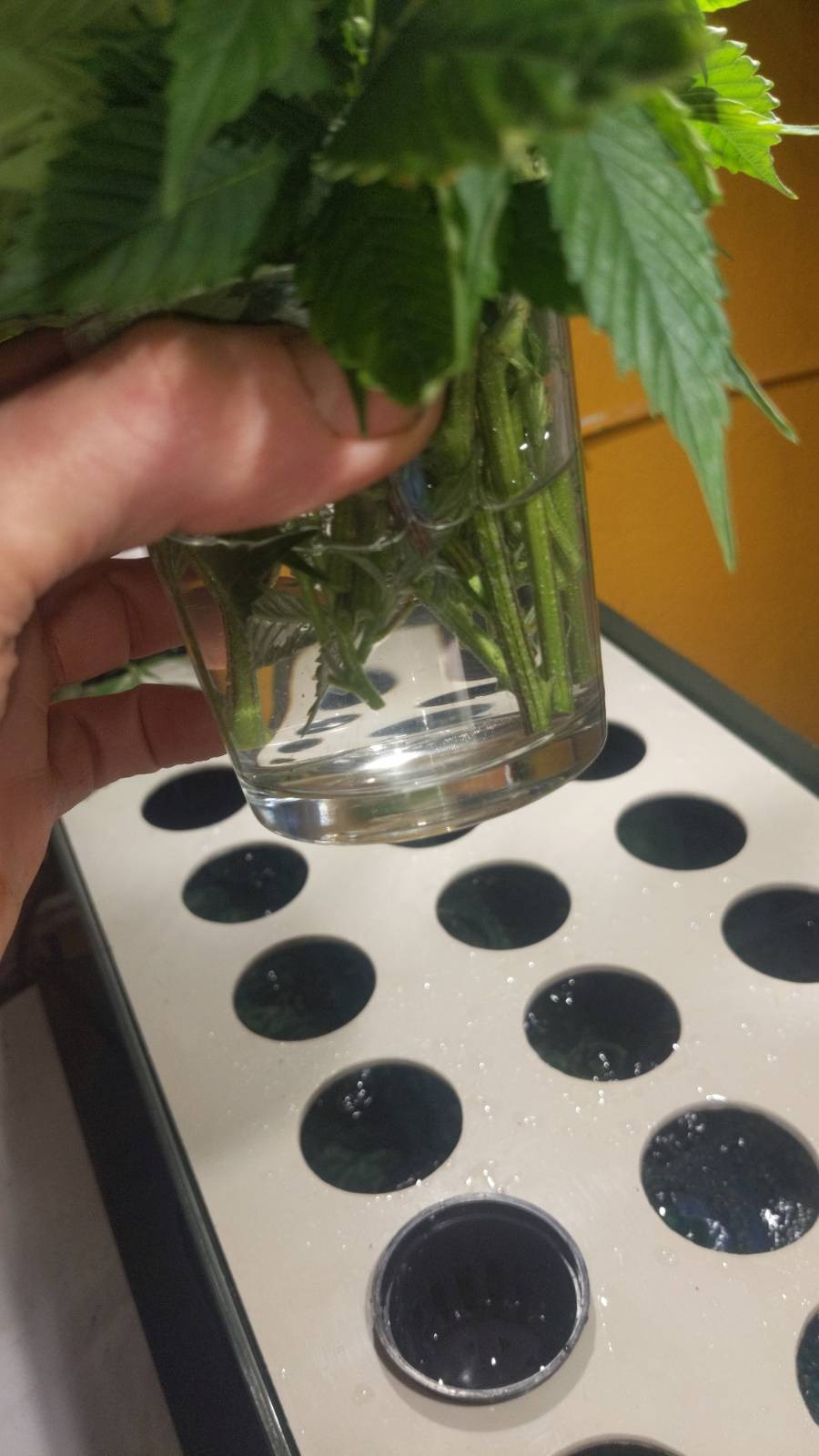 Ich hab bei meinem ersten Versuchsgrow die Pflanzen aus den Bagseeds ja getoppt und die abgeschnittenen Triebe einfach in ein Glas mit Fluval Stratum gesteckt. Vorher in Root-dingens Pulver gedippt.