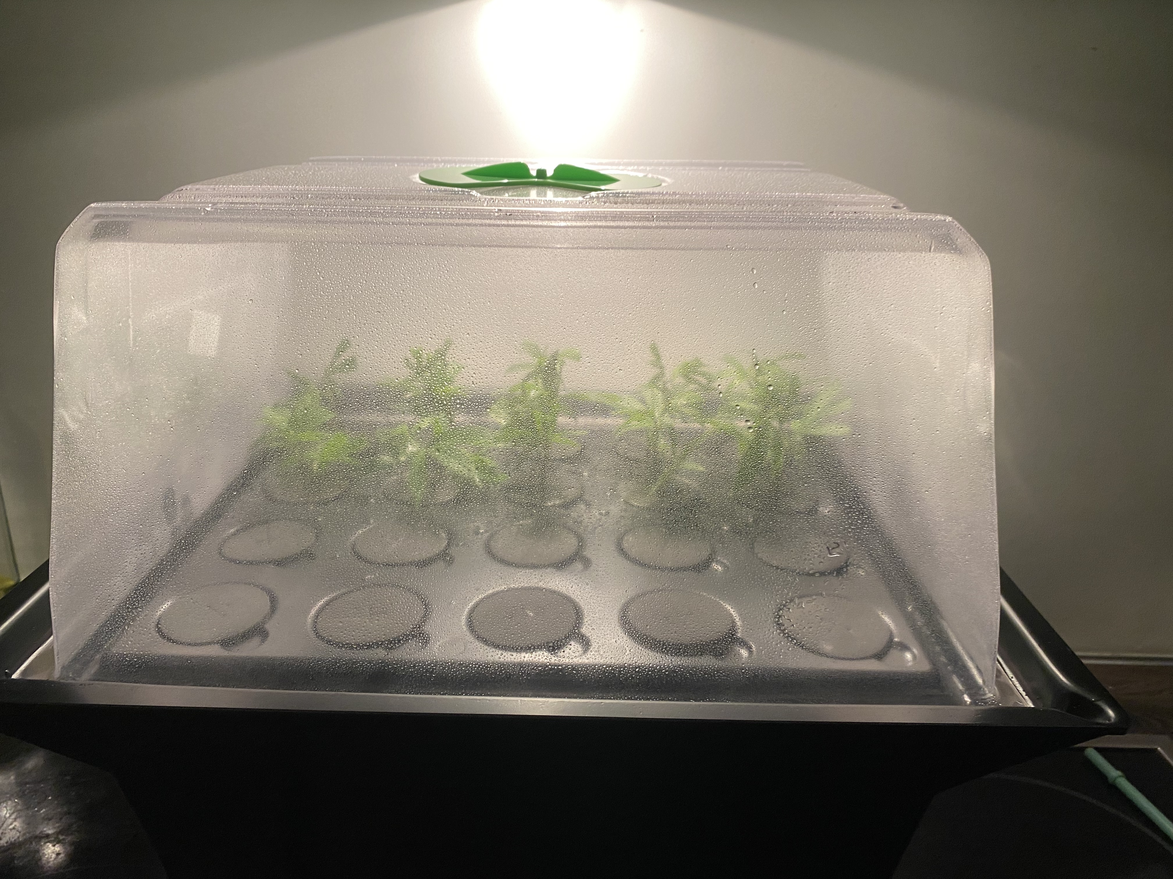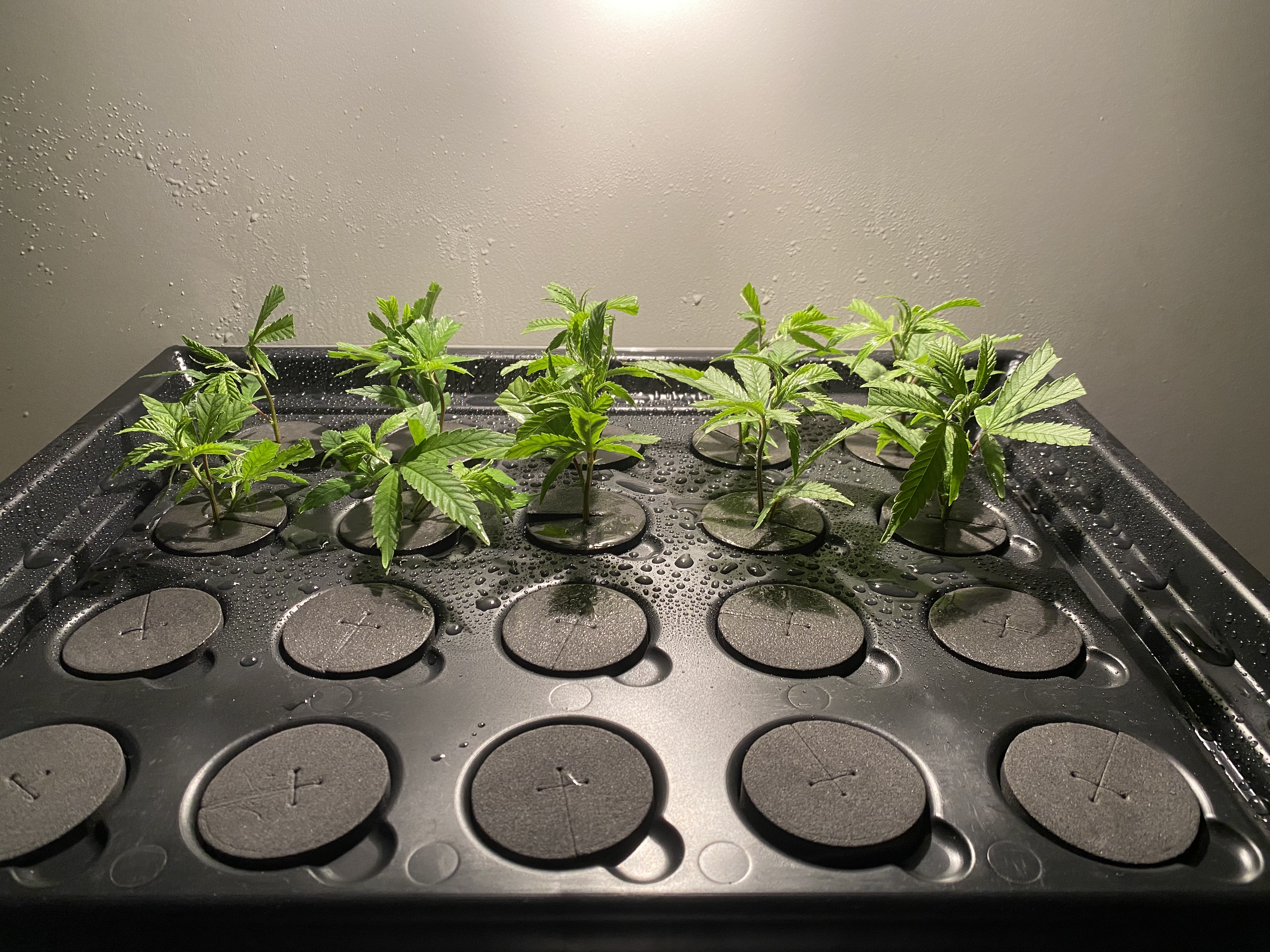 Interessant - ich benutze so ziemlich exakt das gleiche Setup - inkl. Luftfeuchtigkeit und Temperatur - und ich habe es in drei Versuchen mit insgesamt 15 Stecklingen nicht geschafft, auch nur einen Steckling zum Wurzeln zu bringen
