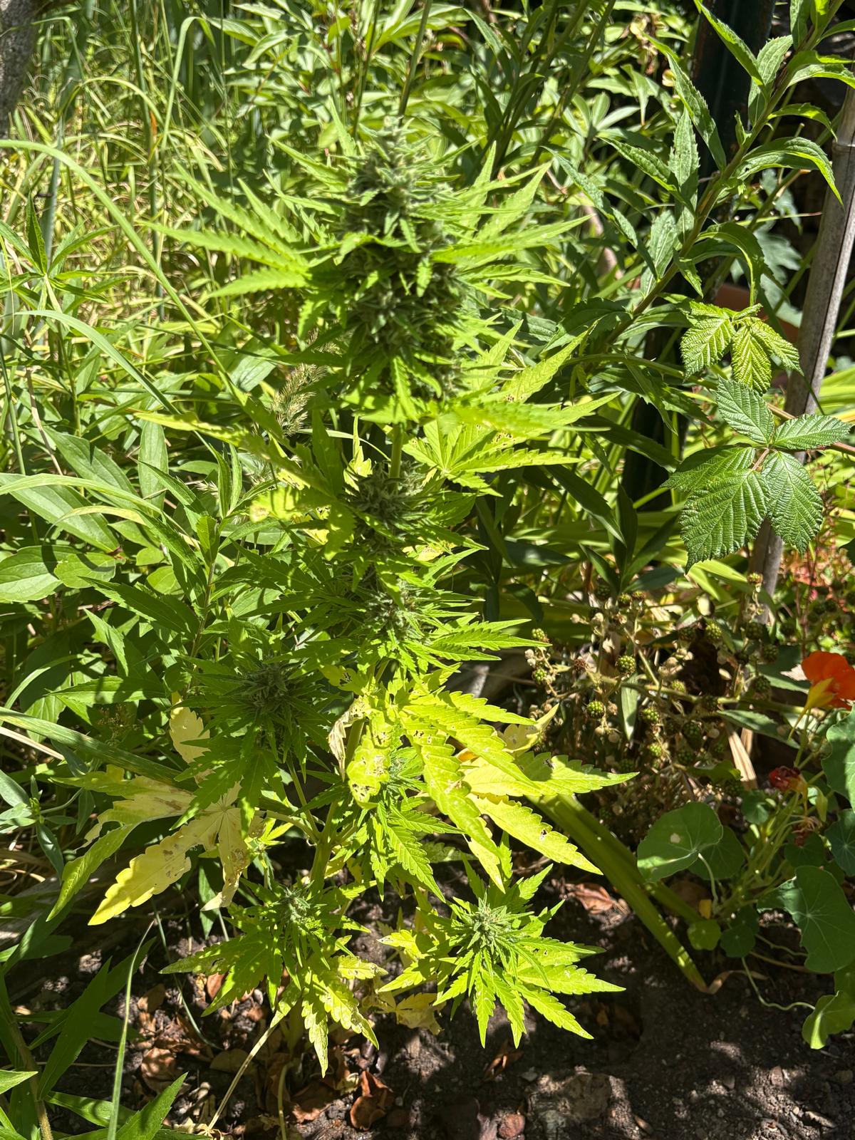 (Gibt ihr Bestes trotz radikalen Fraßspuren, aber eine Ersatzpflanze ist in den Startlöchern. Auch wächst sie anders, lange nicht so dicht, wie die anderen. Vllt. ein gen Defekt?)