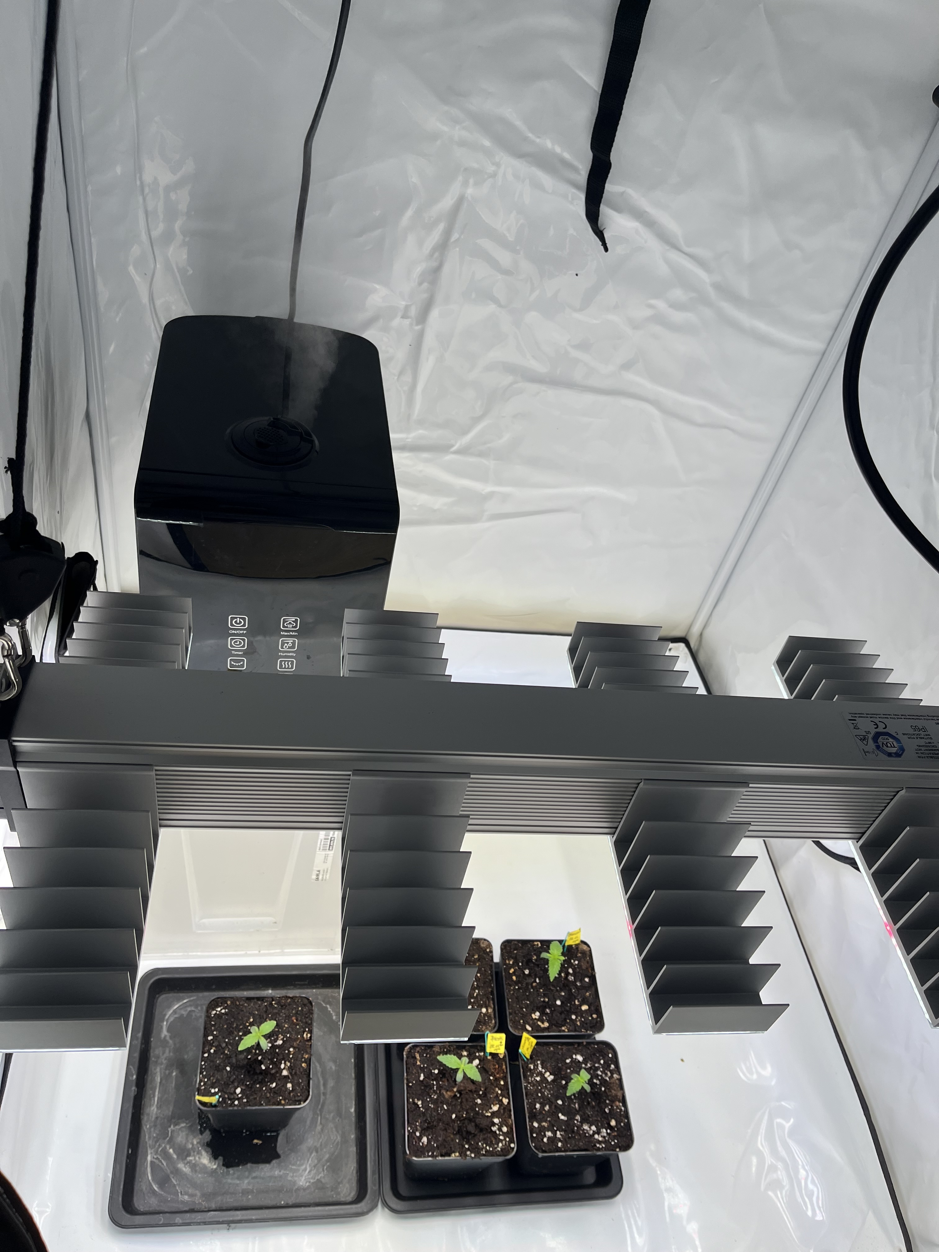 Zelt ist ausgewischt, Luftbefeuchter steht drin und ist auf 65%.