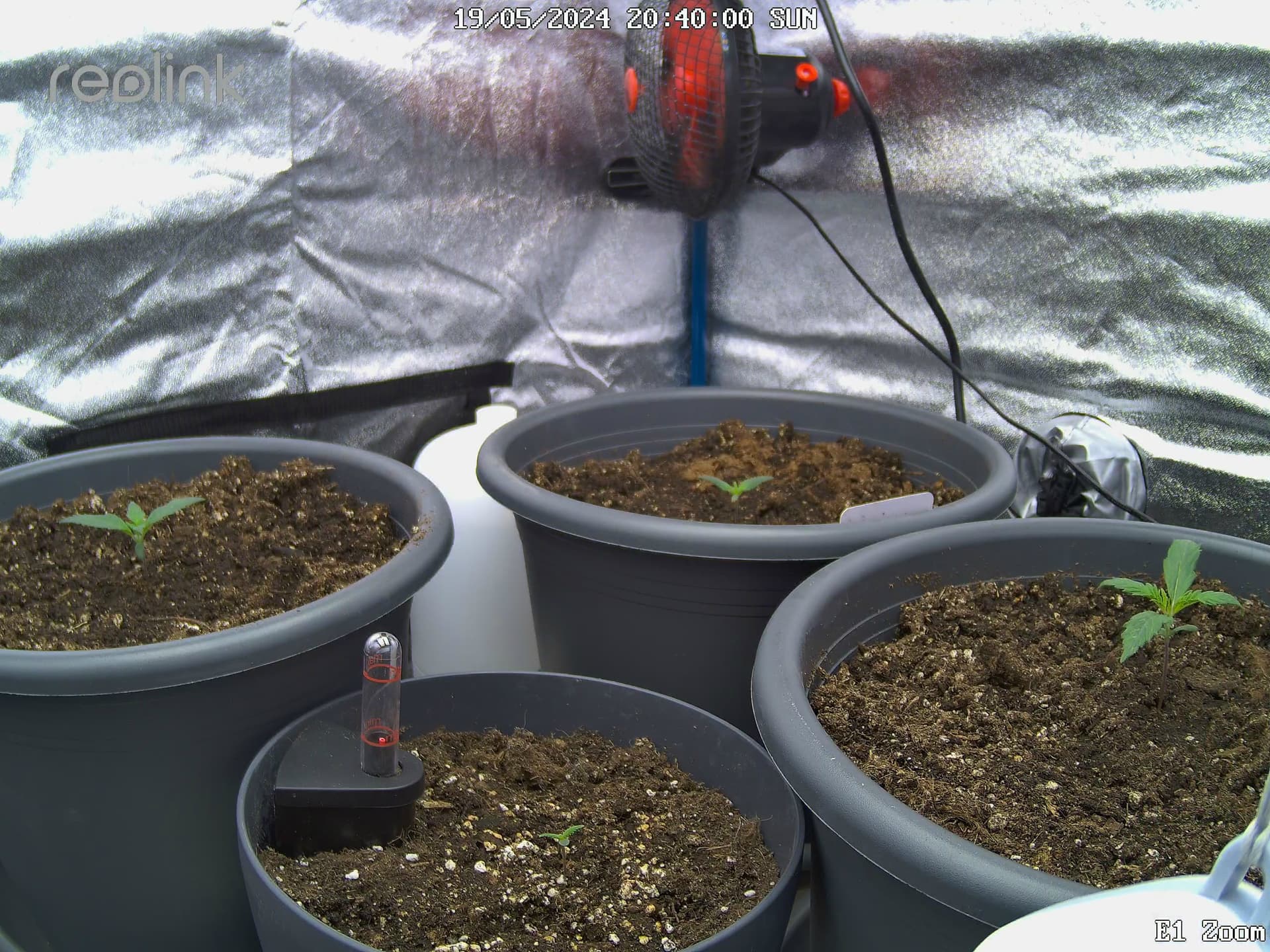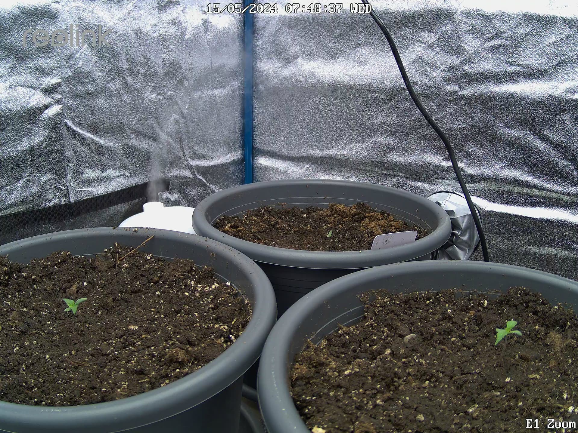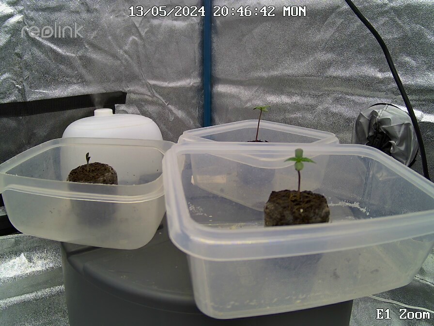 15.05. Alle 3 Pflanzen ins 15l Endgefäß umgetopft. Das 4. Pflänzchen wurde aus dem Glas zuvor bereits in nassen Tüchern eingewickelt und ist perfekt gekeimt.