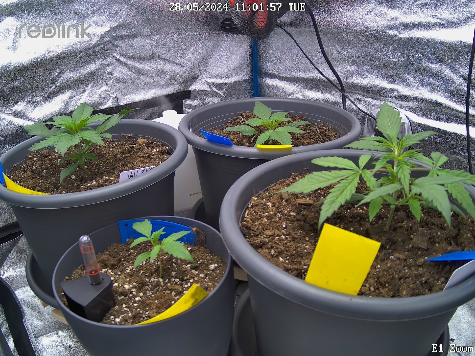 Die sollten eigentlich für verschieden Sorten sein. Da ich aber 4x OG Kush anbaue habe ich diese einfach zweckentfremdet und die Gewichte „leer“ und „gegossen“ draufgeschrieben.