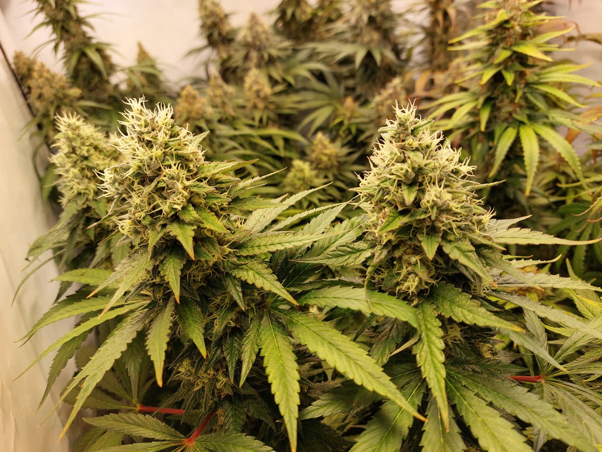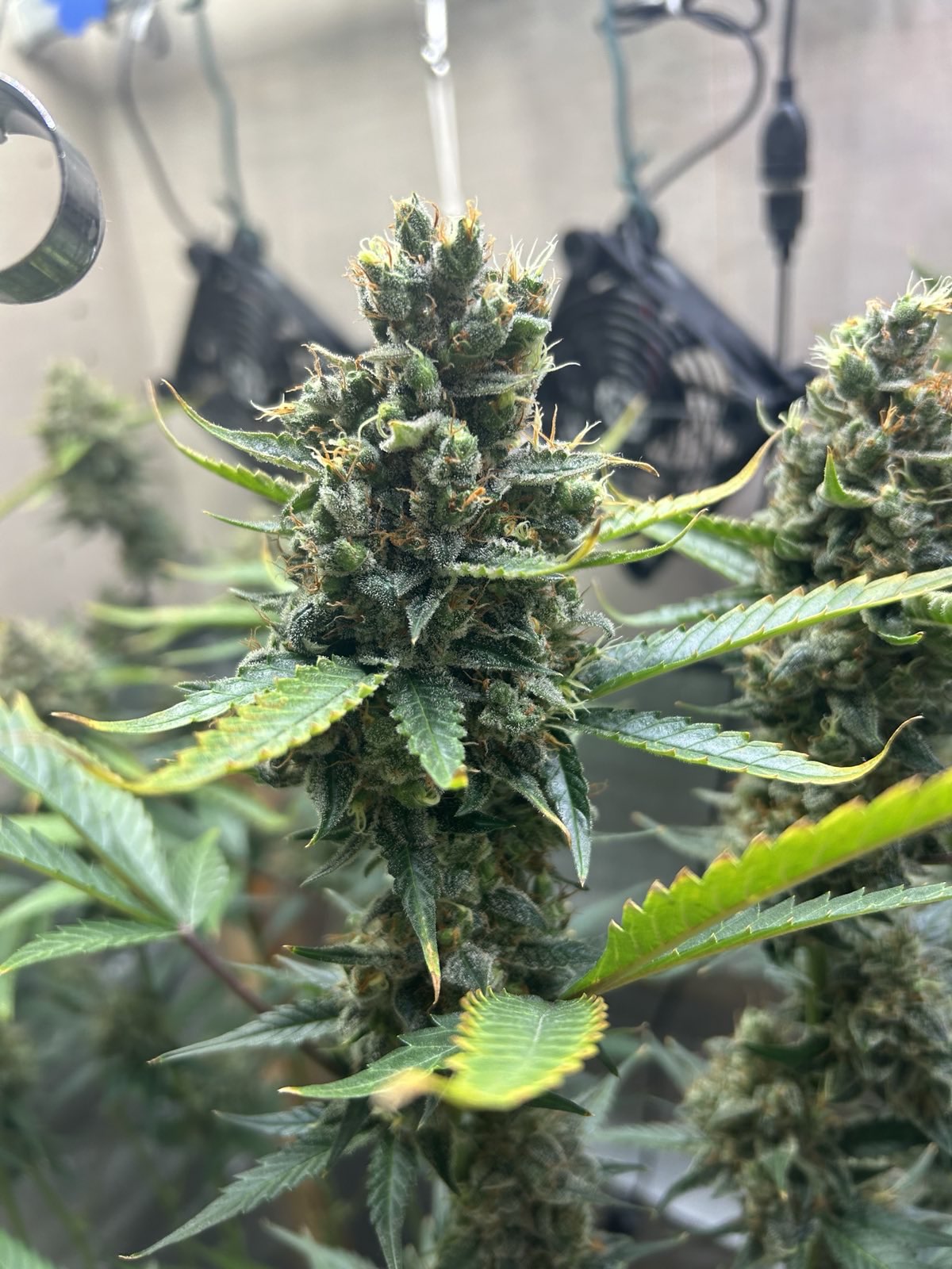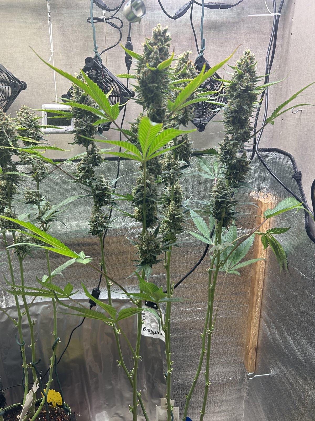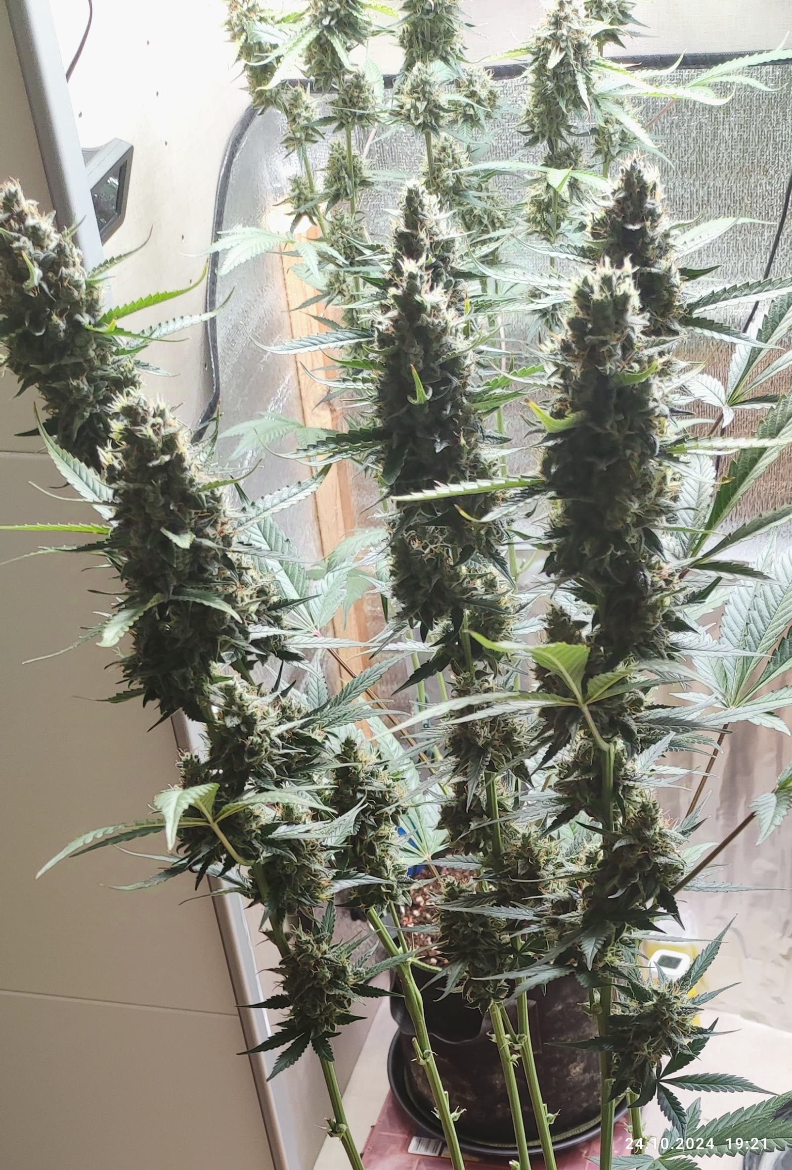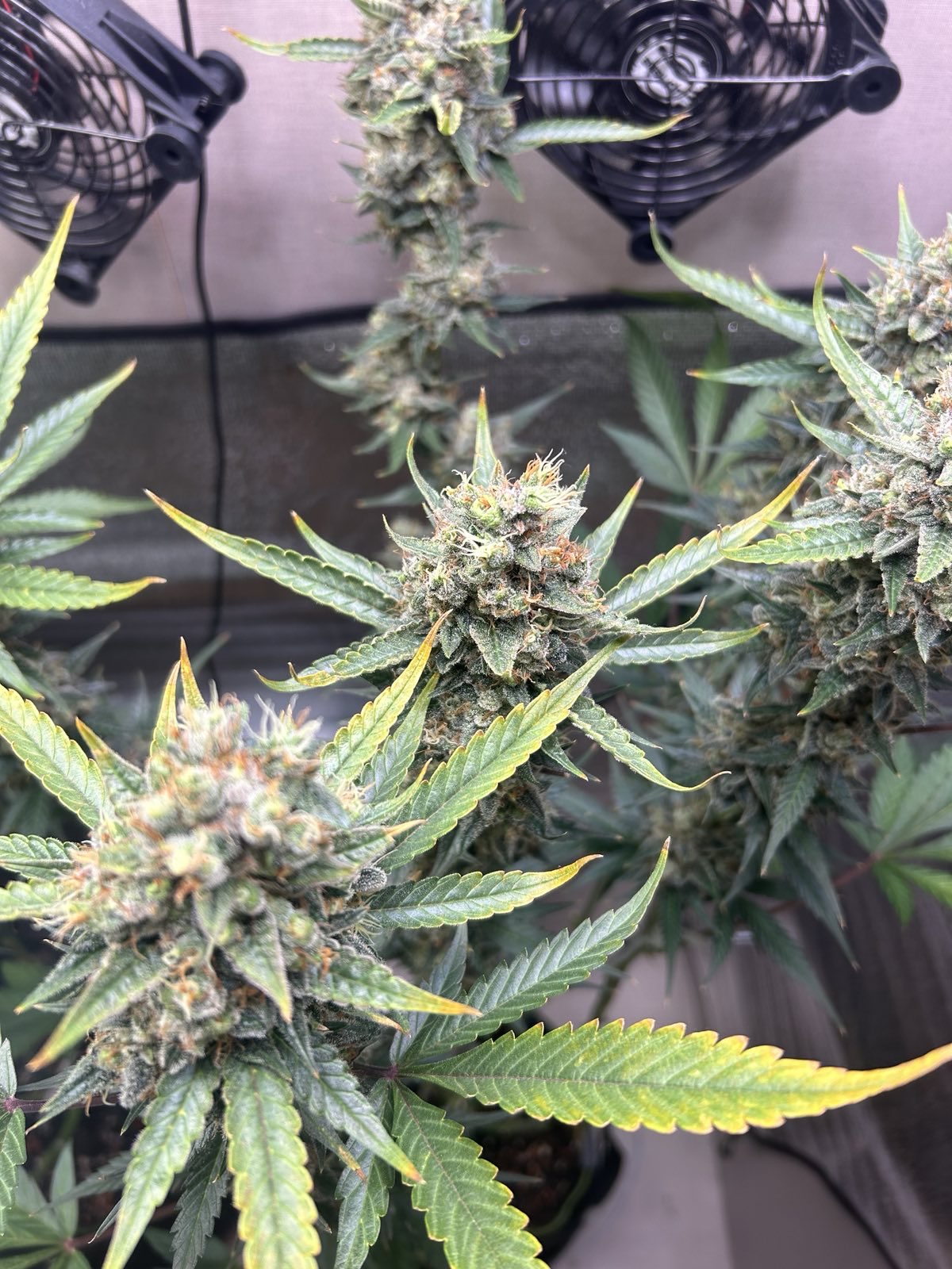 Habe Runtz und GG4 im Zelt (Photos), befinde mich am Ende der 7. Blütewoche (Breederangaben 8-9 Wochen), die Trichome sind 70% milchig und 30% glasig. Die Runtz haben 80% braune Haare auf den Buds, die GG4 nur ca 30% braune Haare (denke die brauchen auch länger)