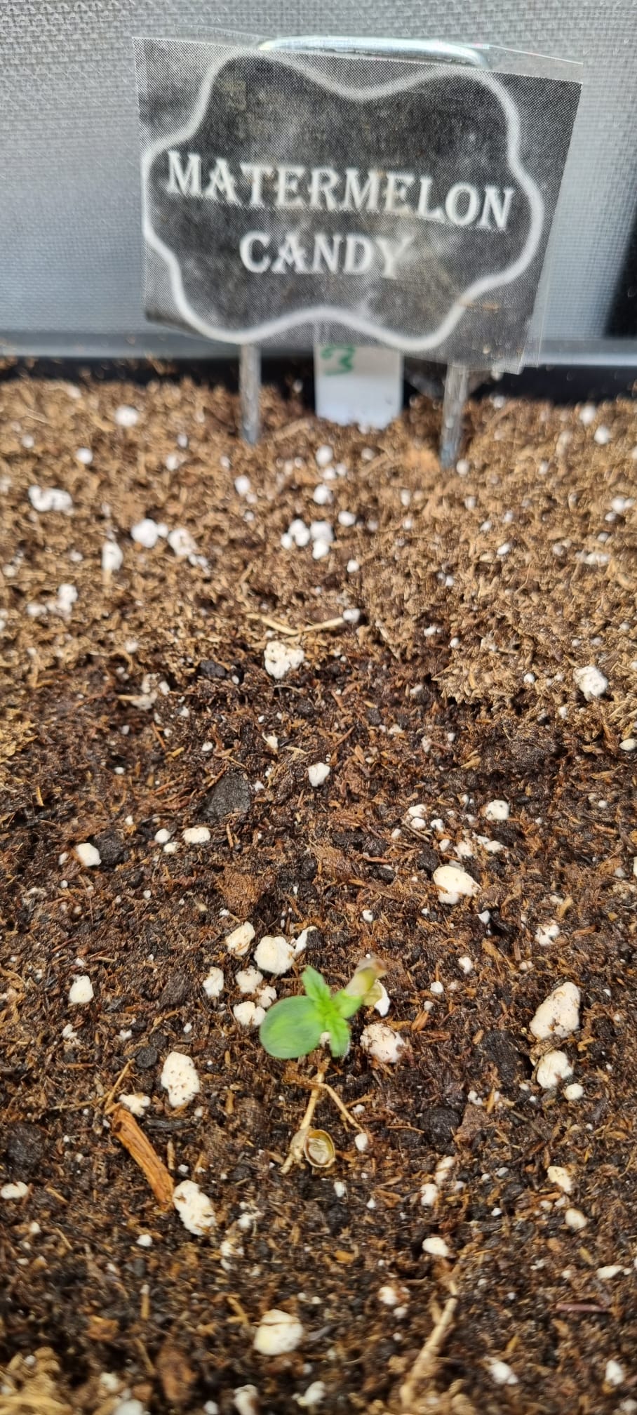 Heute ist die Watermelon im 9L Teku nach links umgezogen, weil sie dort weniger Licht bekommt. Möglicherweise hat sie etwas viel davon, oder auch too much nutrients. Ein paar Blätter kommen verdreht raus. Licht habe ich etwas auf 36 DLI runter genommen. Den Entfeuchter hatte ich gestern mal ein paar Stunden an, was schonmal gut was gebracht hat.