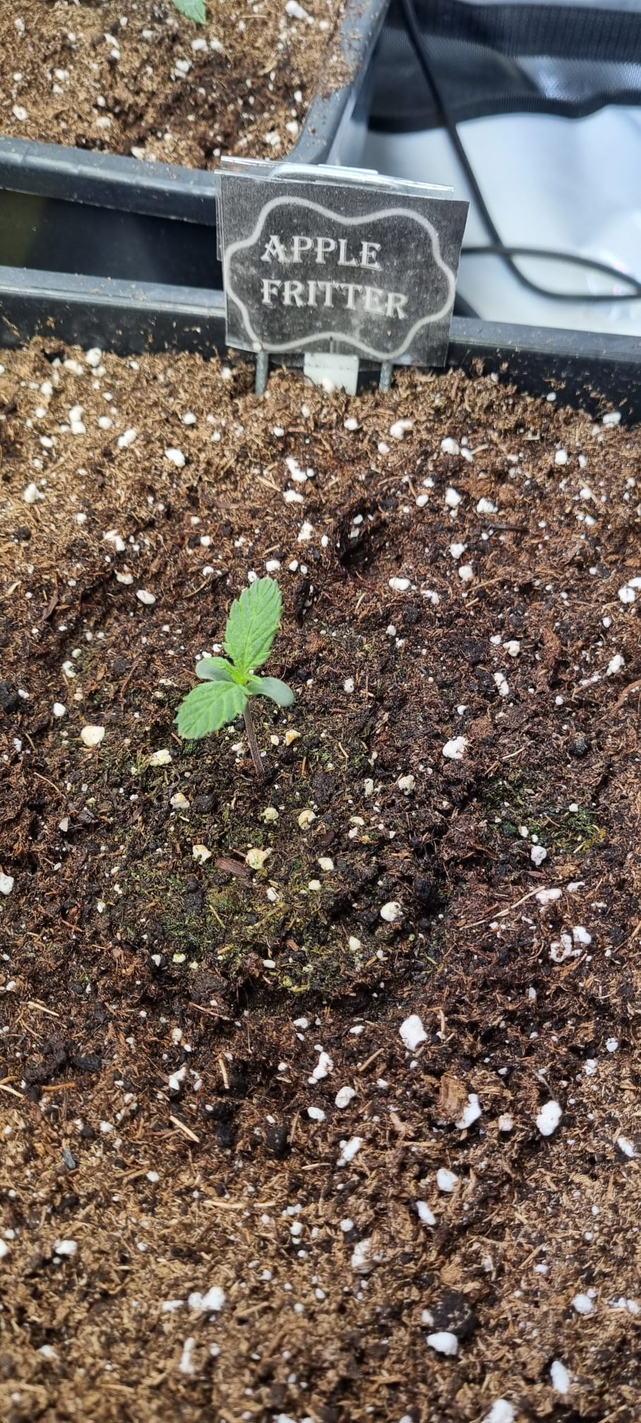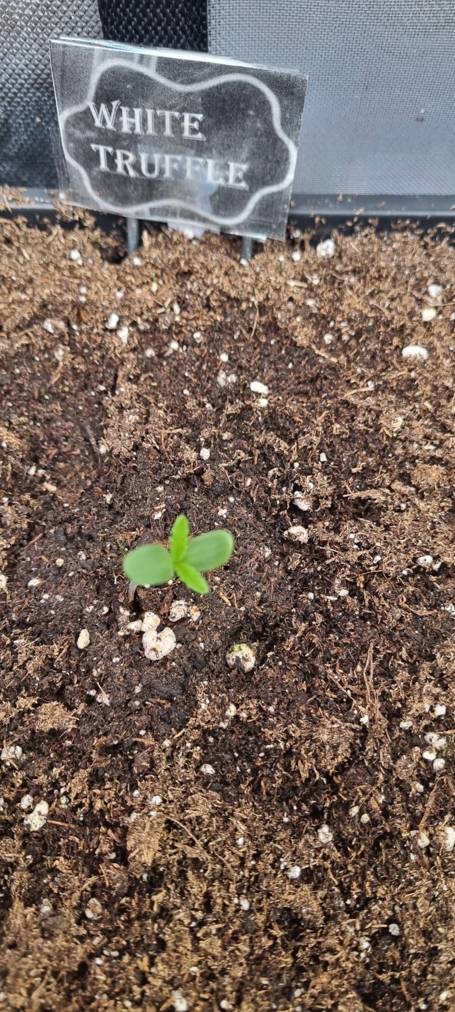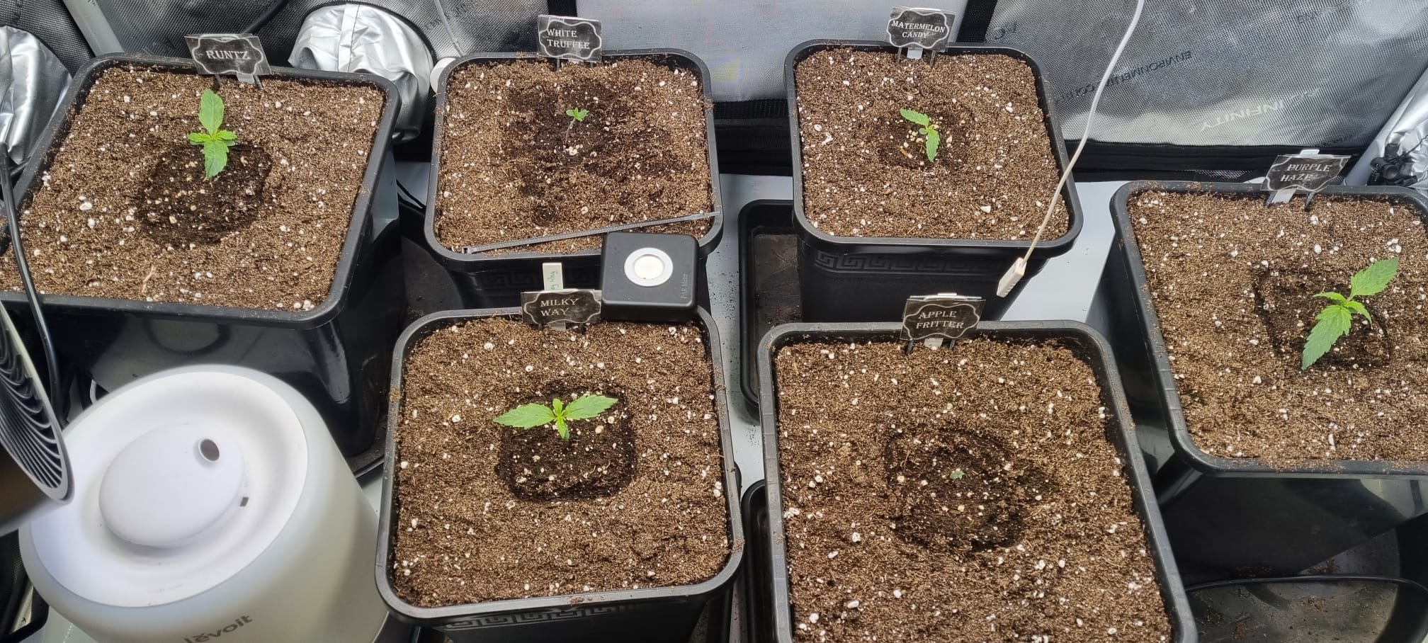 4 von 6 Ladies sehen schonmal gut aus. Leider hat die Apple Fritter keine Fächerblätter mit dabei, daher rechne ich sie mal weg. Die White Truffle lässt noch auf sich warten. Vorsichtshalber noch eine Tropicana und eine Apple Fritter zum Keimen gebettet.