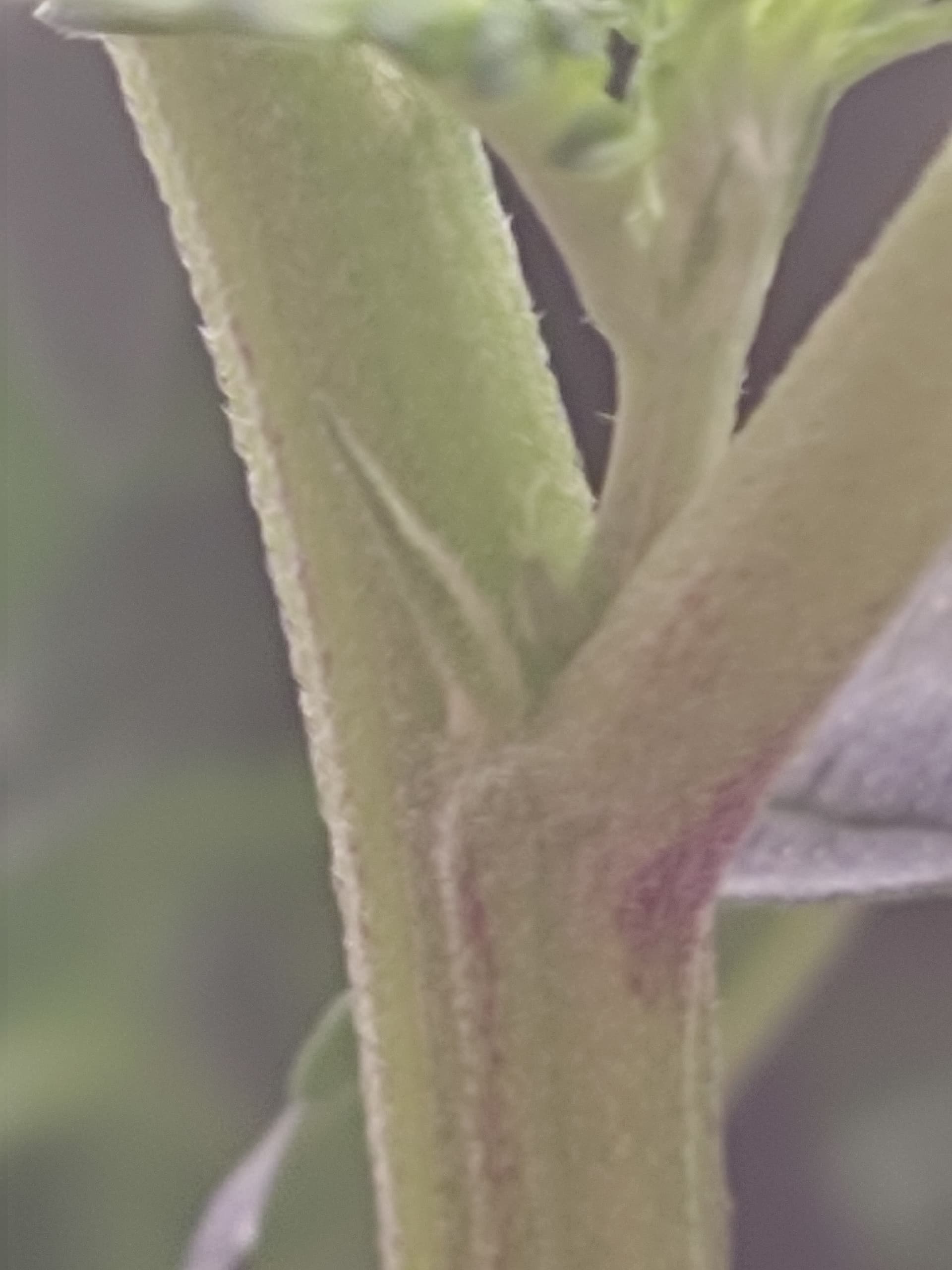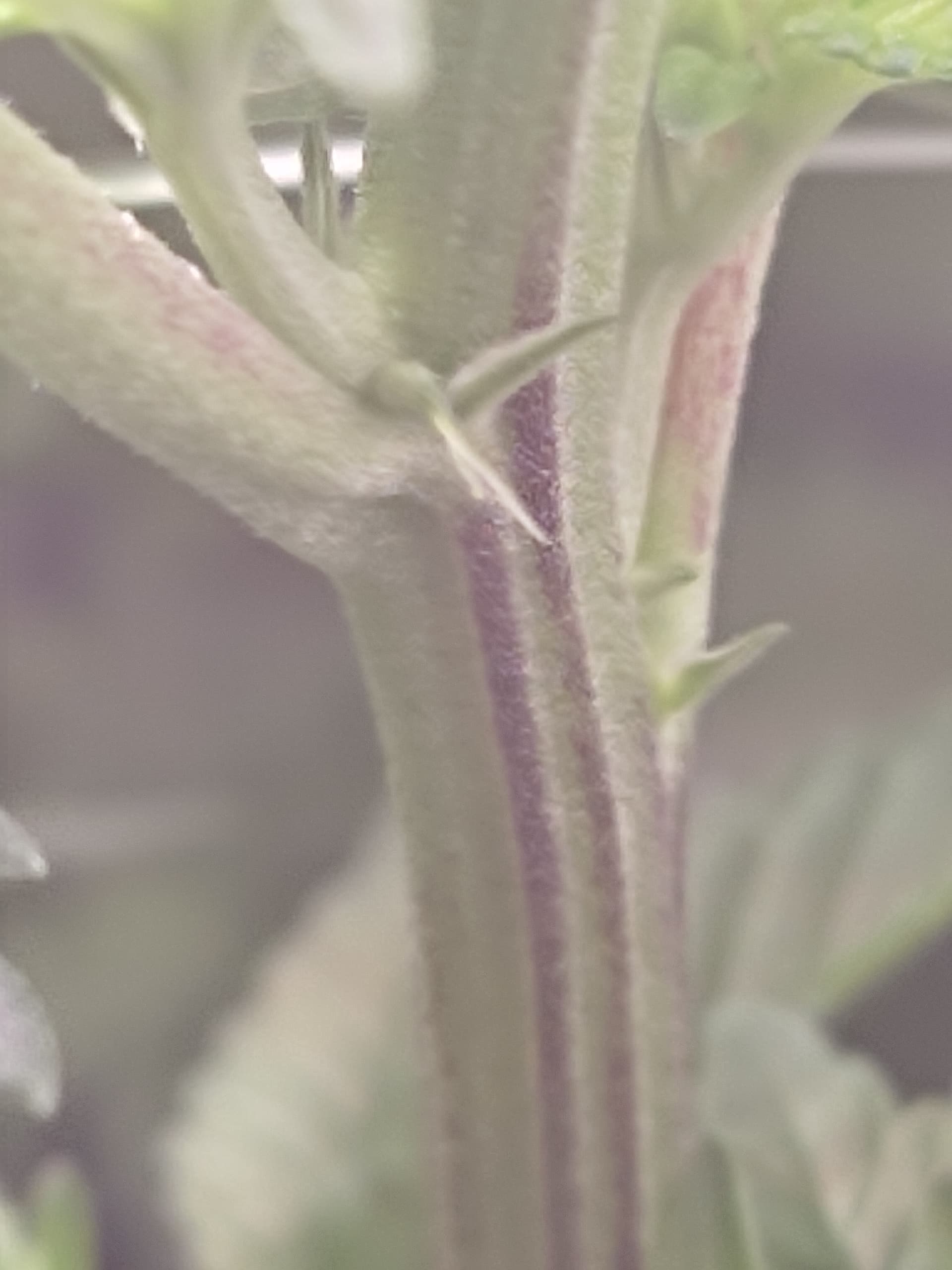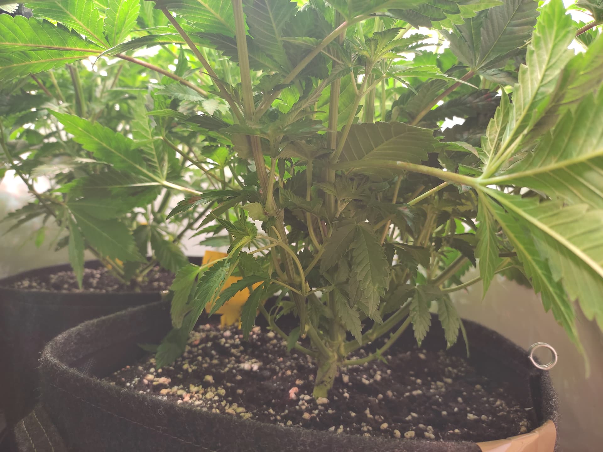 Die beginnen dir langsam wirklich zu mangeln, erst die Blätter … jetz langsam auch die Stängel verfärbt … und die Blüte hat noch nichtmal angefangen. Wirst entweder anfangen müssen das Xfache von diesem Biobizz zu verwenden (Grow/Bloom) oder auf einen stärkeren Dünger wechseln. Sonst wird das hier bald sehr gelb und knusprig.