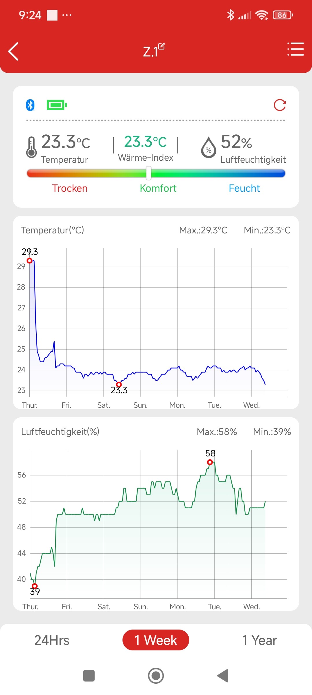 hier die klimadaten aus dem zelt 1 beim trocknen :