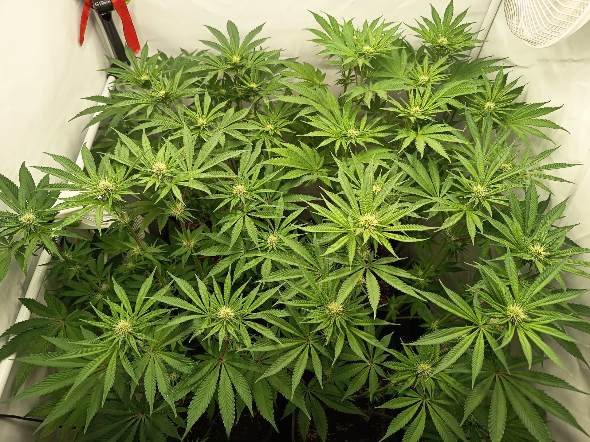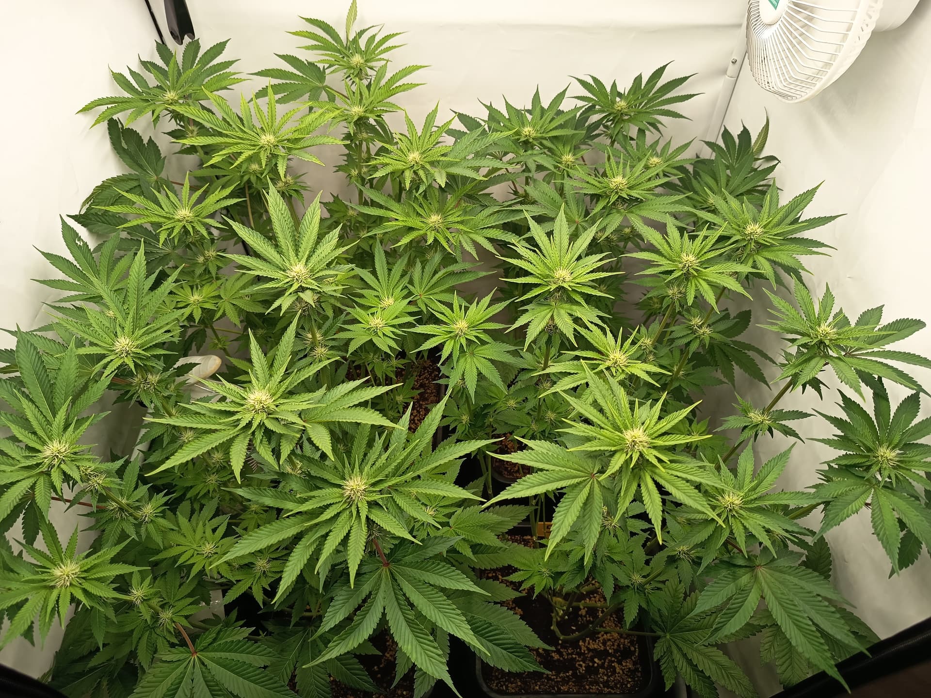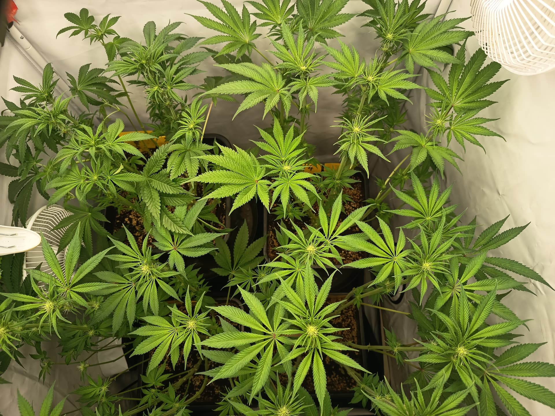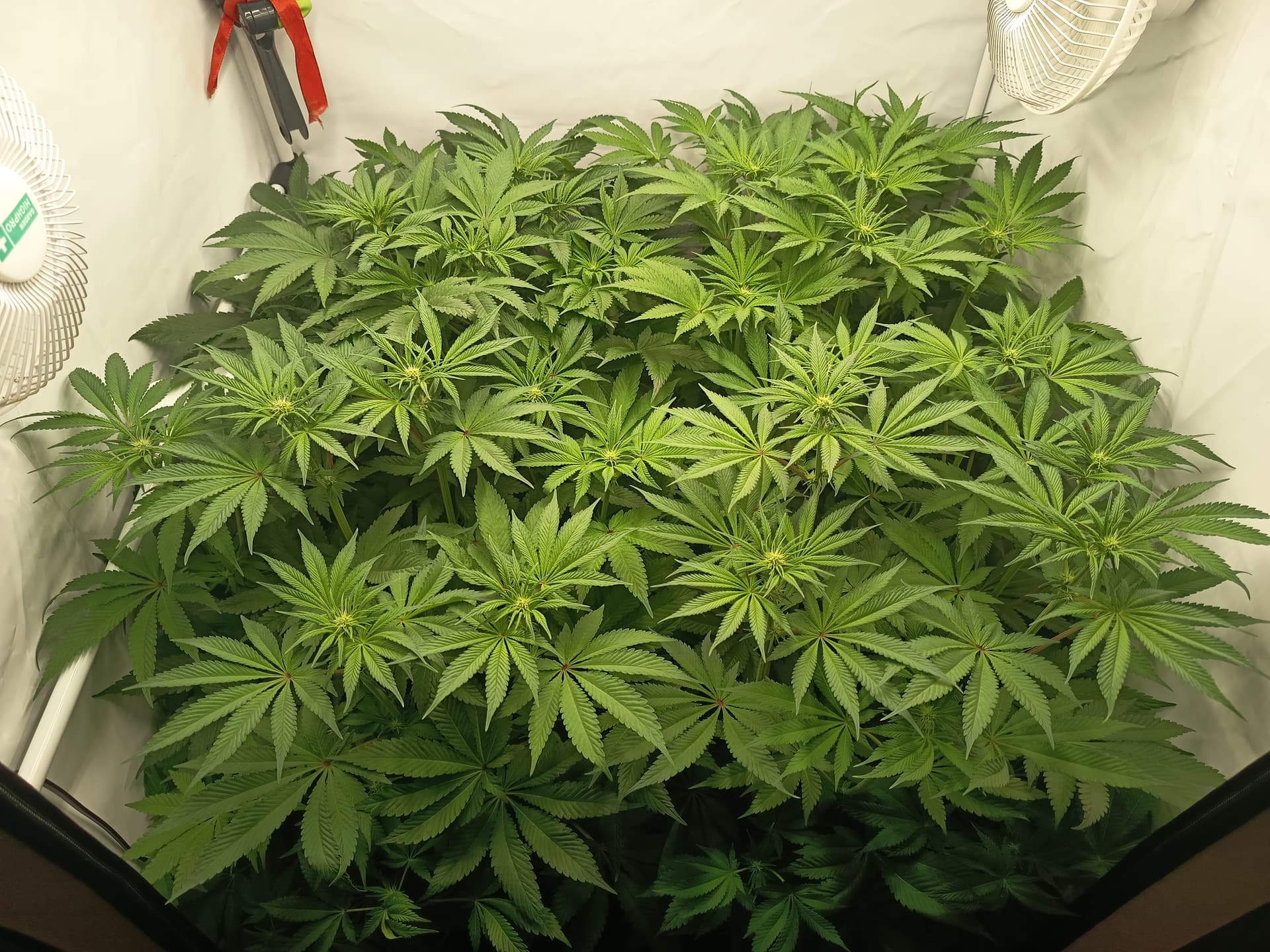 Hi, musste mal schnell gucken… erst war ich total erschrocken… hab gedacht wieder so viel ab!!! Aber von oben das Bild sieht perfekt aus !! Alle Triebe luschern an grossen fan blättern vorbei!! Wird berstimmt mega!!!:)