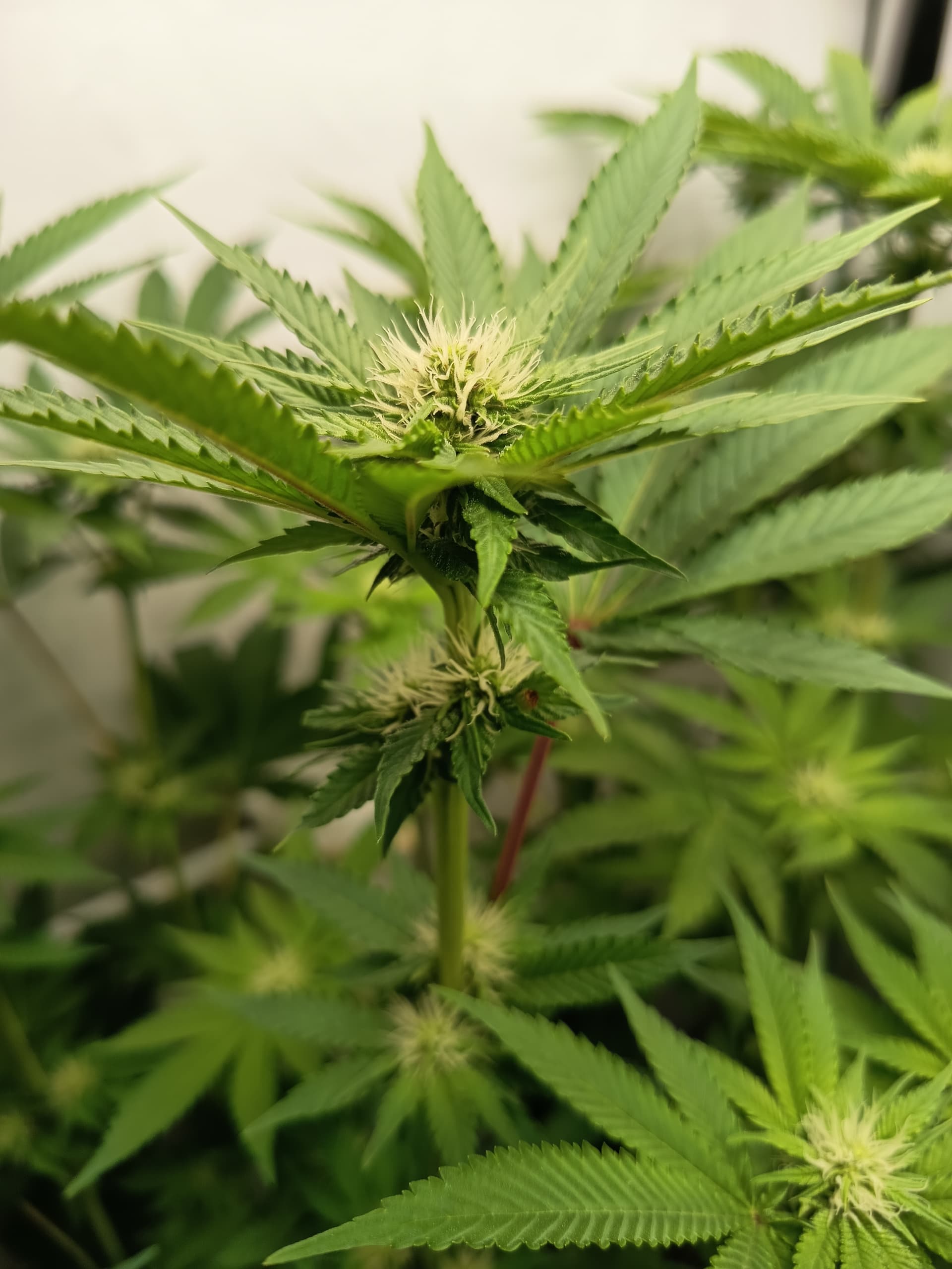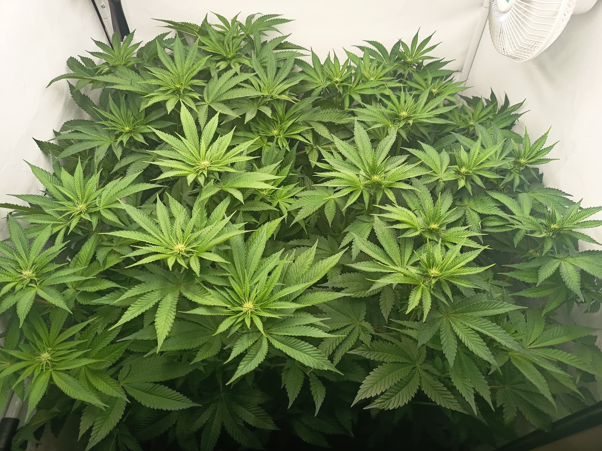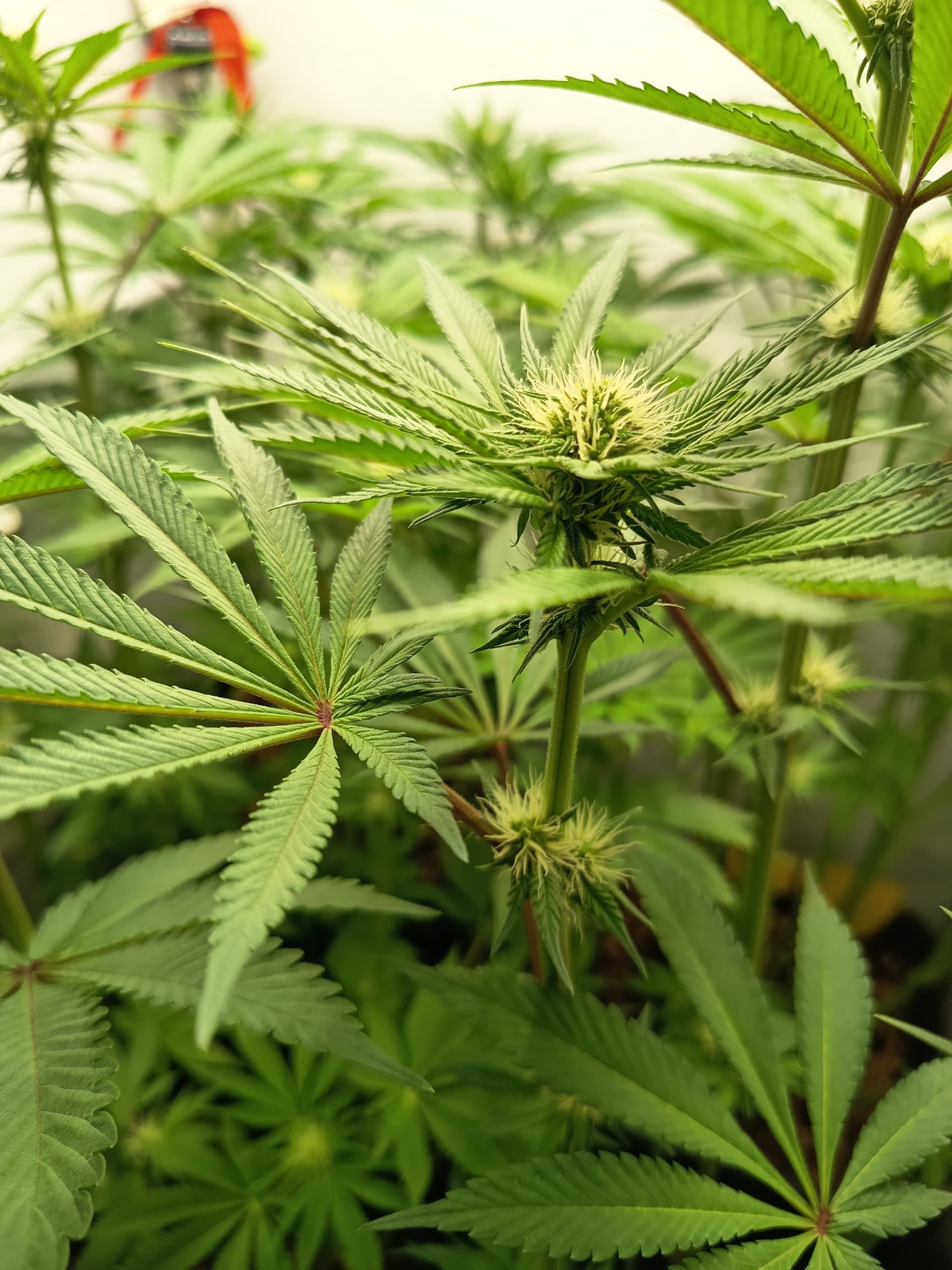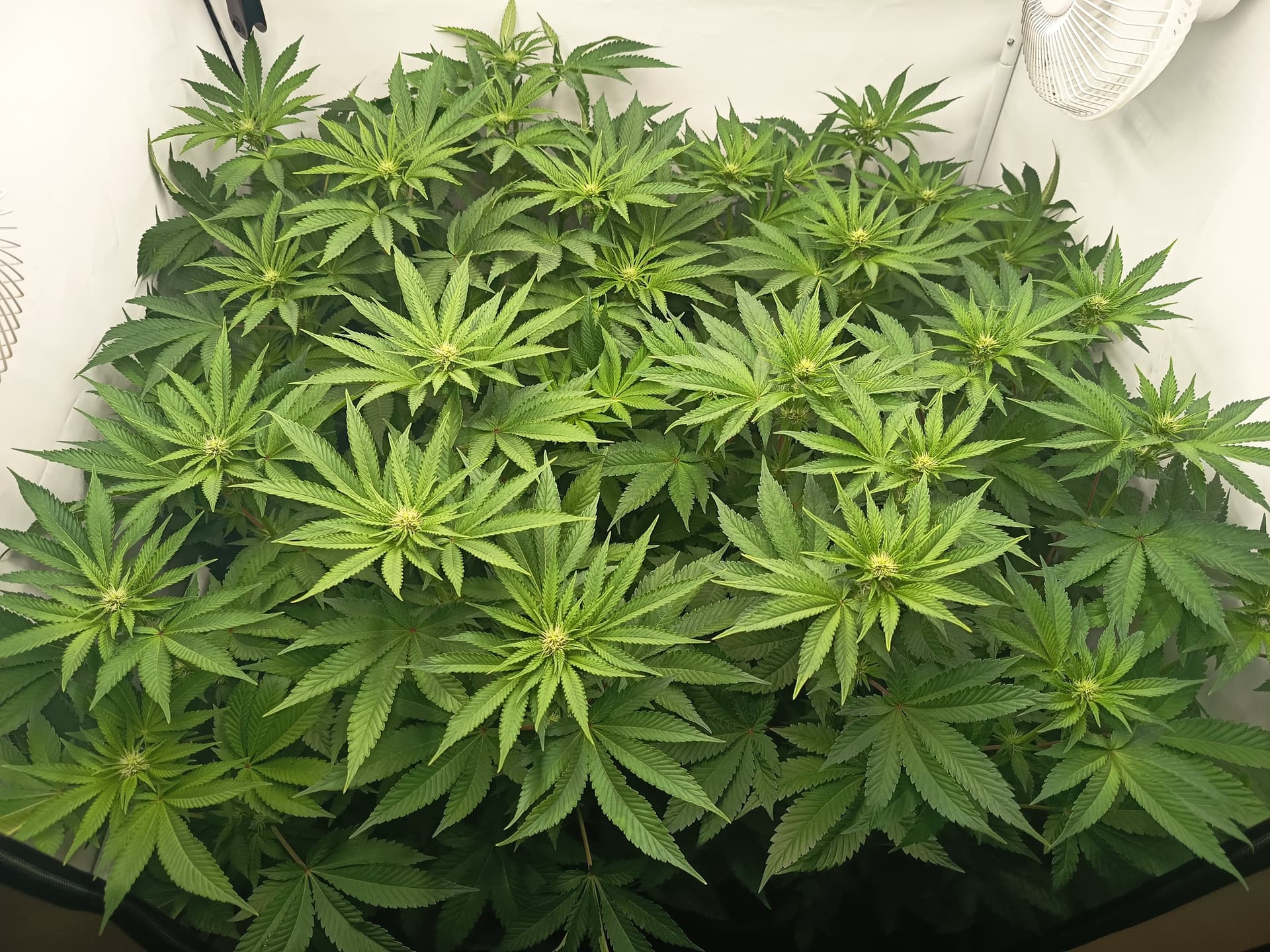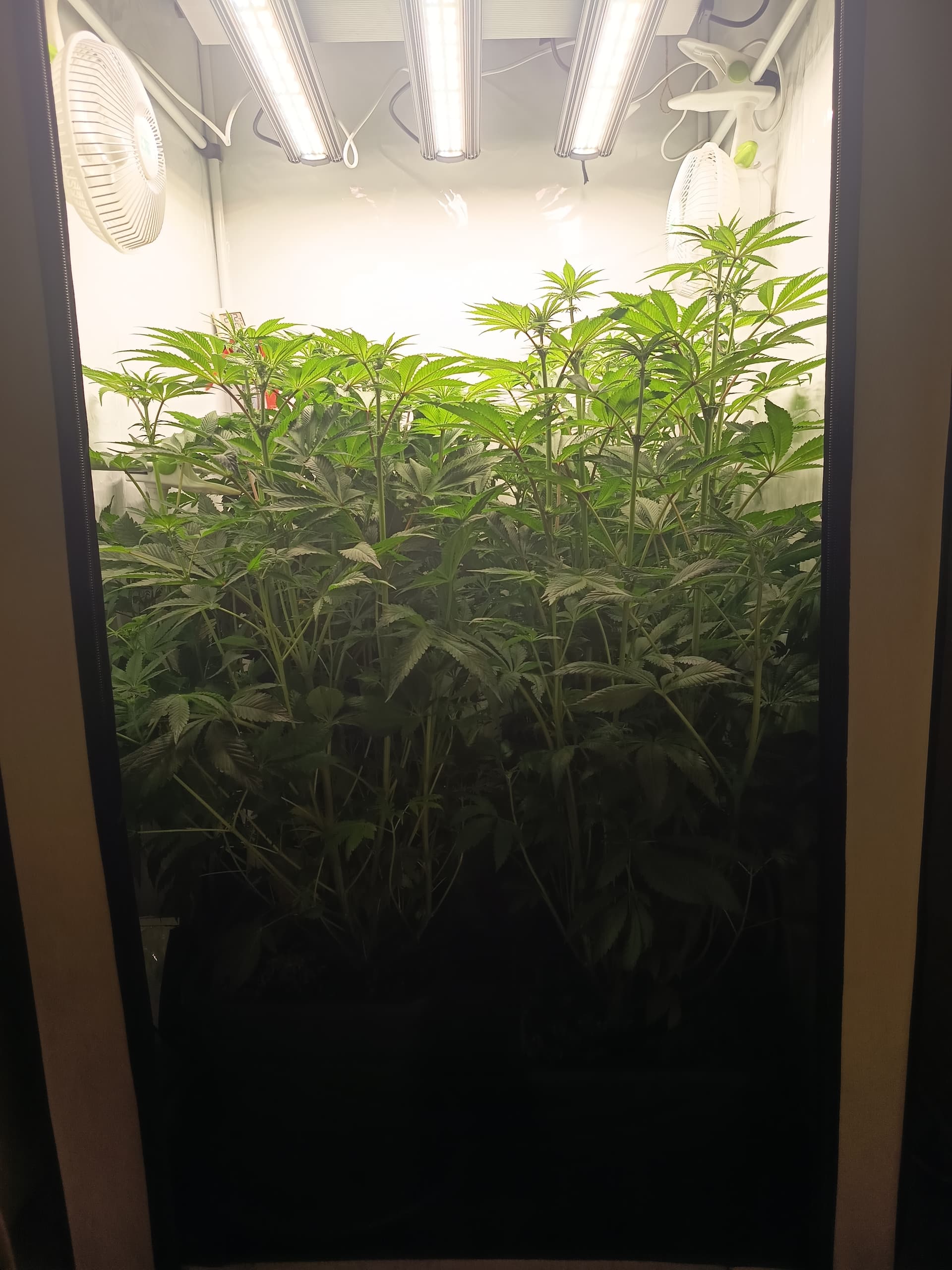 Hi, musste mal schnell gucken… erst war ich total erschrocken… hab gedacht wieder so viel ab!!! Aber von oben das Bild sieht perfekt aus !! Alle Triebe luschern an grossen fan blättern vorbei!! Wird berstimmt mega!!!:)