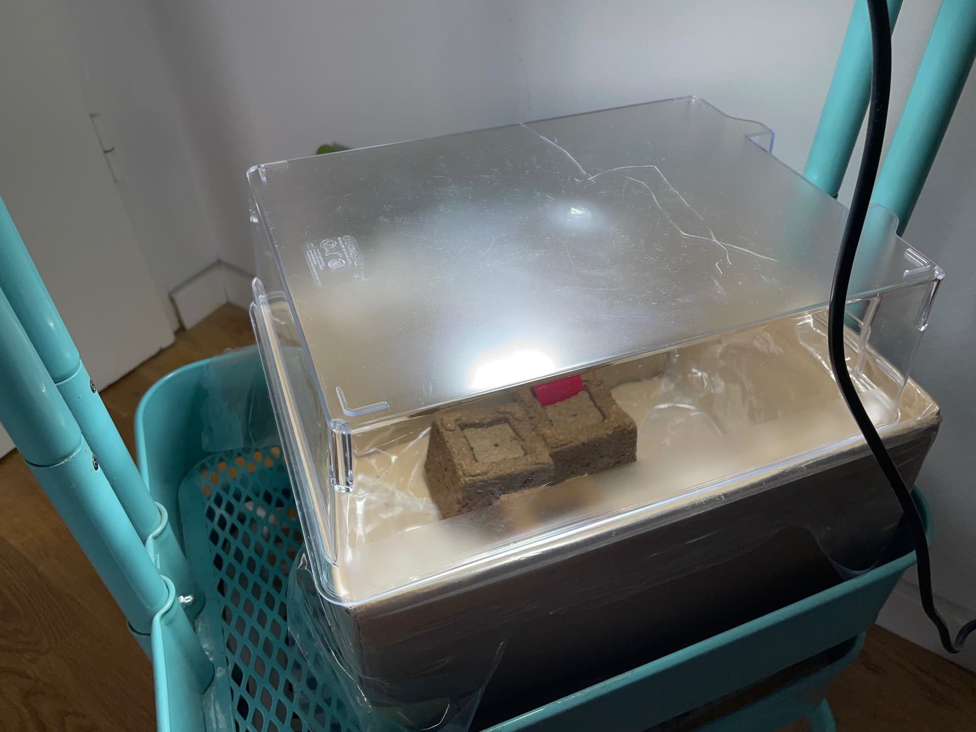 Da die Afghan Kush sich garnicht bewegt, habe ich gestern nochmal einen Ersatzsamen nass gemacht. Diesmal teste ich die Wattepadmethode.