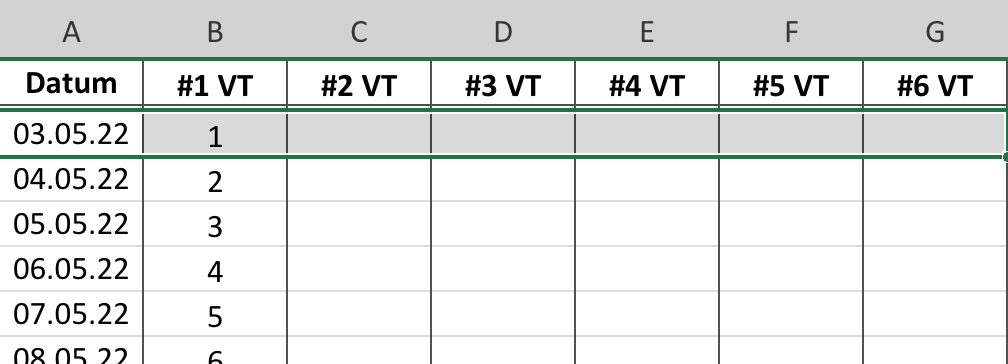 Viel passiert ist nicht - ich warte weiter auf ein Lebenszeichen der Afghan Kush. Derweil habe ich mal eine Tabelle angelegt, um den richtigen VT zu tracken, sonst wird das bei 4-6 Sorten die alle unterschiedlich aus der Erde gekrochen sind zu unübersichtlich. Gezählt wird einfach durchgehend ab Keimling.