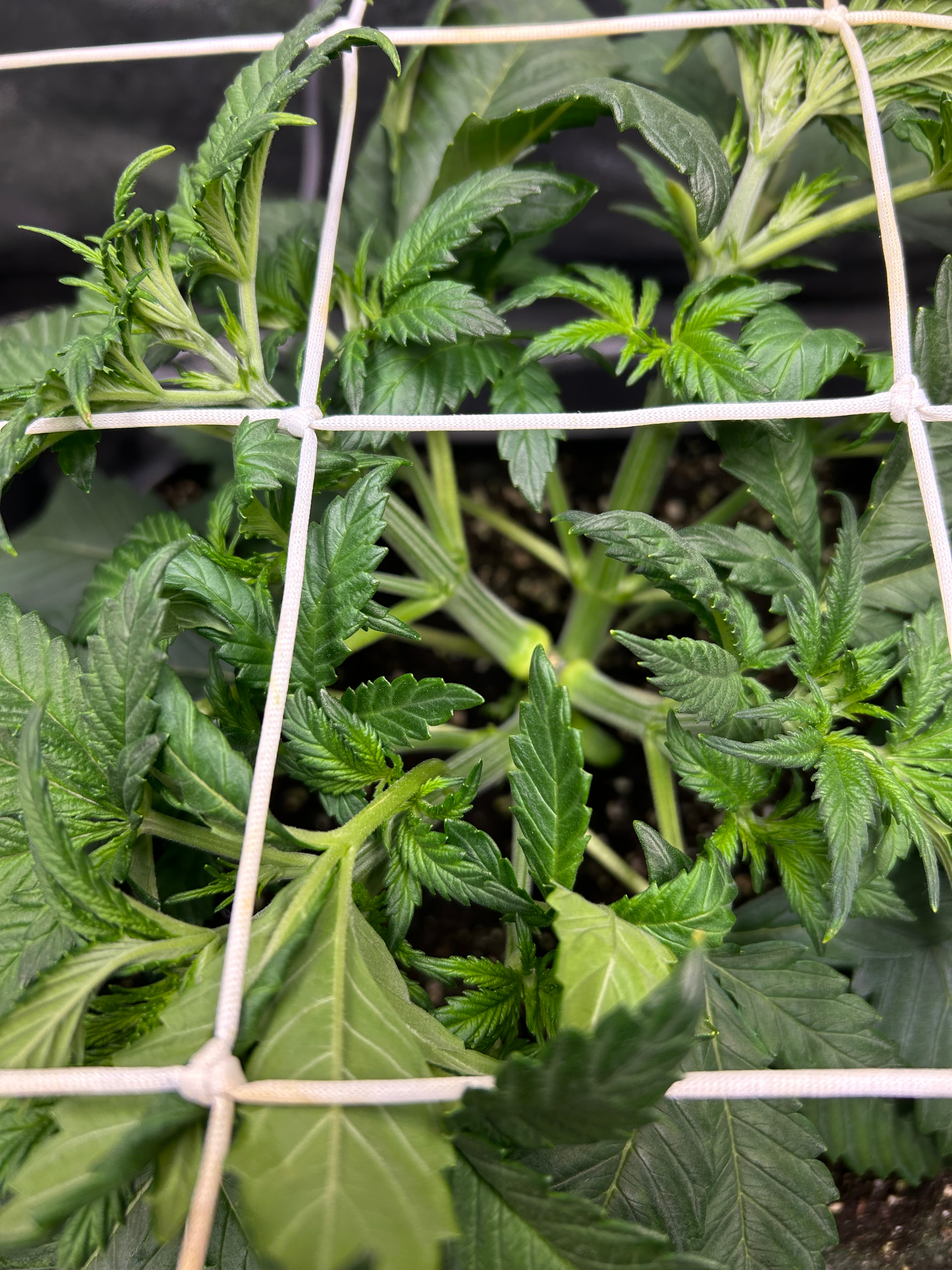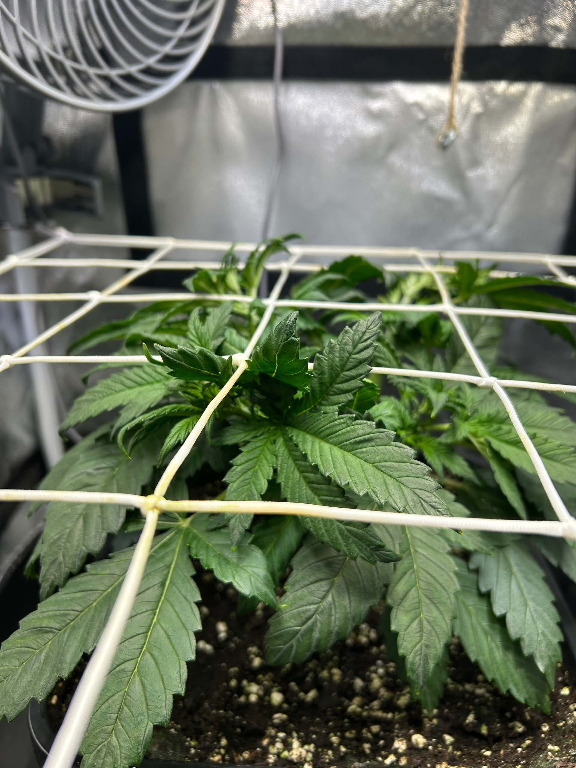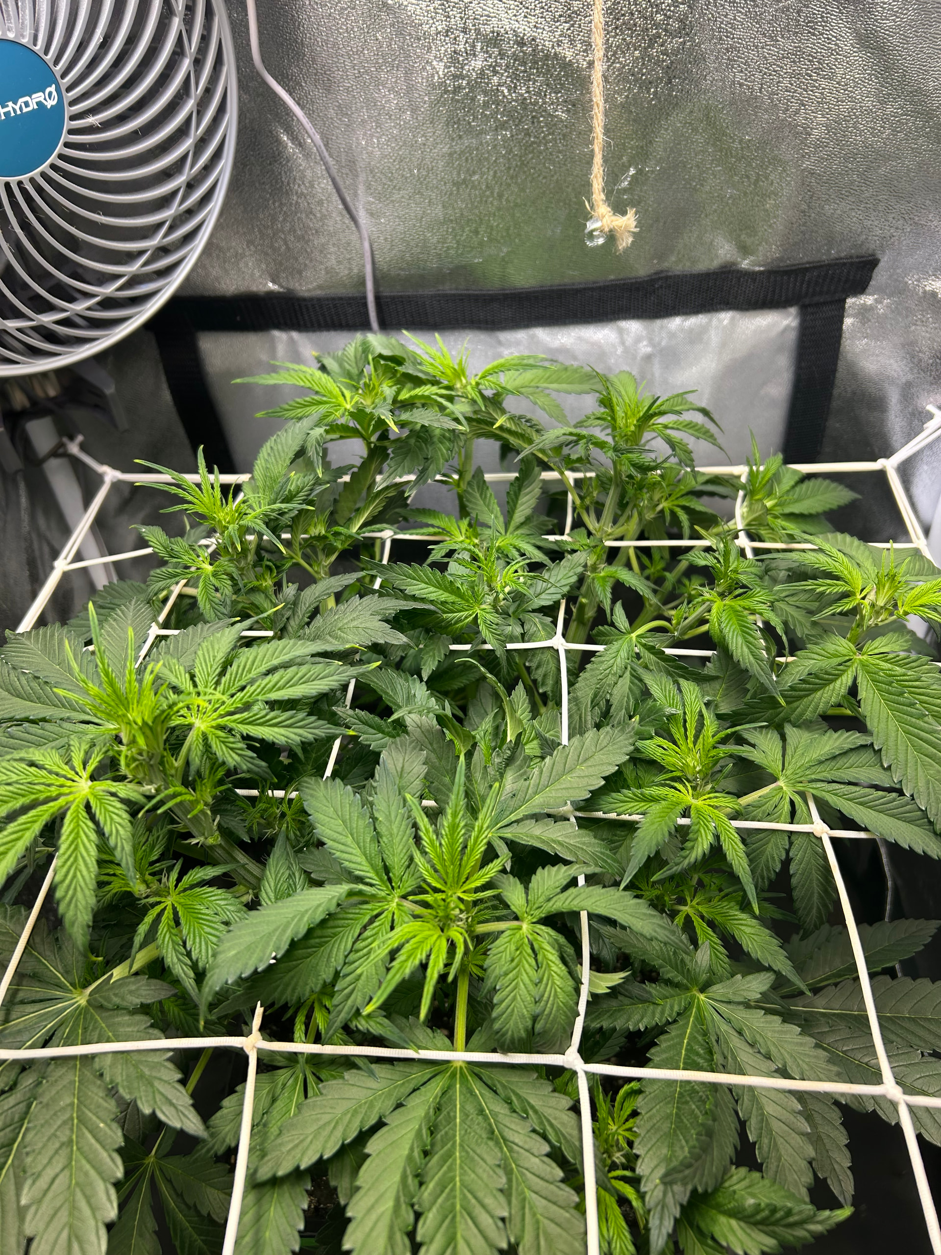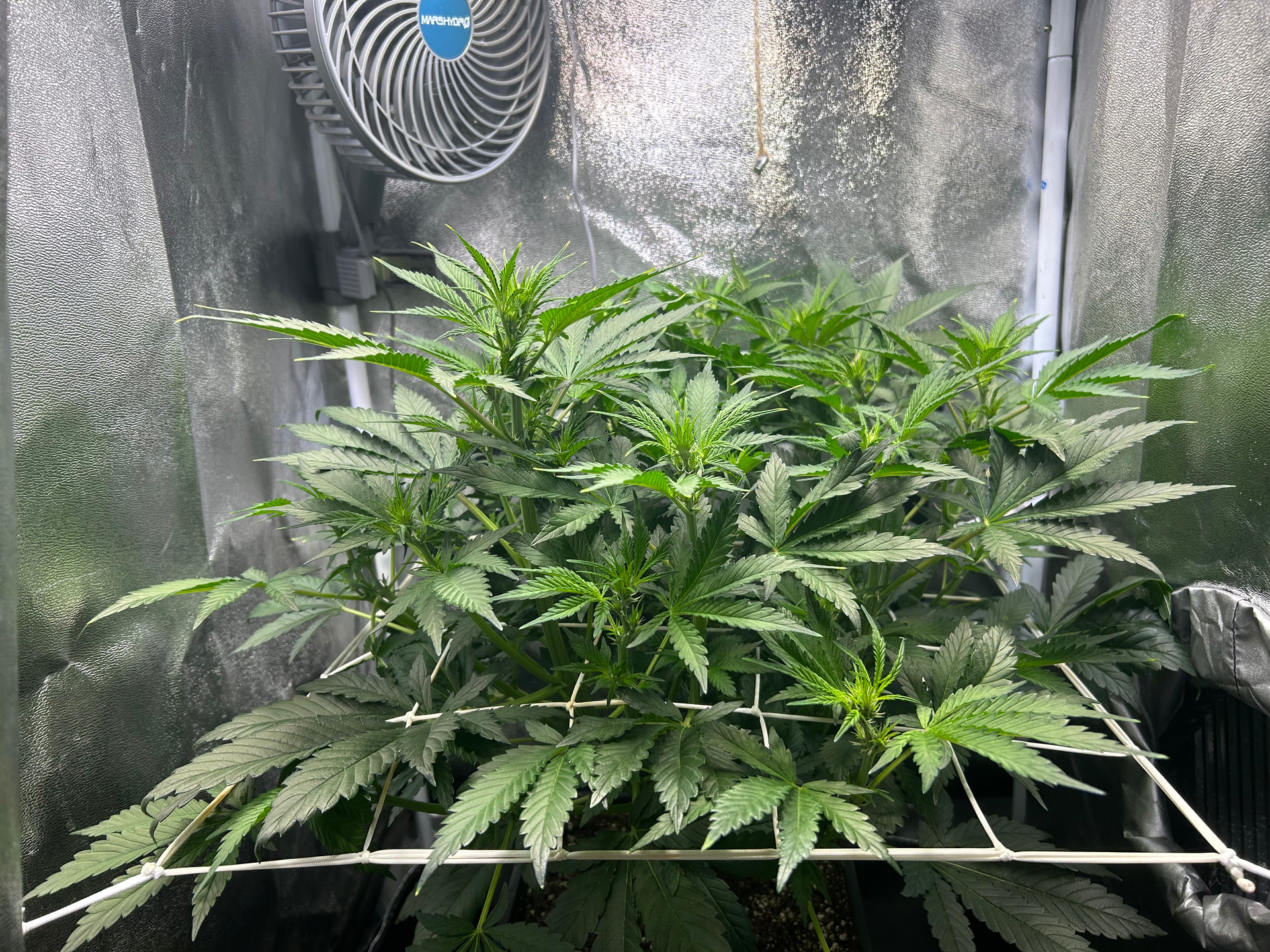 Jetzt wo die Triebe durchs entfernen der Fächerblätter Licht bekommen wird sie auch mehr Triebe besser entwickeln. Schau das du sie so breit wie möglich bekommst. Bis jetzt ist das ja ein entspannter Grow, drücke dir die Daumen das es auch so bleibt