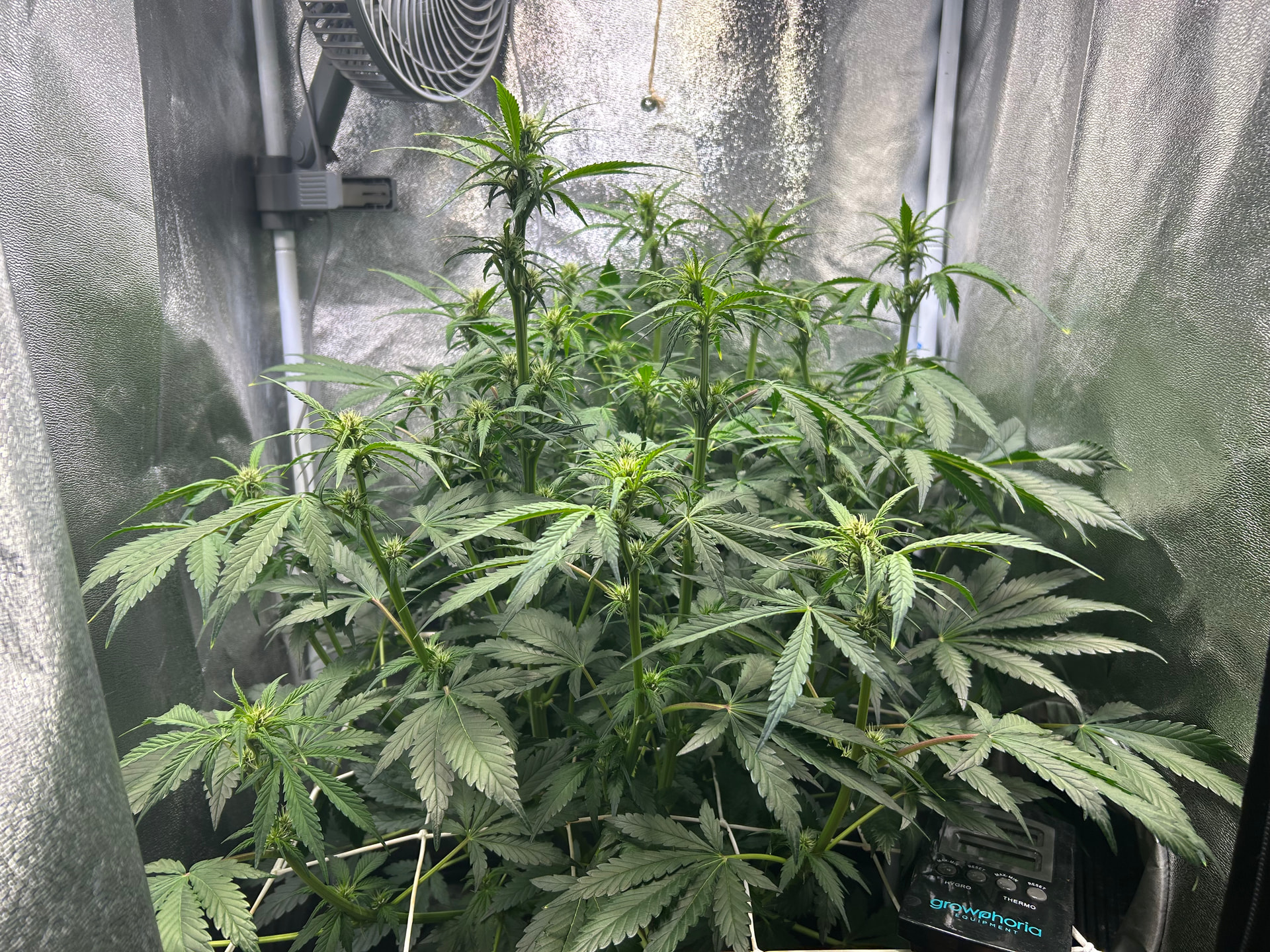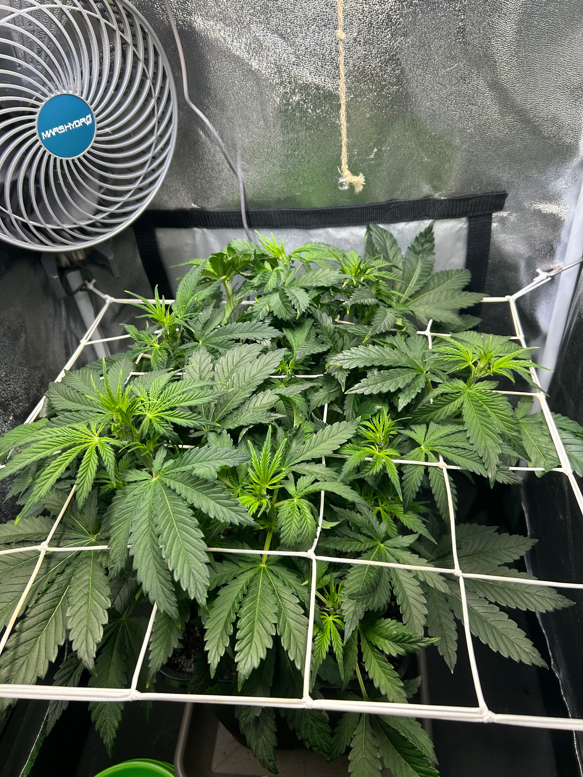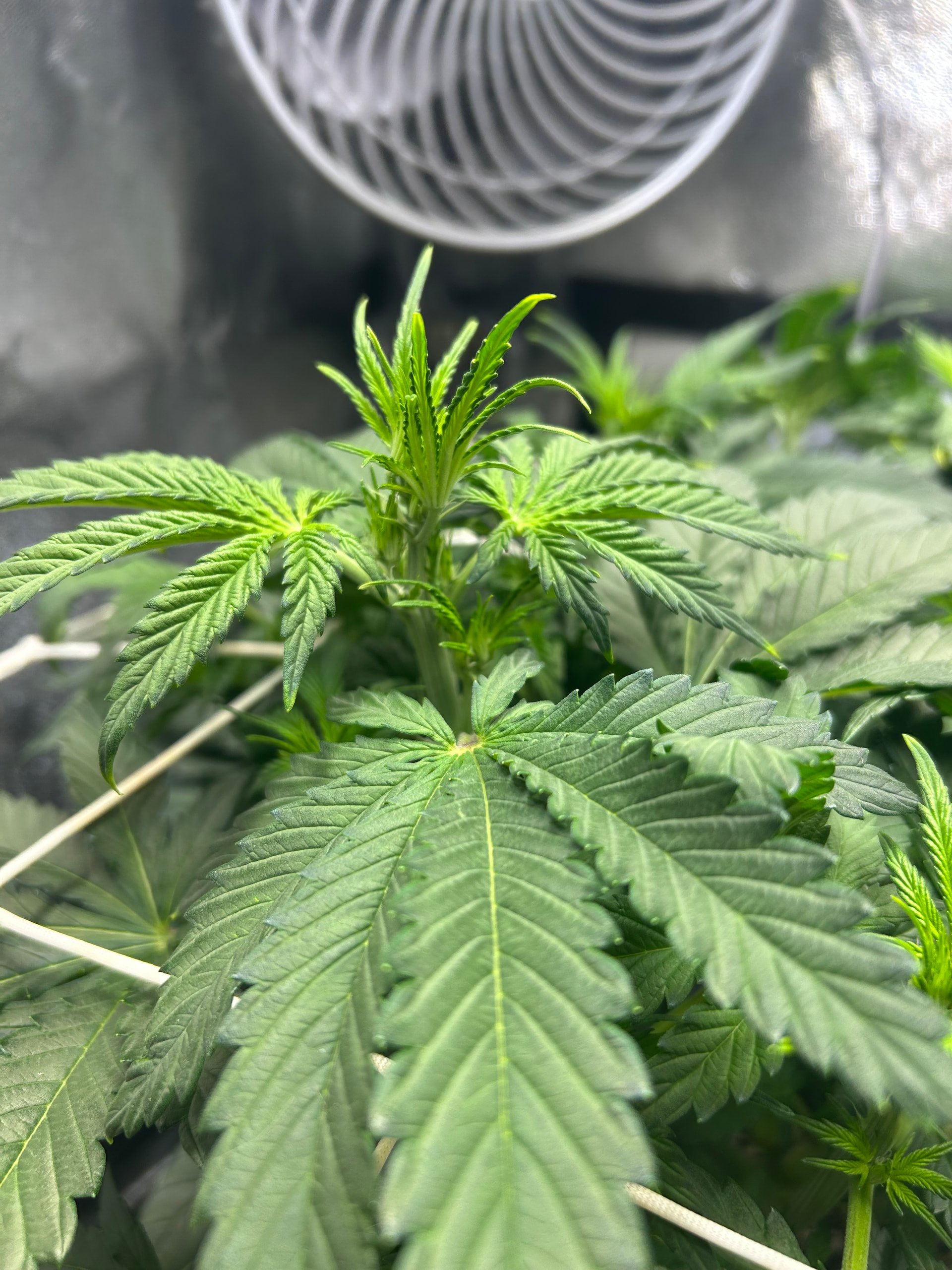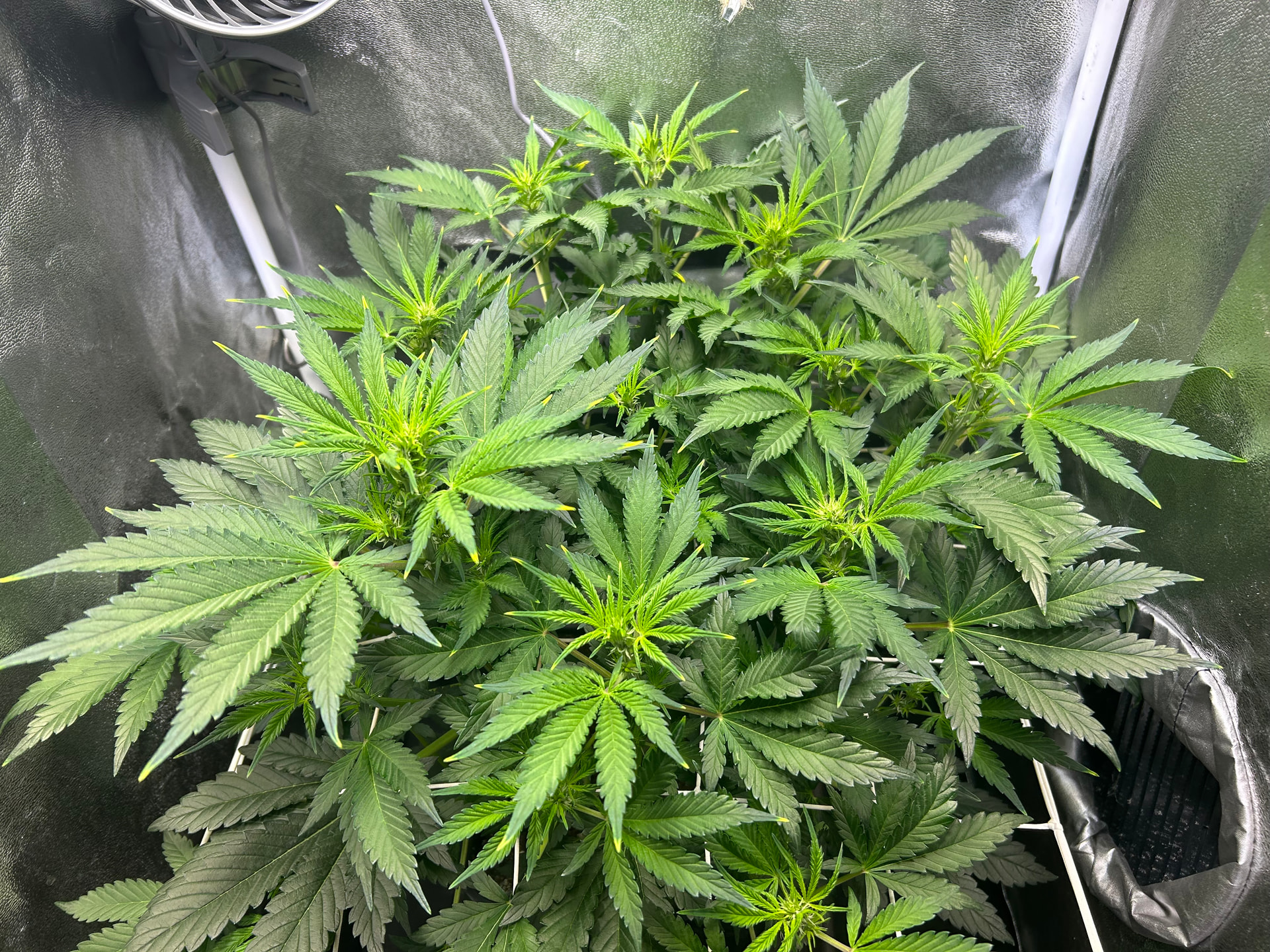Jetzt wo die Triebe durchs entfernen der Fächerblätter Licht bekommen wird sie auch mehr Triebe besser entwickeln. Schau das du sie so breit wie möglich bekommst. Bis jetzt ist das ja ein entspannter Grow, drücke dir die Daumen das es auch so bleibt