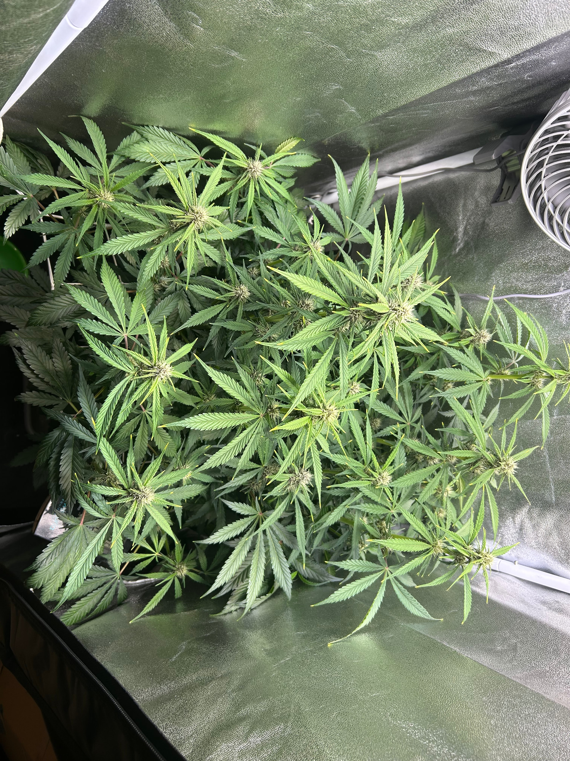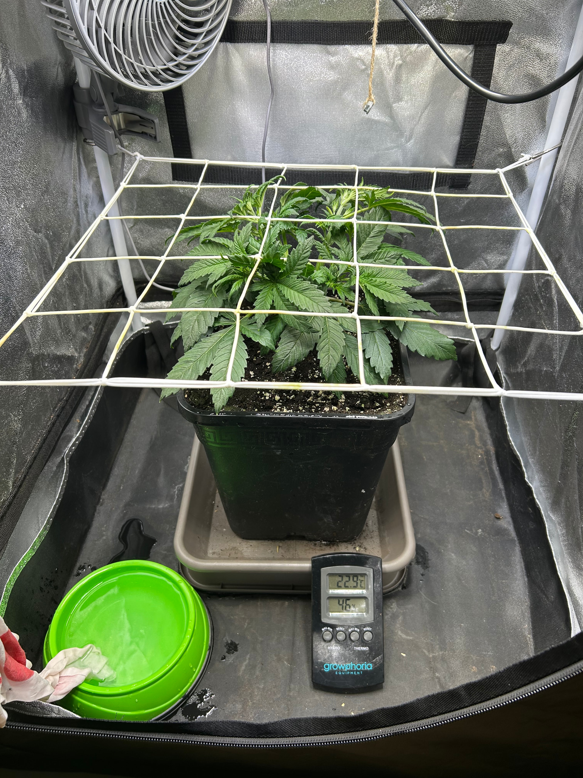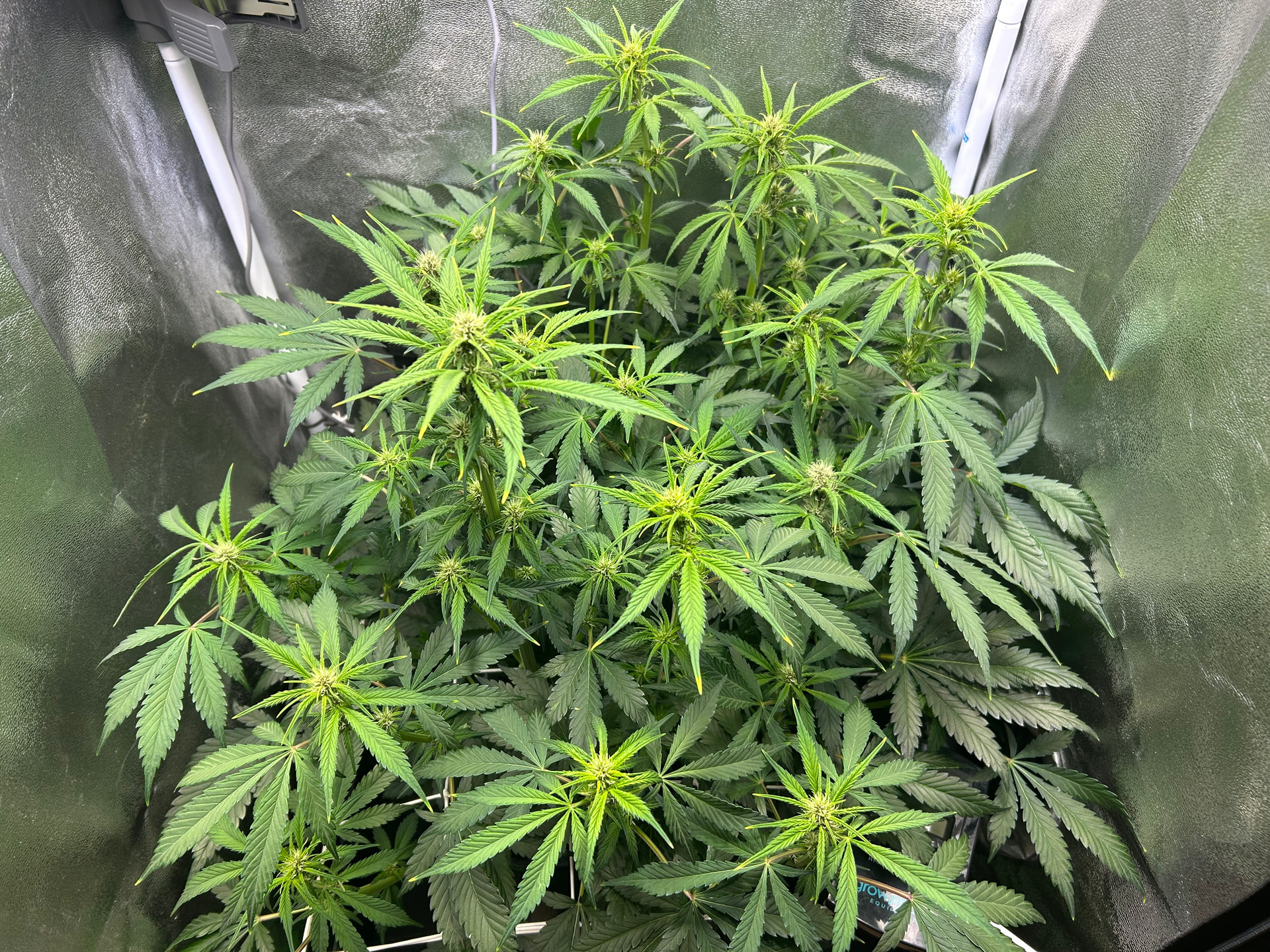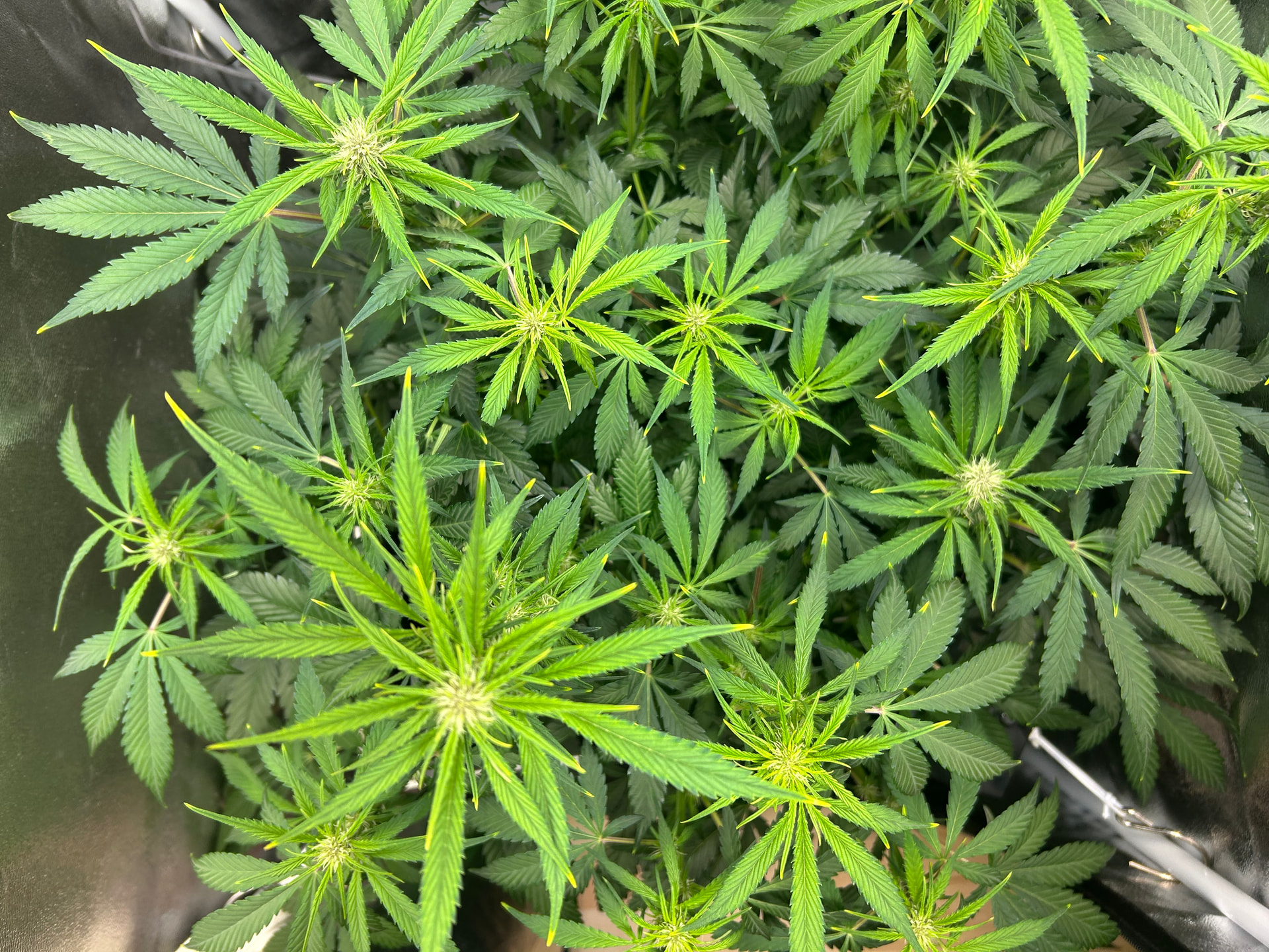 Jetzt wo die Triebe durchs entfernen der Fächerblätter Licht bekommen wird sie auch mehr Triebe besser entwickeln. Schau das du sie so breit wie möglich bekommst. Bis jetzt ist das ja ein entspannter Grow, drücke dir die Daumen das es auch so bleibt