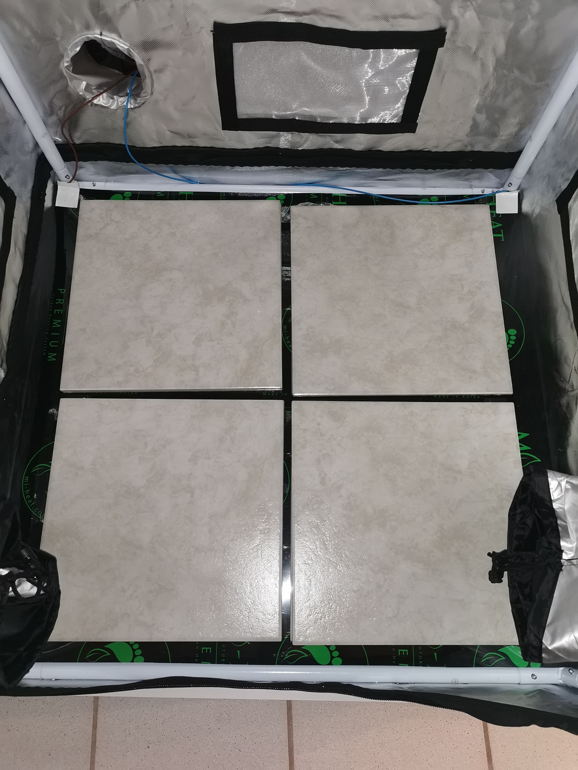 Evtl. muss ich noch ein paar Terassenfliesen, 3 cm dick, reinmachen um die Wärme besser zu puffern, mal sehen.