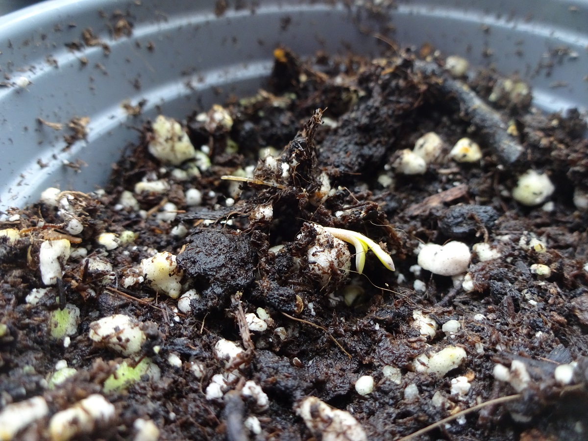 Auch bei Keimling Nummer 4 passiert nichts mehr! Die Blätter fehlen, er geht nicht ein und wächst aber auch nicht.