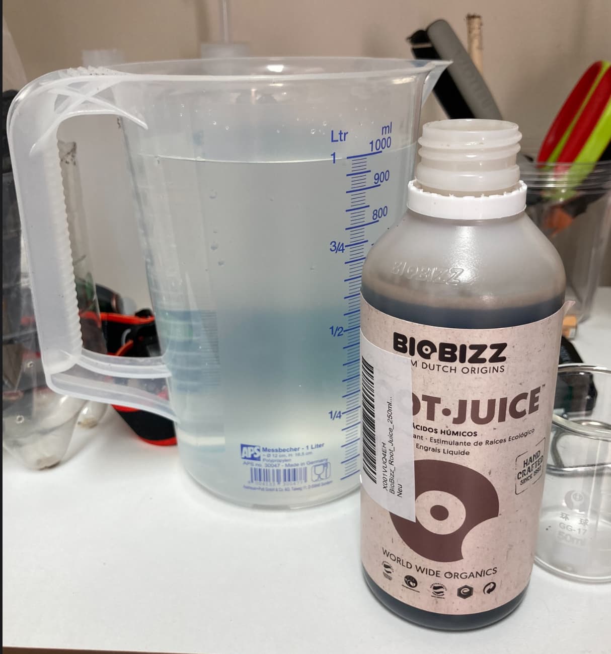 Weil den BioBizz RootJuice mach ich immer frisch vor dem gießen rein. Da hab ich beim ersten Antesten schon gesehen das sich das schnell absetzt..