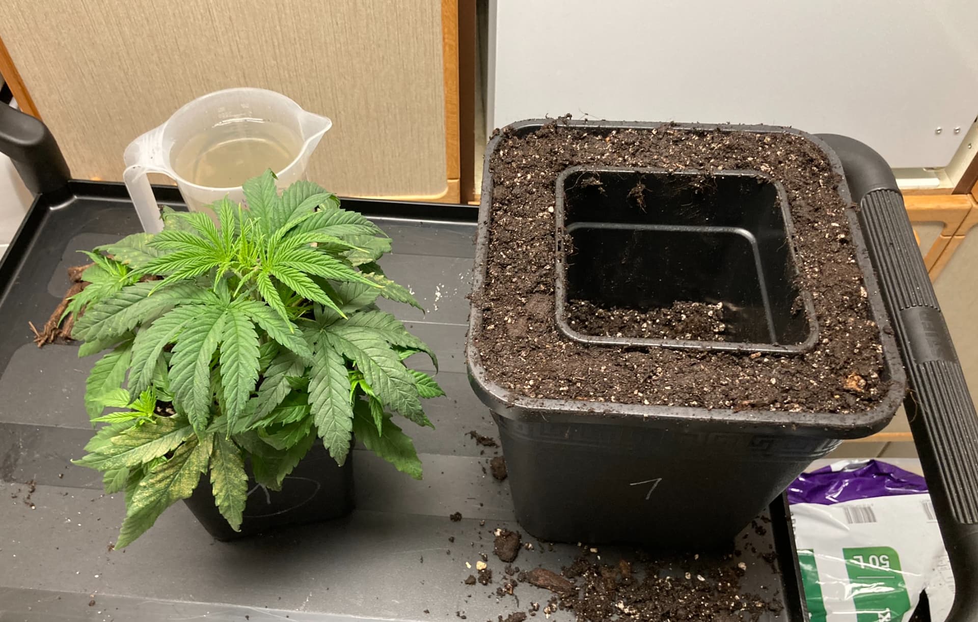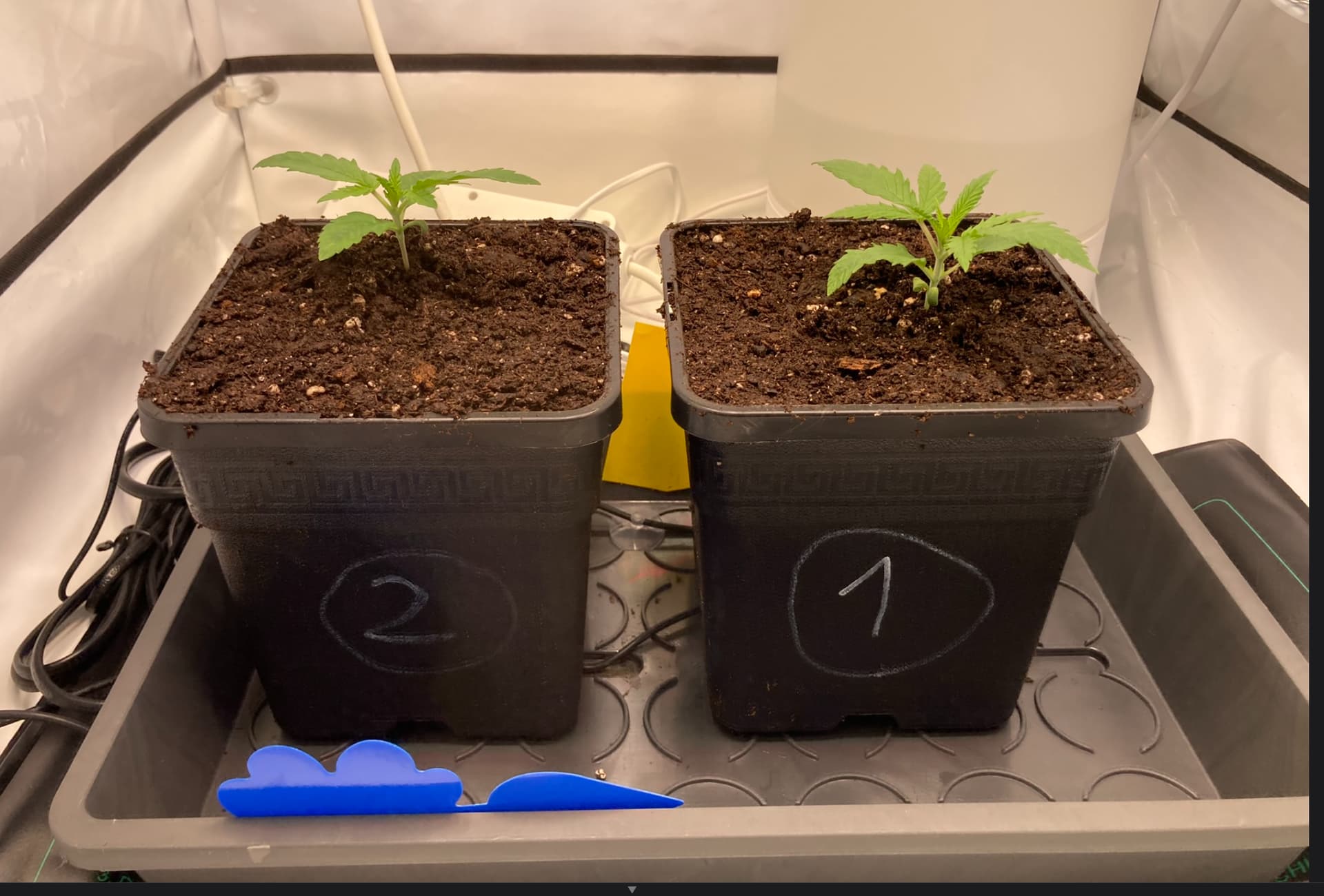 Heute morgen zum Start des Lichtcycles habe ich beide Pflanen in die 9l Endtöpfe umgepflanzt.