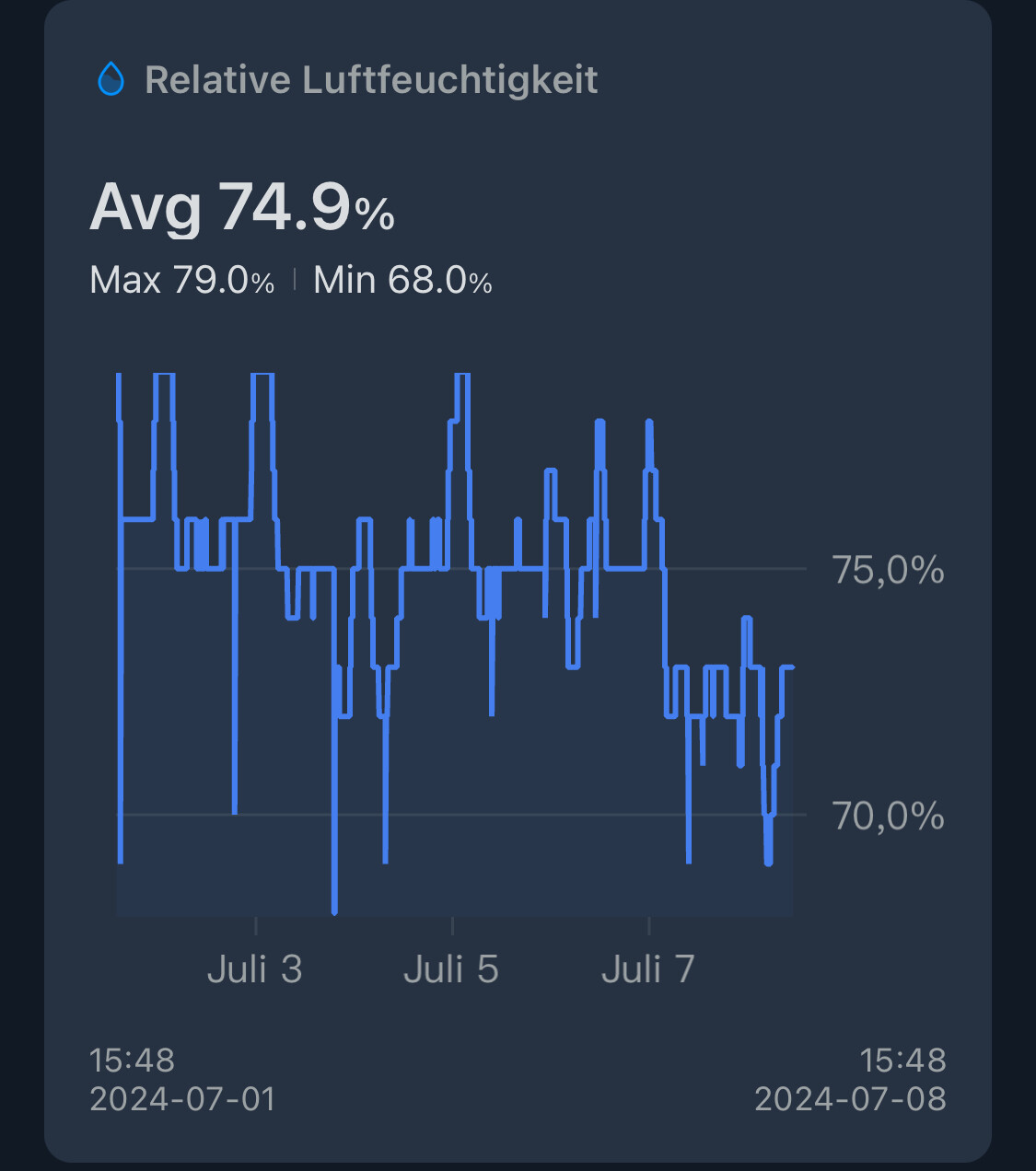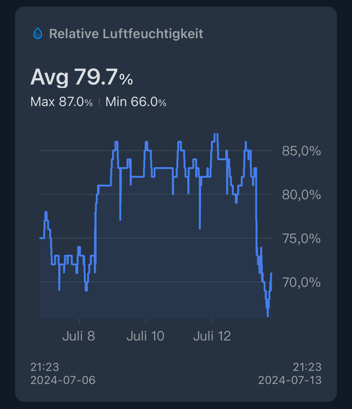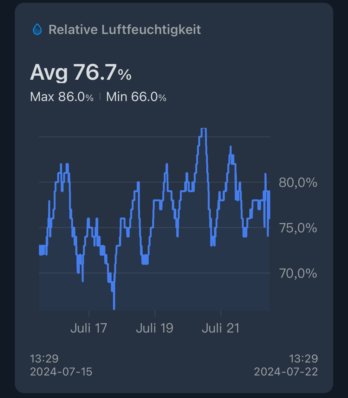 Der VPD Wert war die letzten Tage durch die hohe Feuchtigkeit recht niedrig, heute ist es mal wieder etwas hoch gegangen.