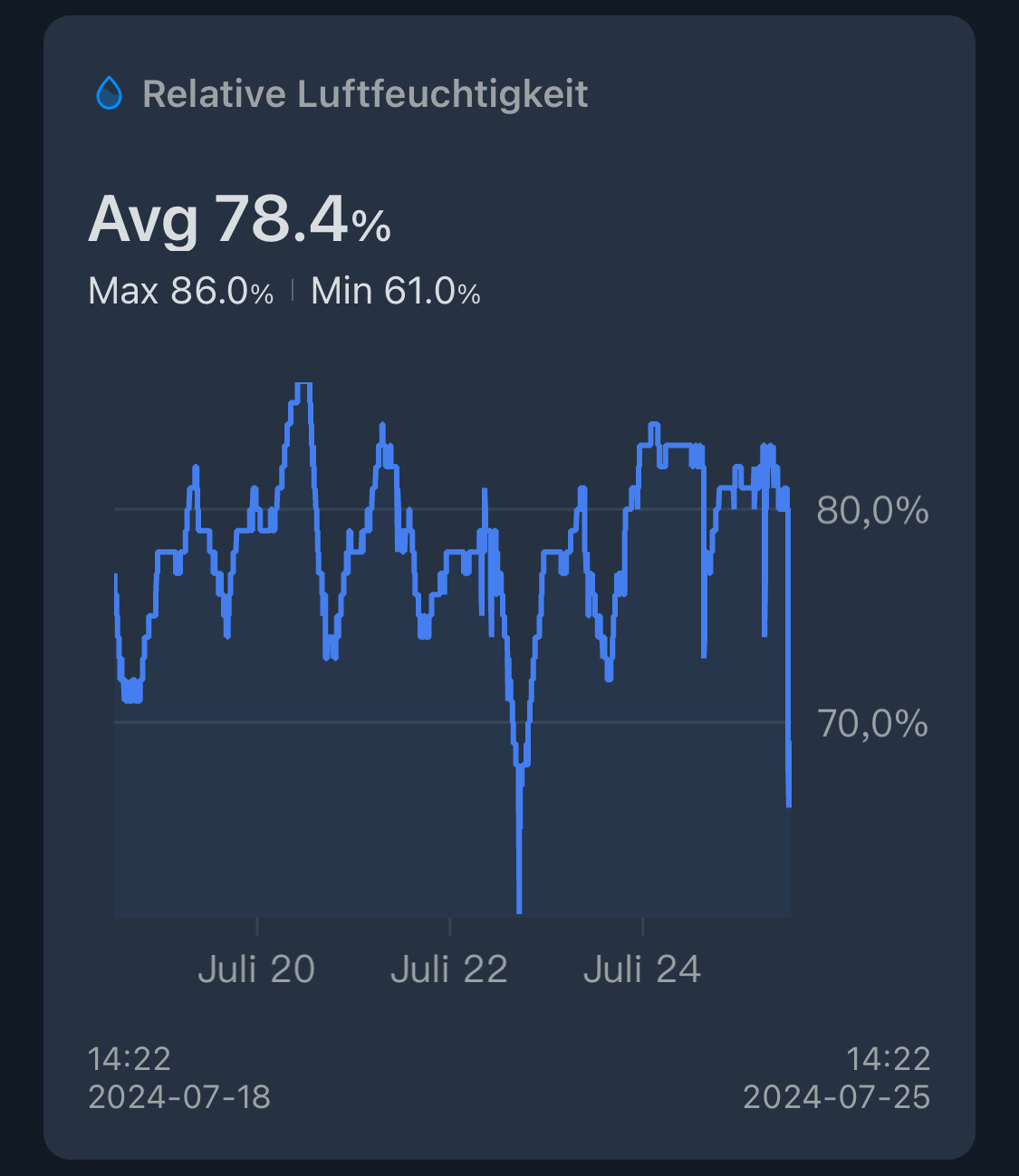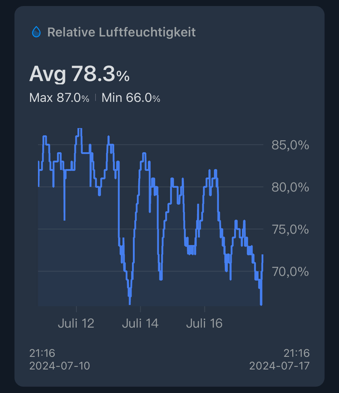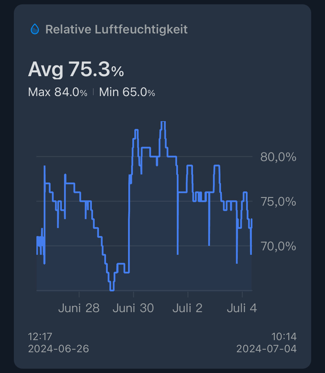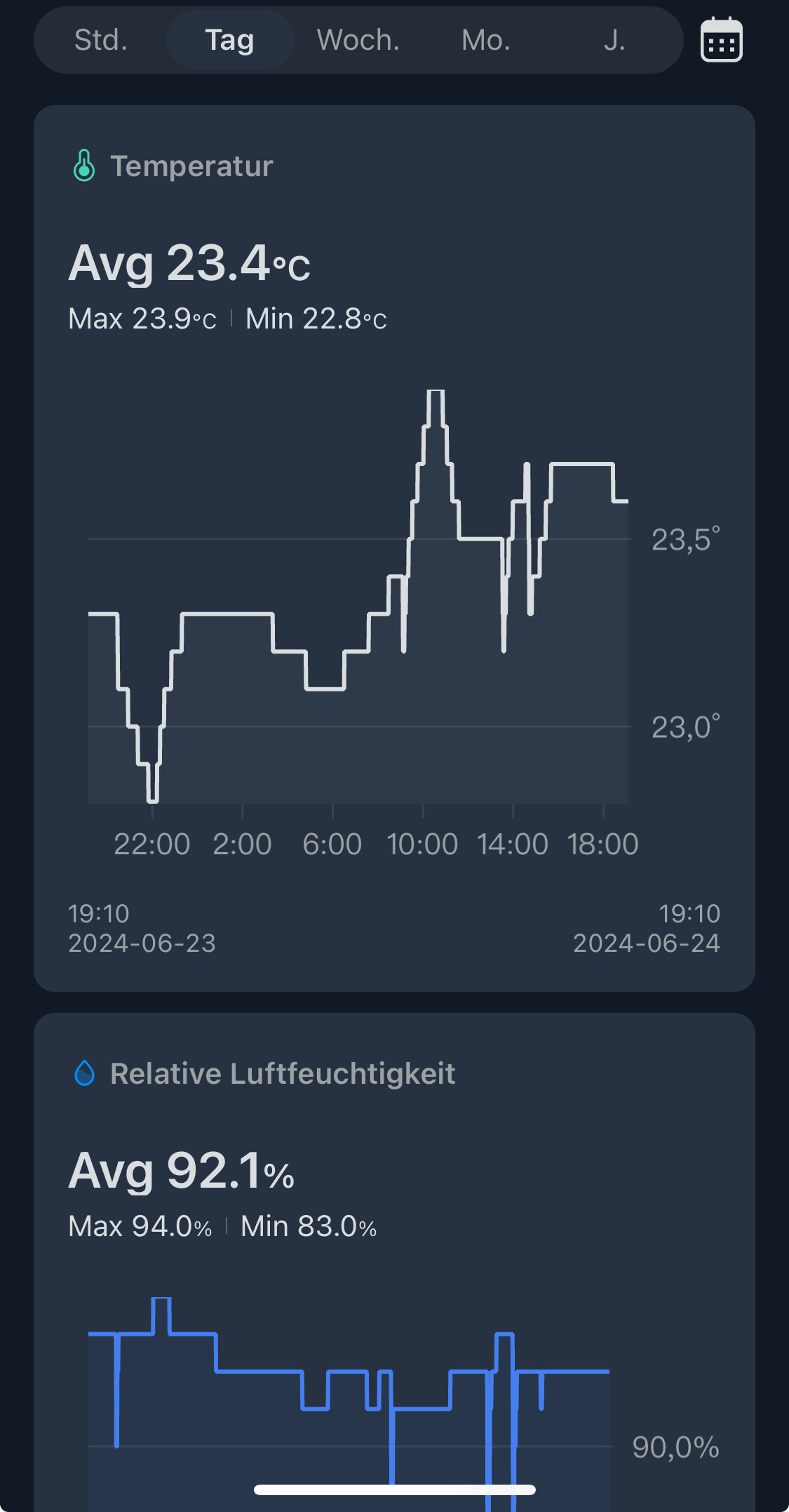 Der VPD Wert war die letzten Tage durch die hohe Feuchtigkeit recht niedrig, heute ist es mal wieder etwas hoch gegangen.