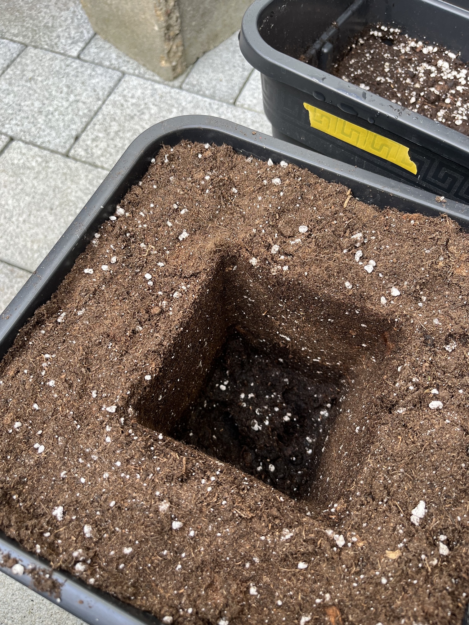 So kommen sie bei mir dann mit Pinzette in den Topf. Spitze nach oben war wie immer ein Glücksspiel, denke aber bei 1,5 cm Tiefe ist das auch zweitrangig…