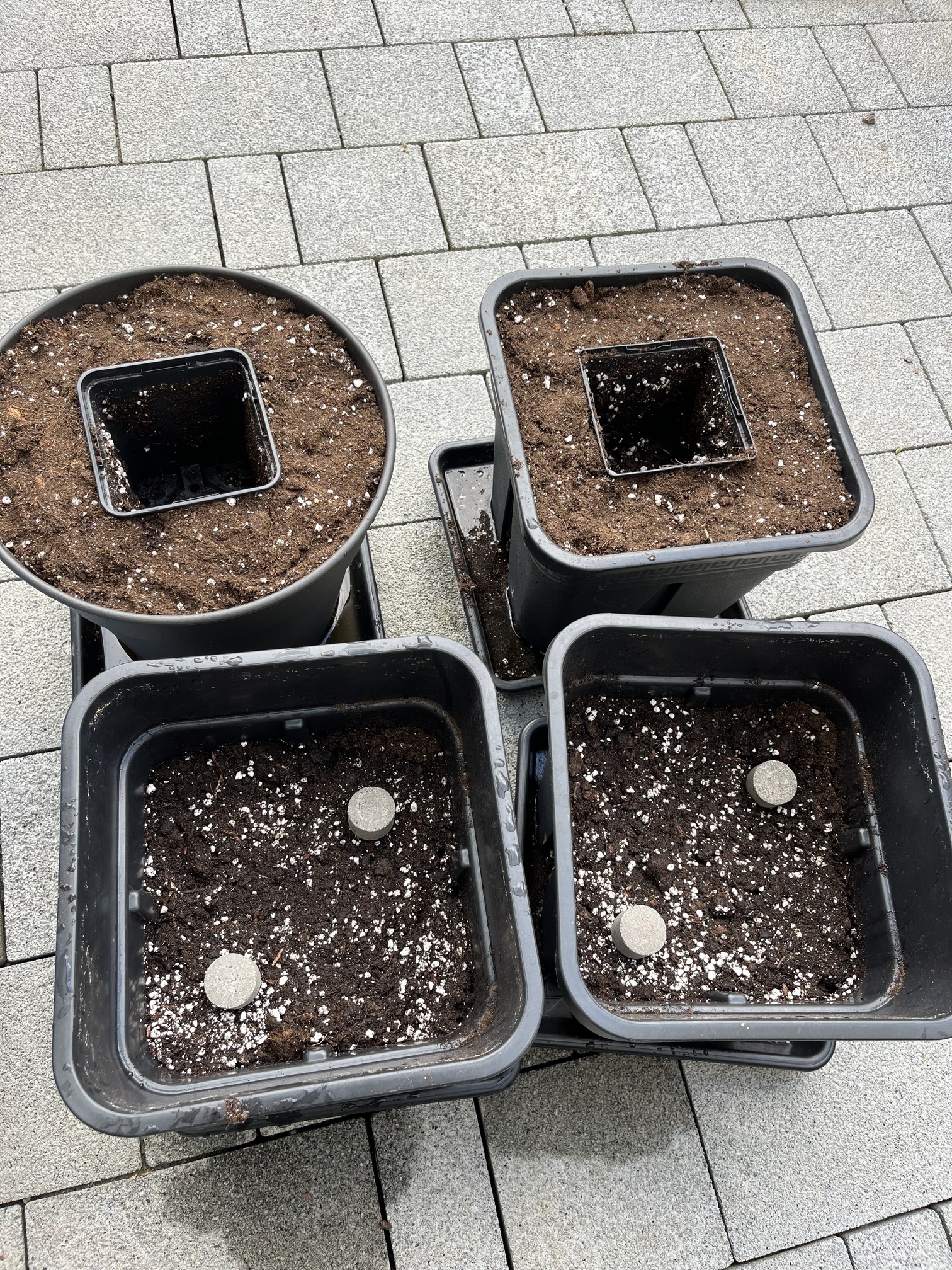Heute wurden alle mit 2 l Wasser und Nematoden gegossen. Es gab leichten Drain und EIGENTLICH hätte ich nach 1/3 Regel auch noch zwei Tage warten können ABER da die Wurzeln noch nicht so weit ausgebildet sind wollte ich den Damen eine Wassernot ersparen und mein Bodenleben aktiv halten.