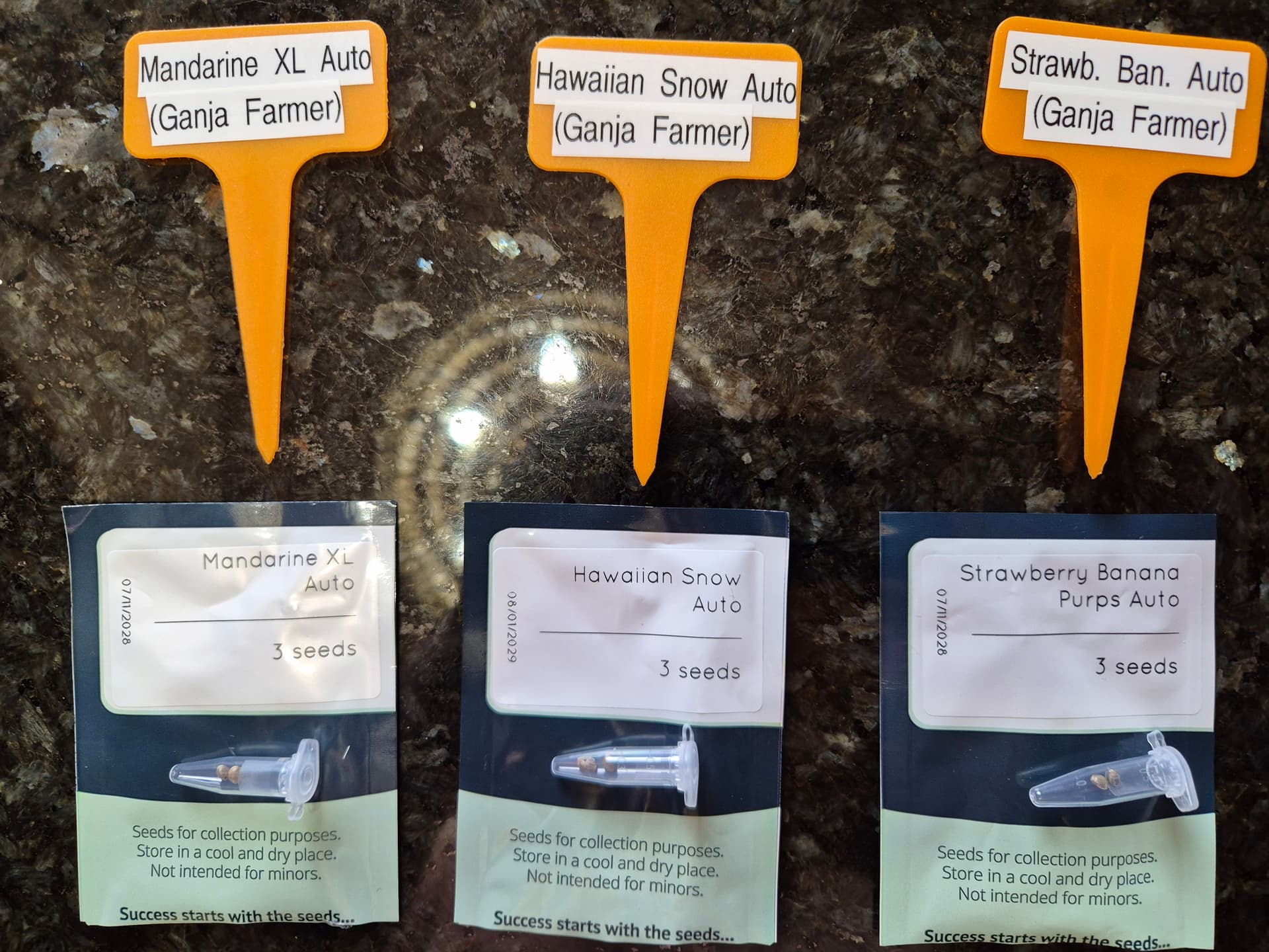 Bei den ersten beiden Seeds handelt es sich um Strains, die ich bereits kürzlich auf dem Balkon angebaut hatte und die mir dort teilweise weggeschimmelt waren. Der dritte Strain verspricht fruchtige Aromen, Purple und zur Abwechslung mal eine Indica-Dominanz: