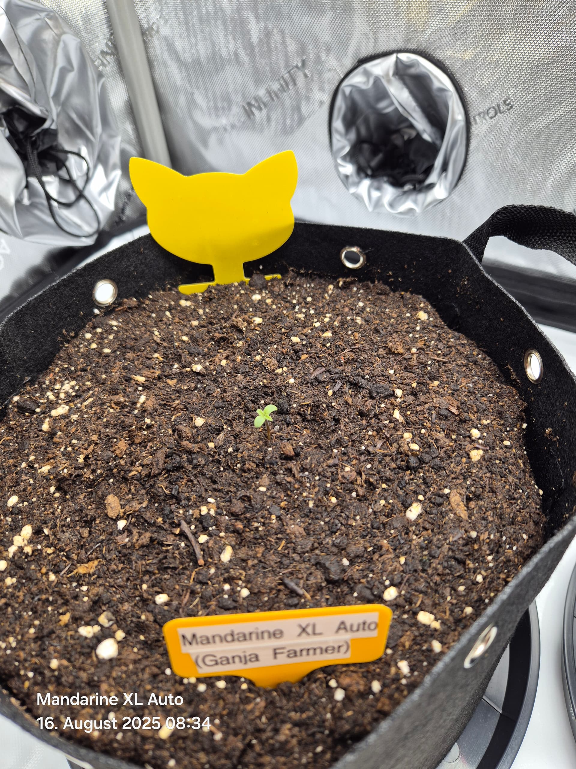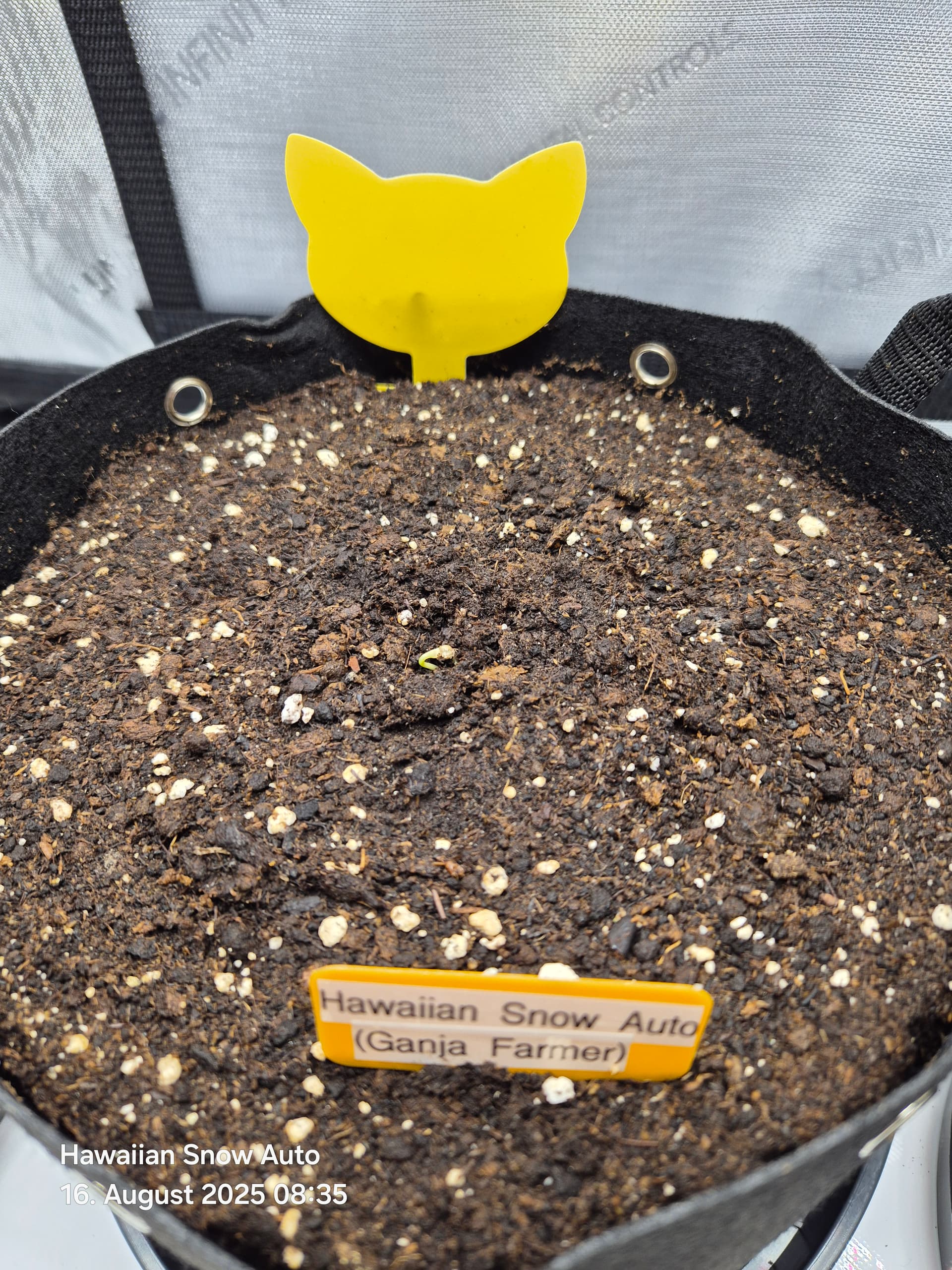 Growmedium: „Compo Grow Organic Light-Mix“, der ist für einen „Light-Mix“ recht stark vorgedüngt und sollte für 4 Wochen ohne Düngung ausreichen. Diesmal wieder ohne Drainage, in Stofftöpfen von ca. 11 l mit Untersetzern