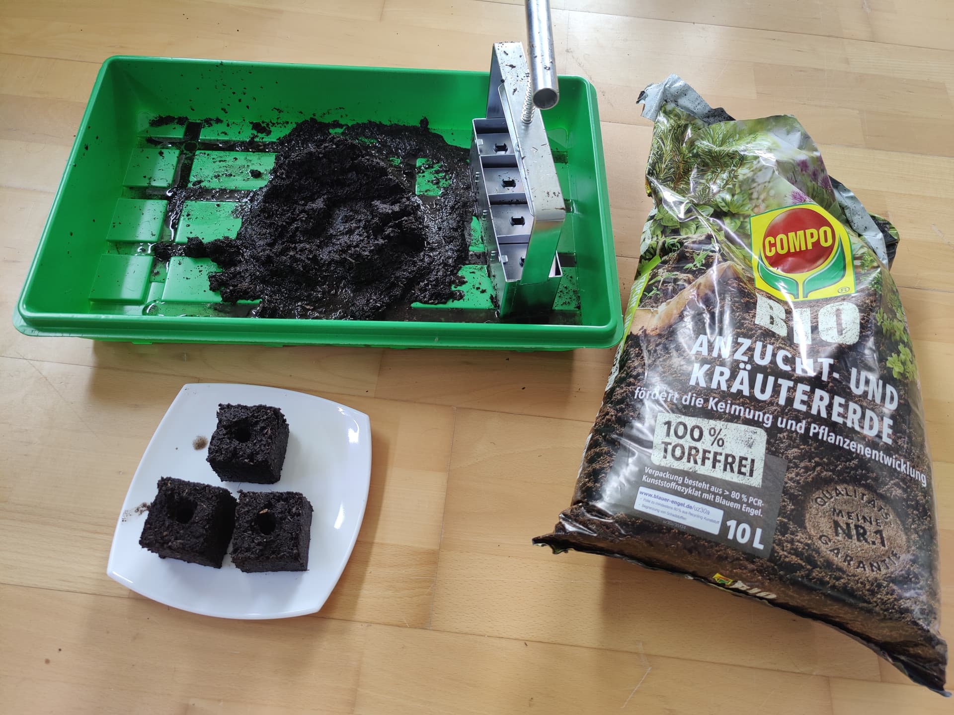 16.07.2024 - Einpflanzen der Samen in Anzuchterdeblöcke