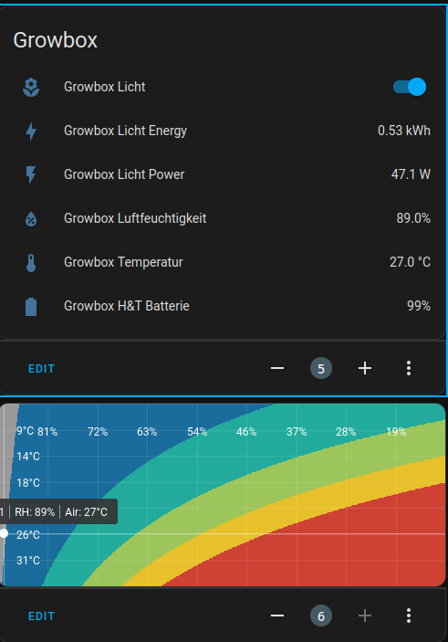 Plus ich kann mir ne Routine einrichten, die stündlich beides prüft und wenn eines davon aus den Parametern raushüpft, kann ich was dagegen tun (oder auch nicht, wenn es draußen 35 Grad hat und ich in der Wohnung mit meinen Pflanzen zusammen eingehe).
