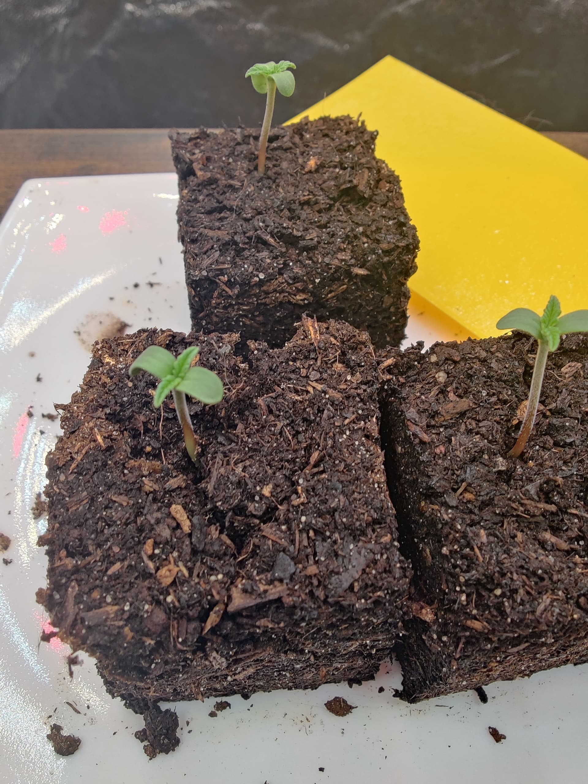 Und am Donnerstag kommt dann die BioBizz All Mix Erde. Dann kommen die kleinen Anzuchtblöcke in die Endtöpfe.