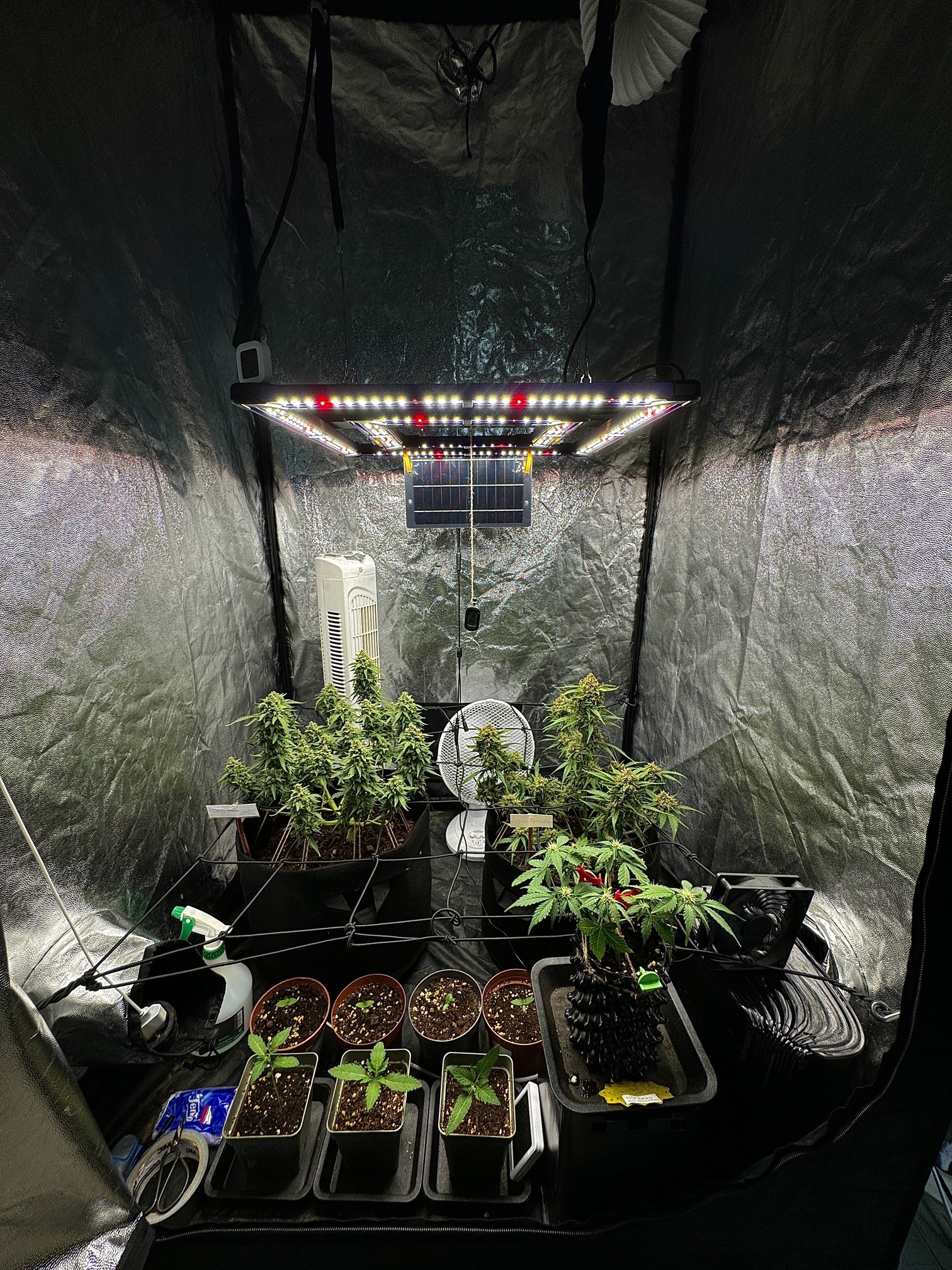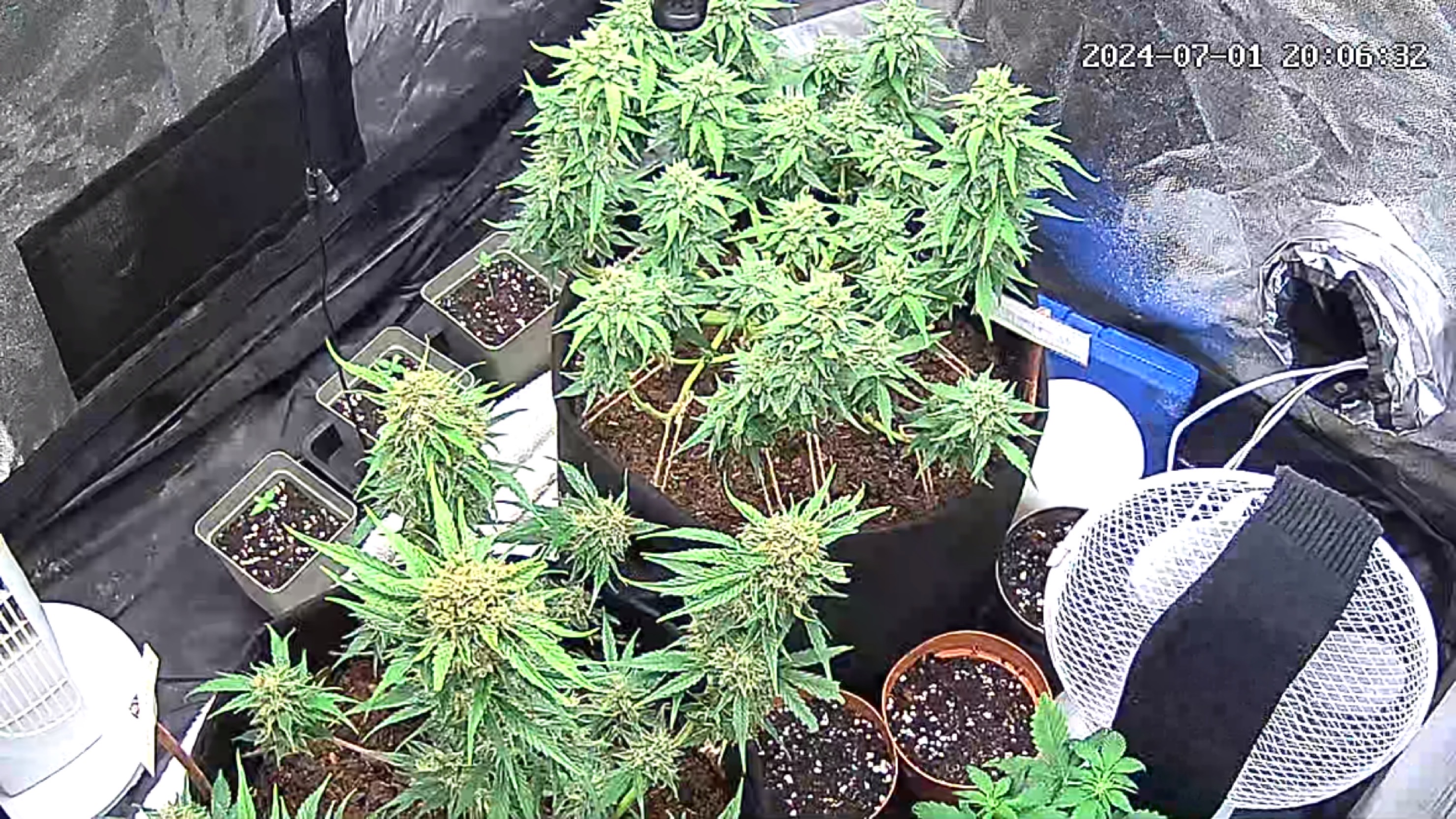 Nach dem umtopfen habe ich jeden Topf vorsichtig mit 1.5L NL nach BioBizz Schema angegossen und zurück in die Box gestellt.